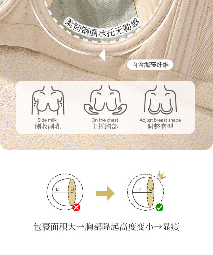 MONZO international high-end brand underwear for women with big breasts and small breasts, full cup, thin, breathable, push-up top, support secondary breasts, protect from bottom, classic black bra 75D