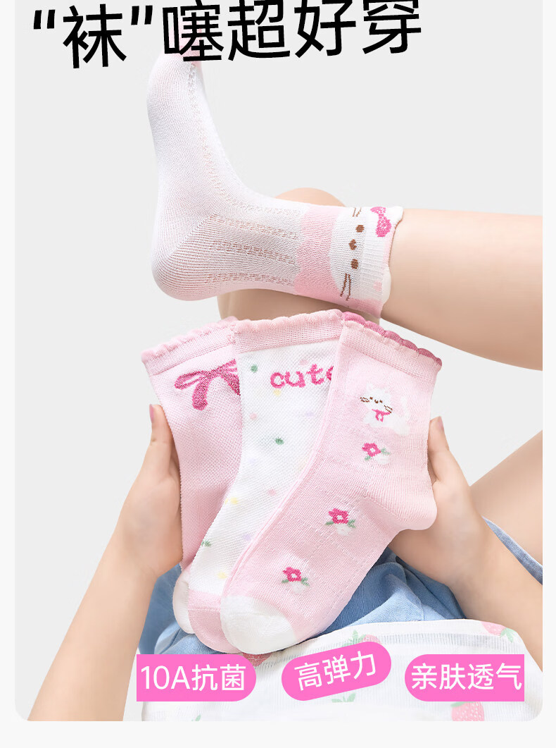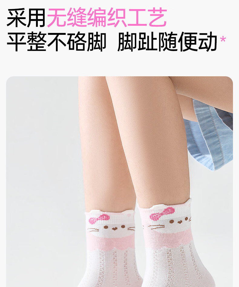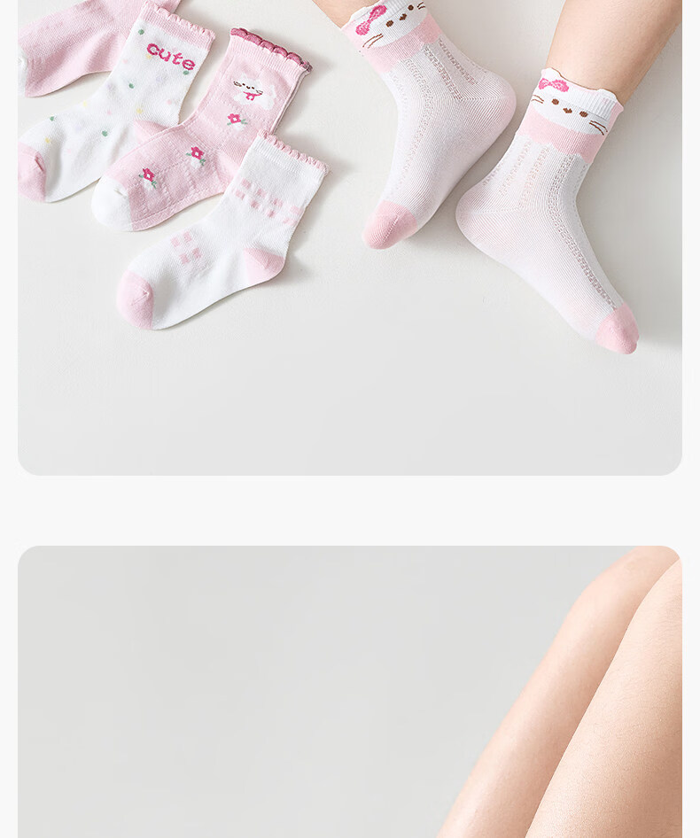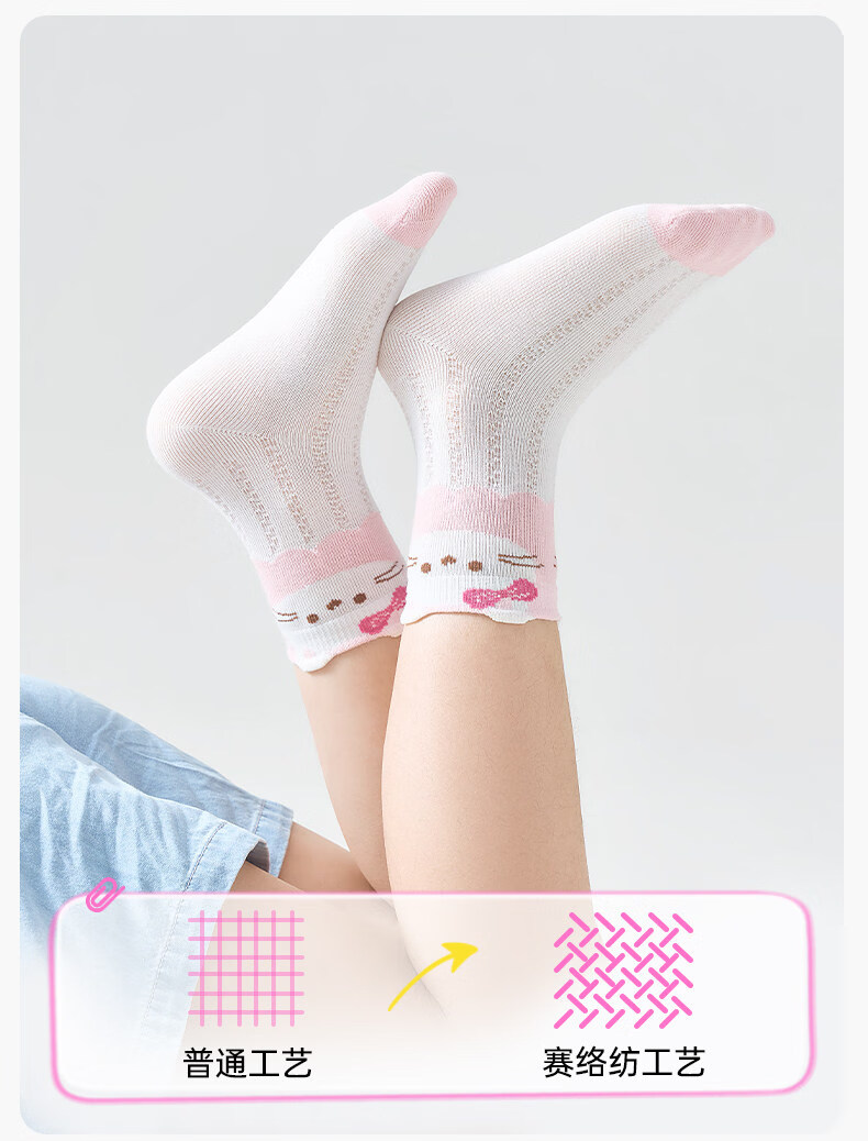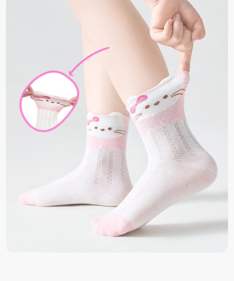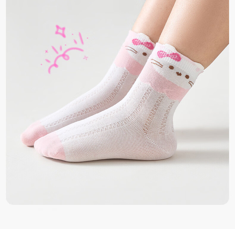Cotton children's socks for girls spring and summer thin antibacterial breathable mesh socks for girls students lace princess socks 5 pairs ZA207-White Butterfly Cat Whisper-5 pairs 100% cotton 10A antibacterial and deodorizing 6-8 years old - foot length 16-18CM shoe size 24-28