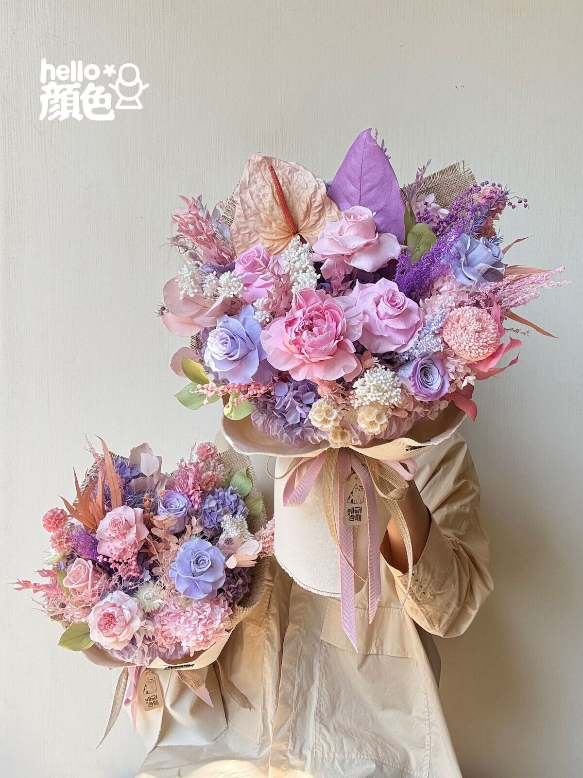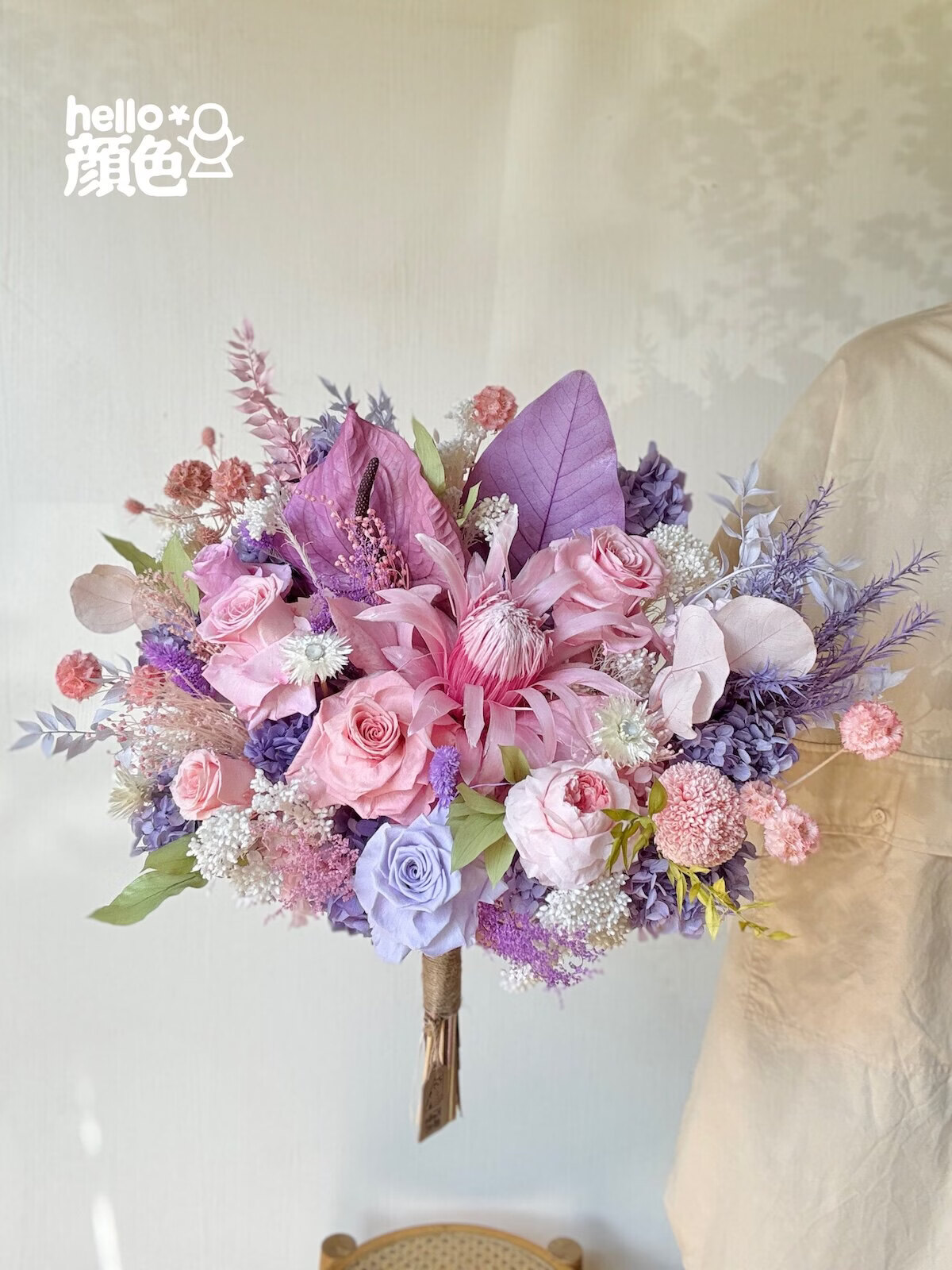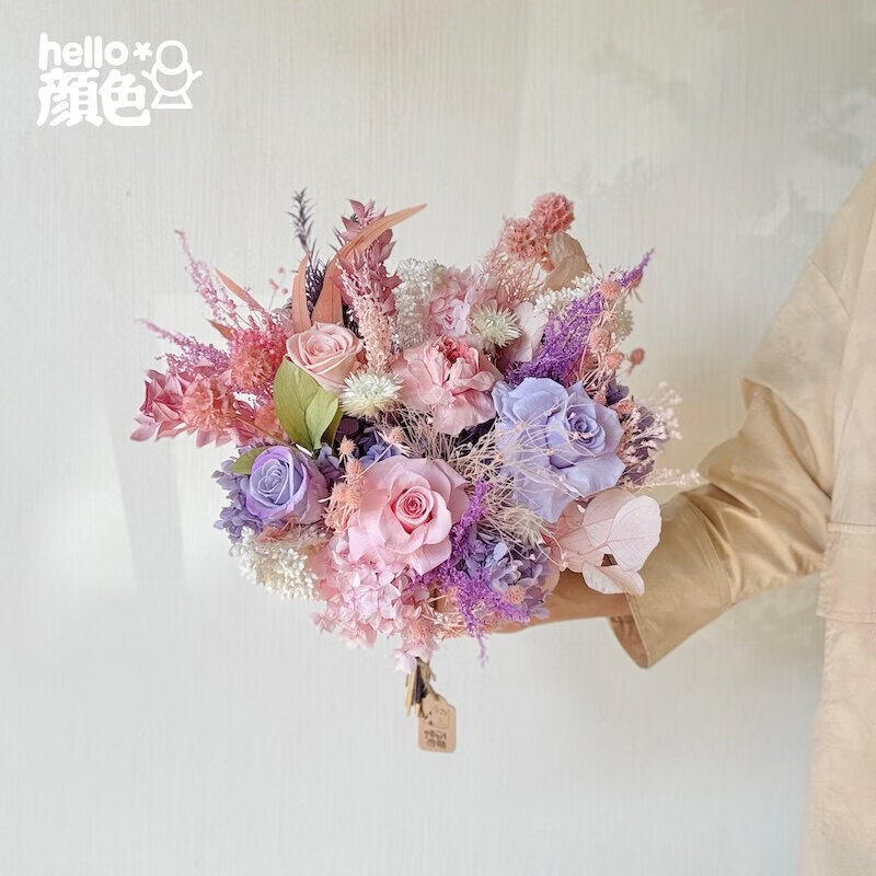 Glycine rose bouquet éternel fleur empereur Austin rose éternelle vraie fleur séchée haut de gamme maison arrangement floral cadeau grand bouquet en forme d'éventail simple côté 40 cm de large toutes les fleurs immortelles