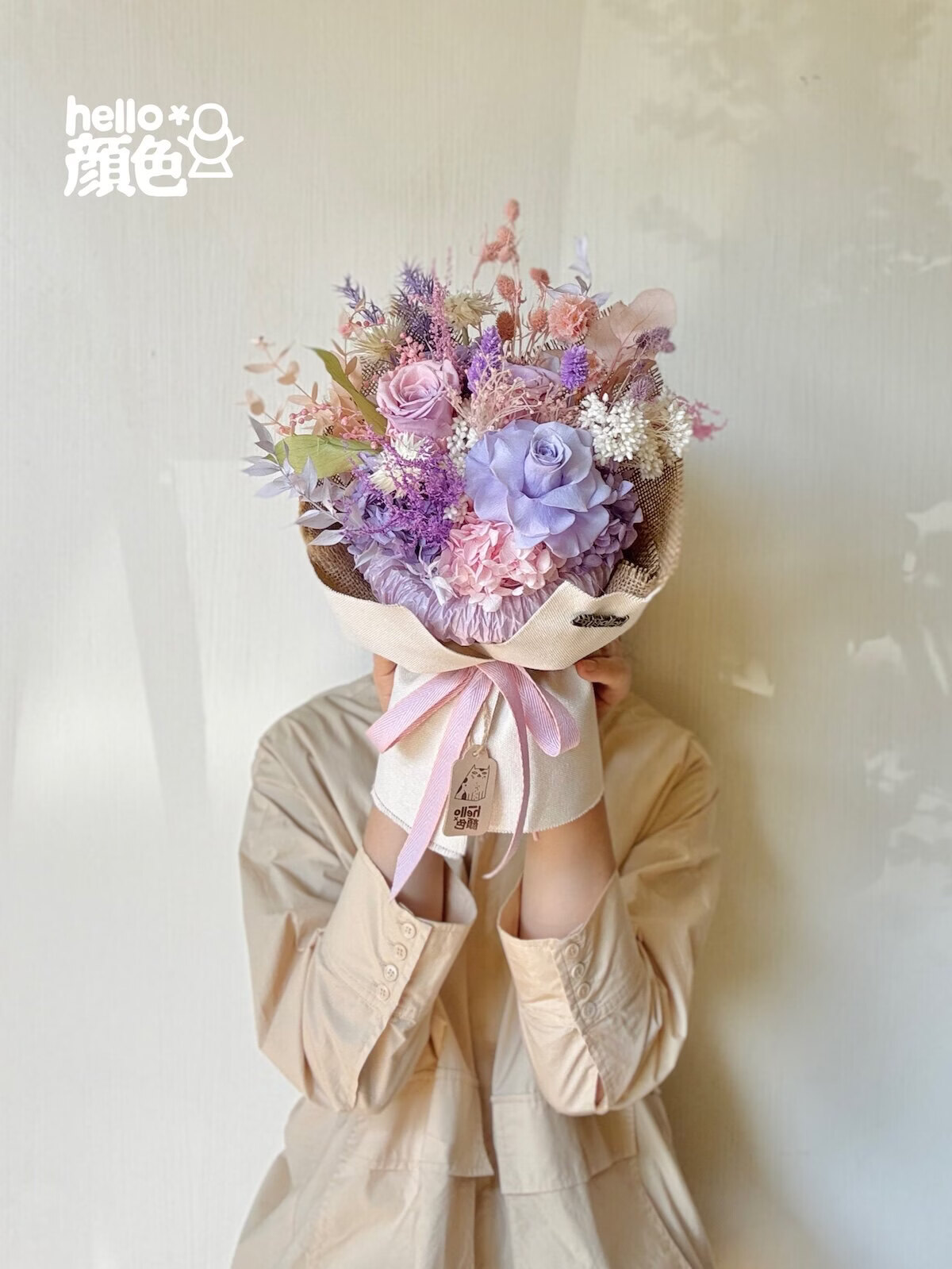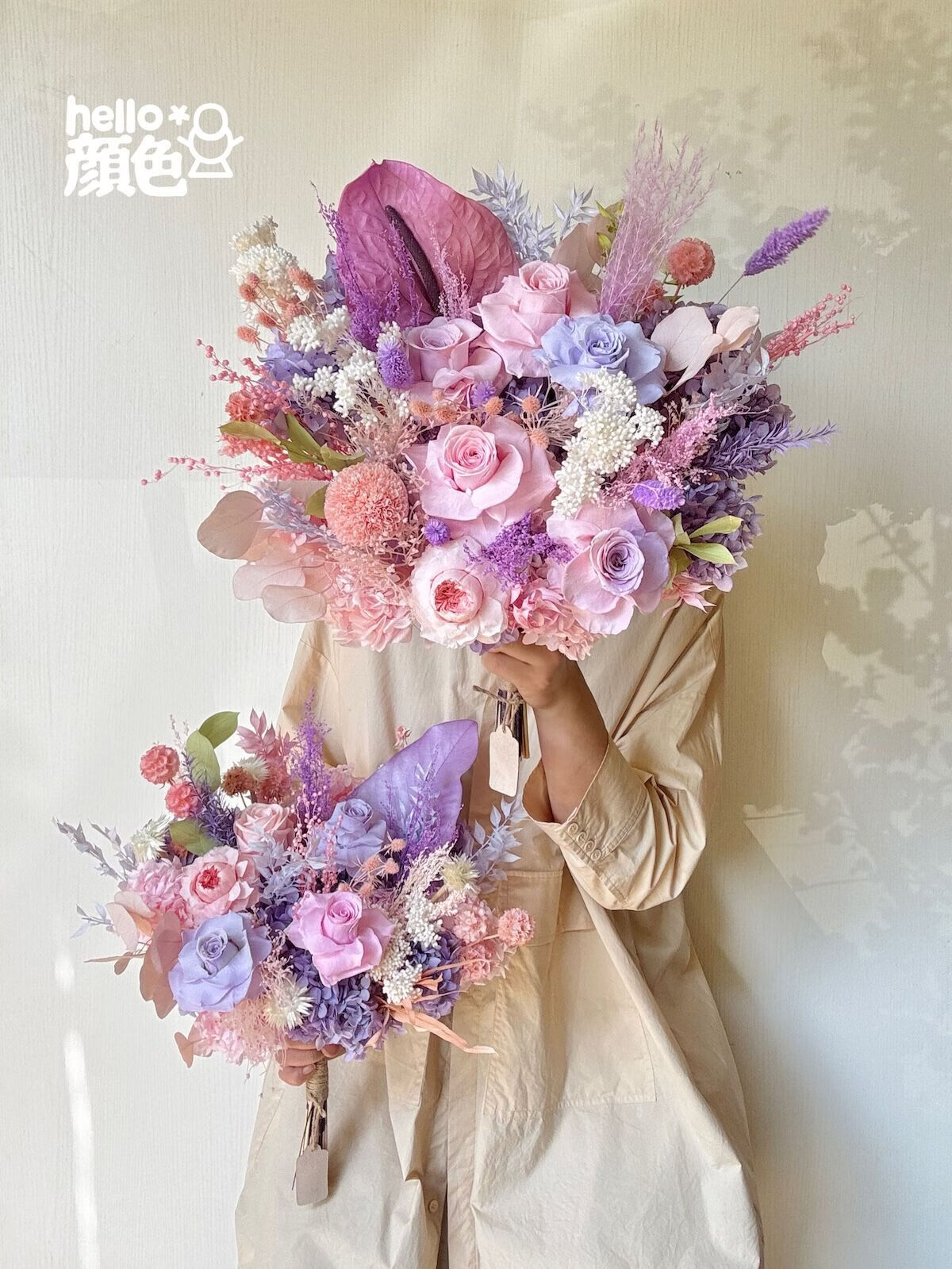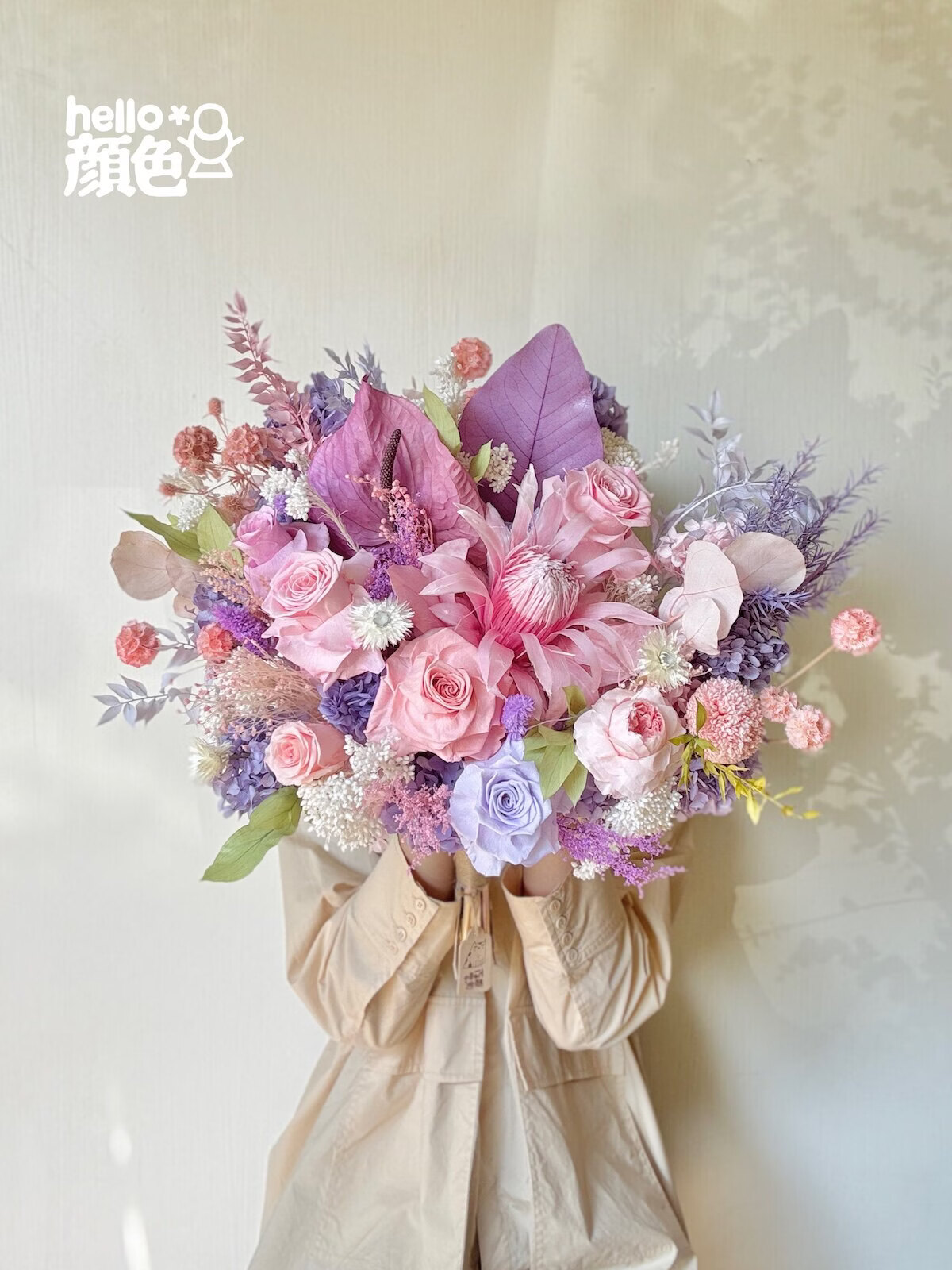 Glycine rose bouquet éternel fleur empereur Austin rose éternelle vraie fleur séchée haut de gamme maison arrangement floral cadeau grand bouquet en forme d'éventail simple côté 40 cm de large toutes les fleurs immortelles