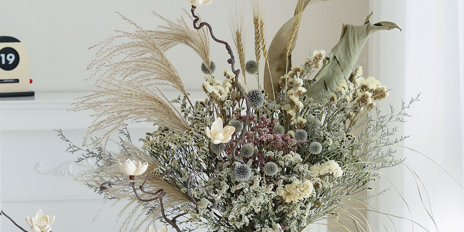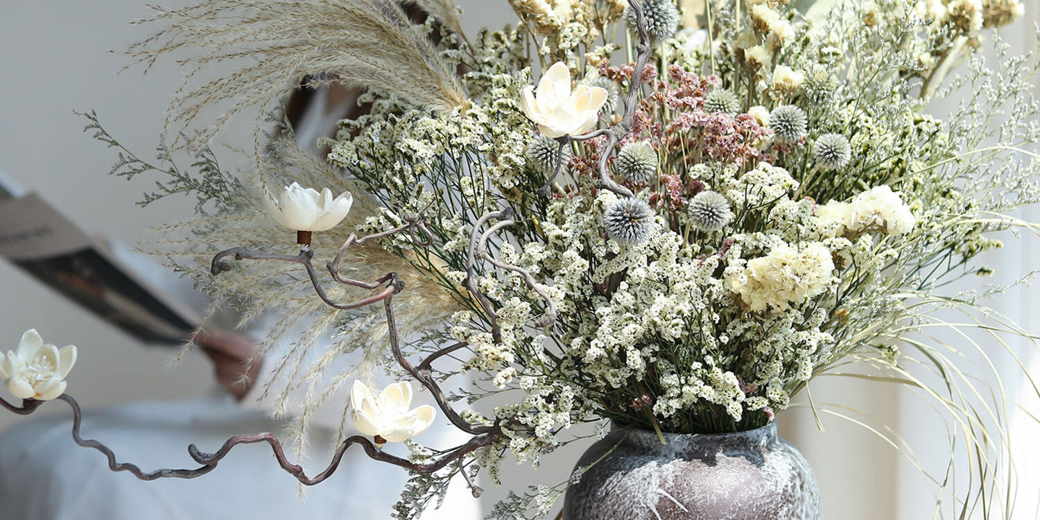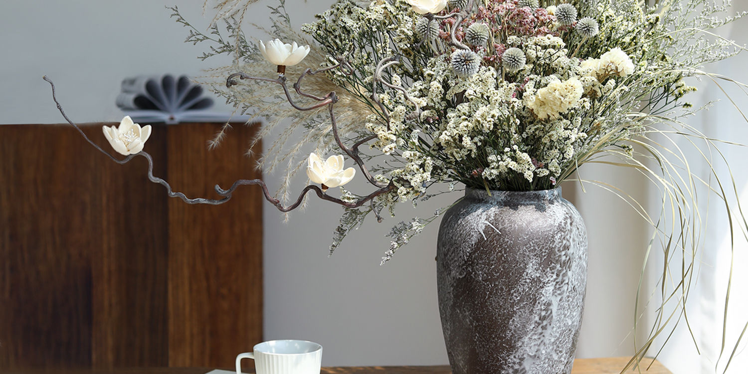 Wabi-sabi style natural dried flower large bouquet flower arrangement ceramic tabletop vase home hotel B&B soft decoration decorations. Consult customer service to receive a half-price discount. Do not shoot this option.