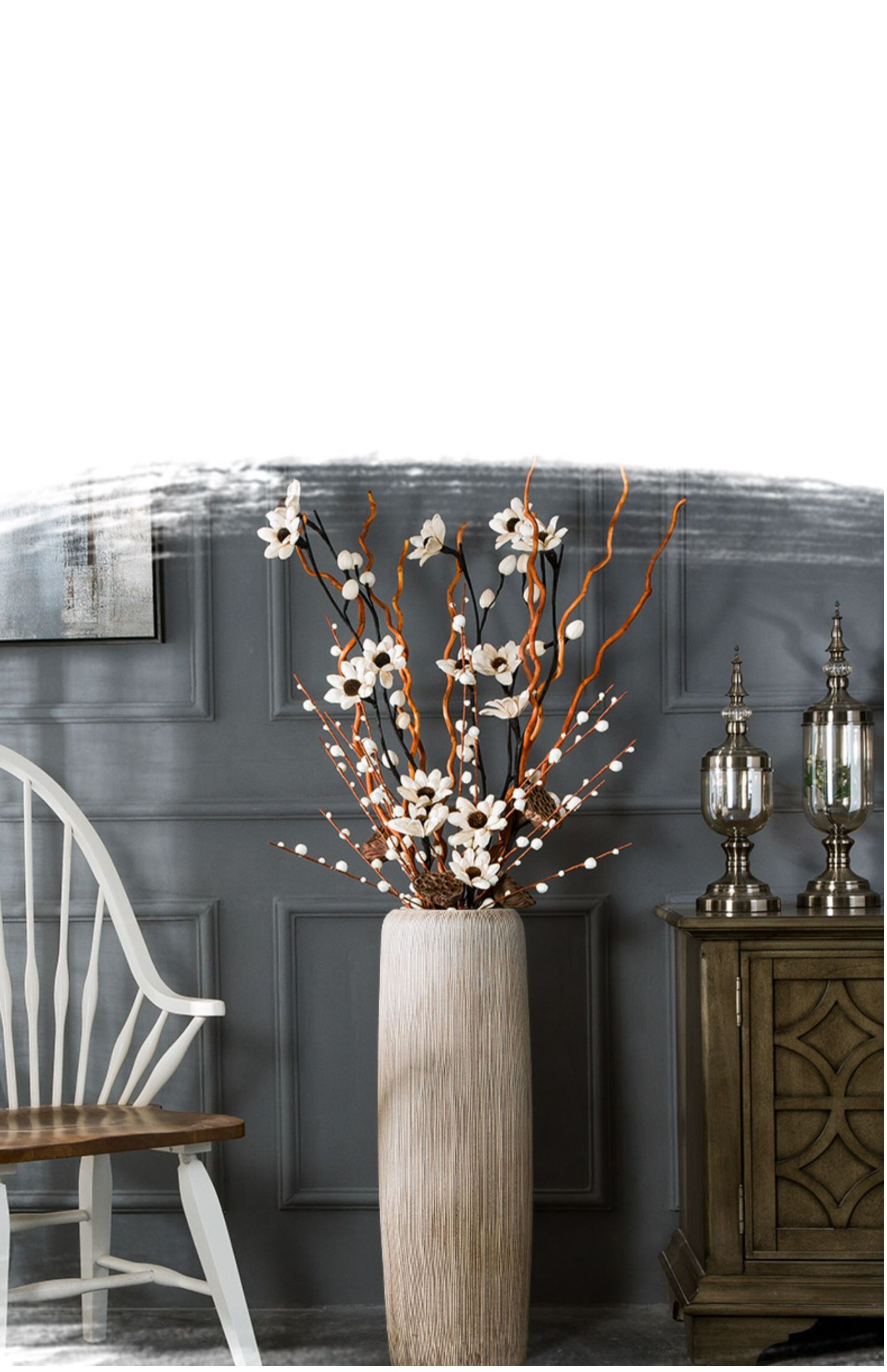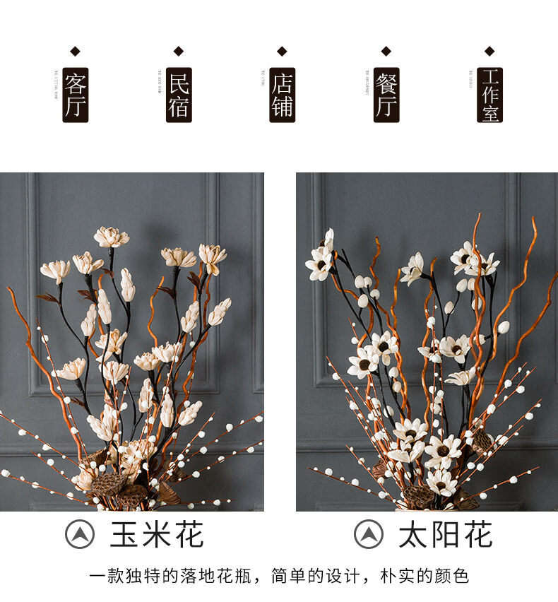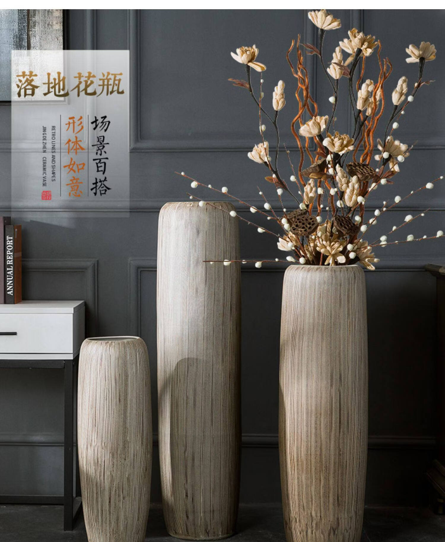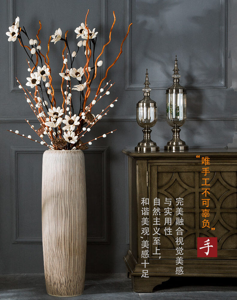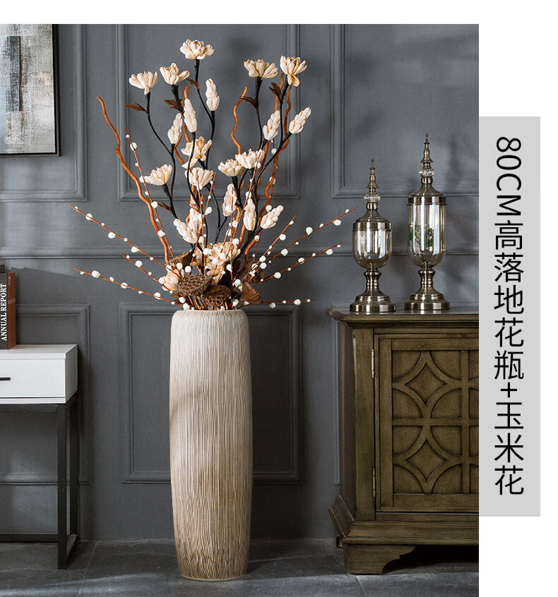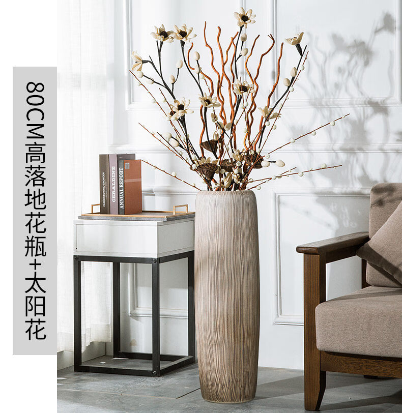 Modern simple light color soft decoration Jingdezhen ceramic floor-standing vase living room flower arrangement dried flower large decorative ornaments bark pattern 60cm + sunflower set