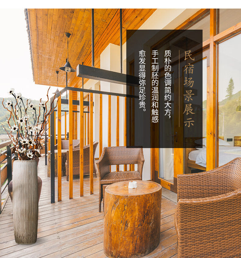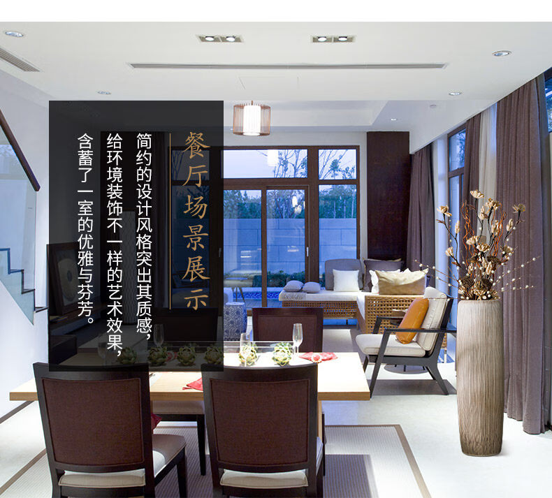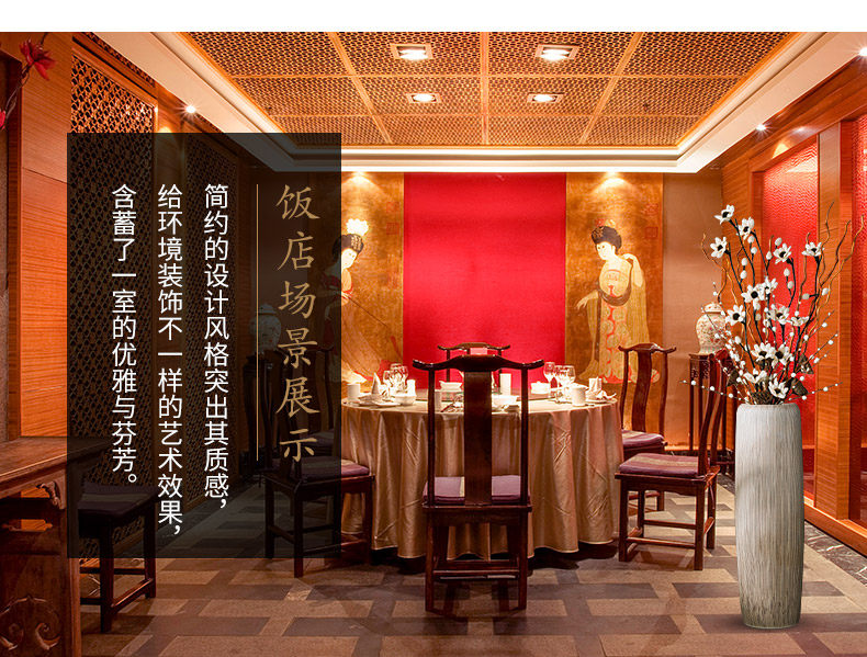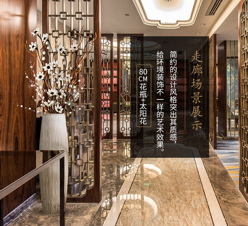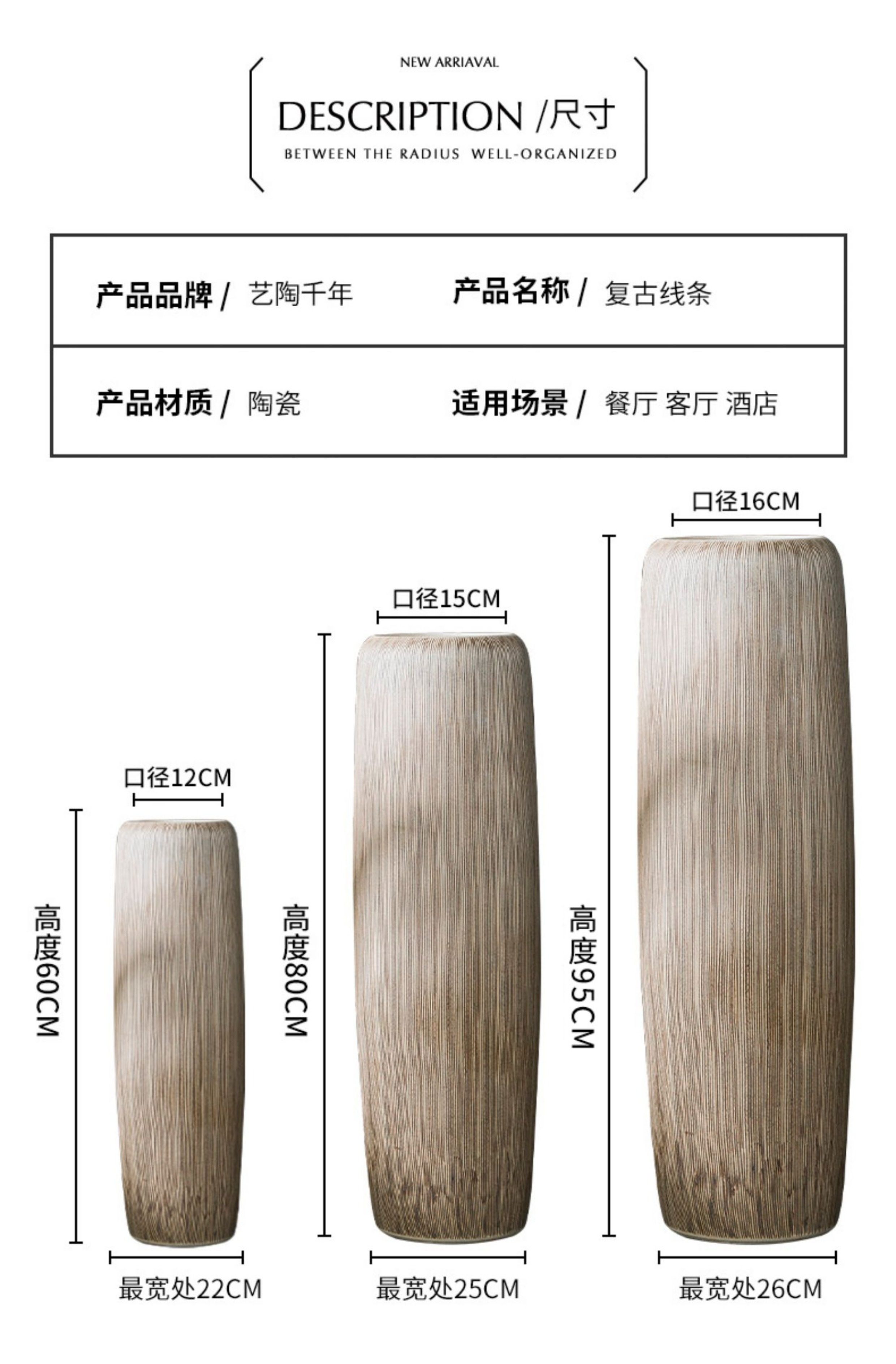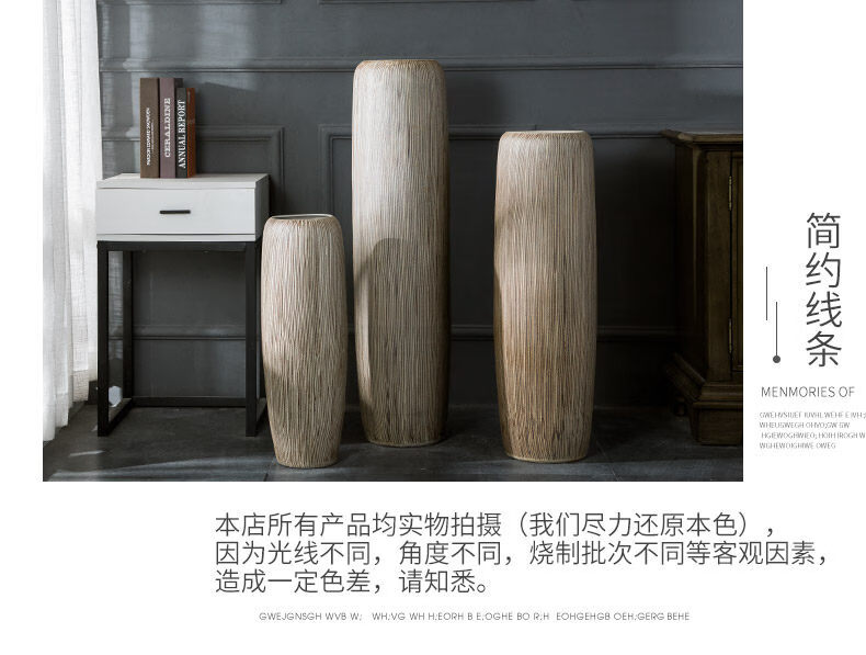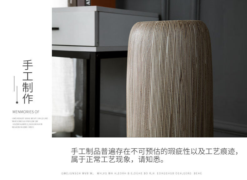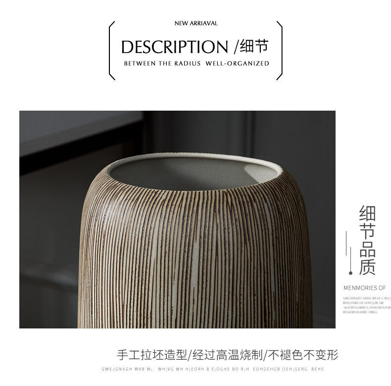 Modern simple light color soft decoration Jingdezhen ceramic floor-standing vase living room flower arrangement dried flower large decorative ornaments bark pattern 60cm + sunflower set