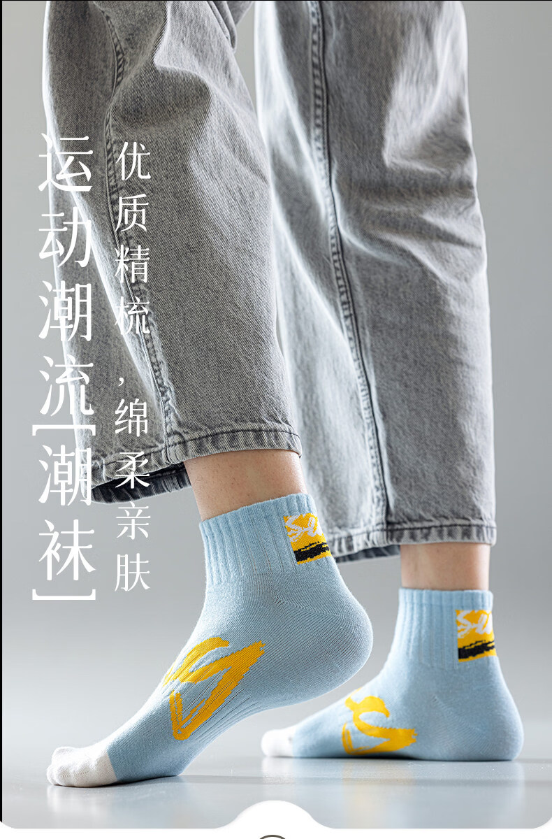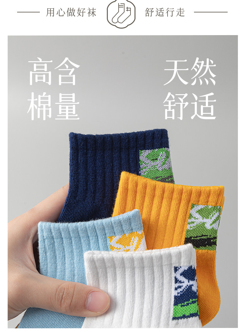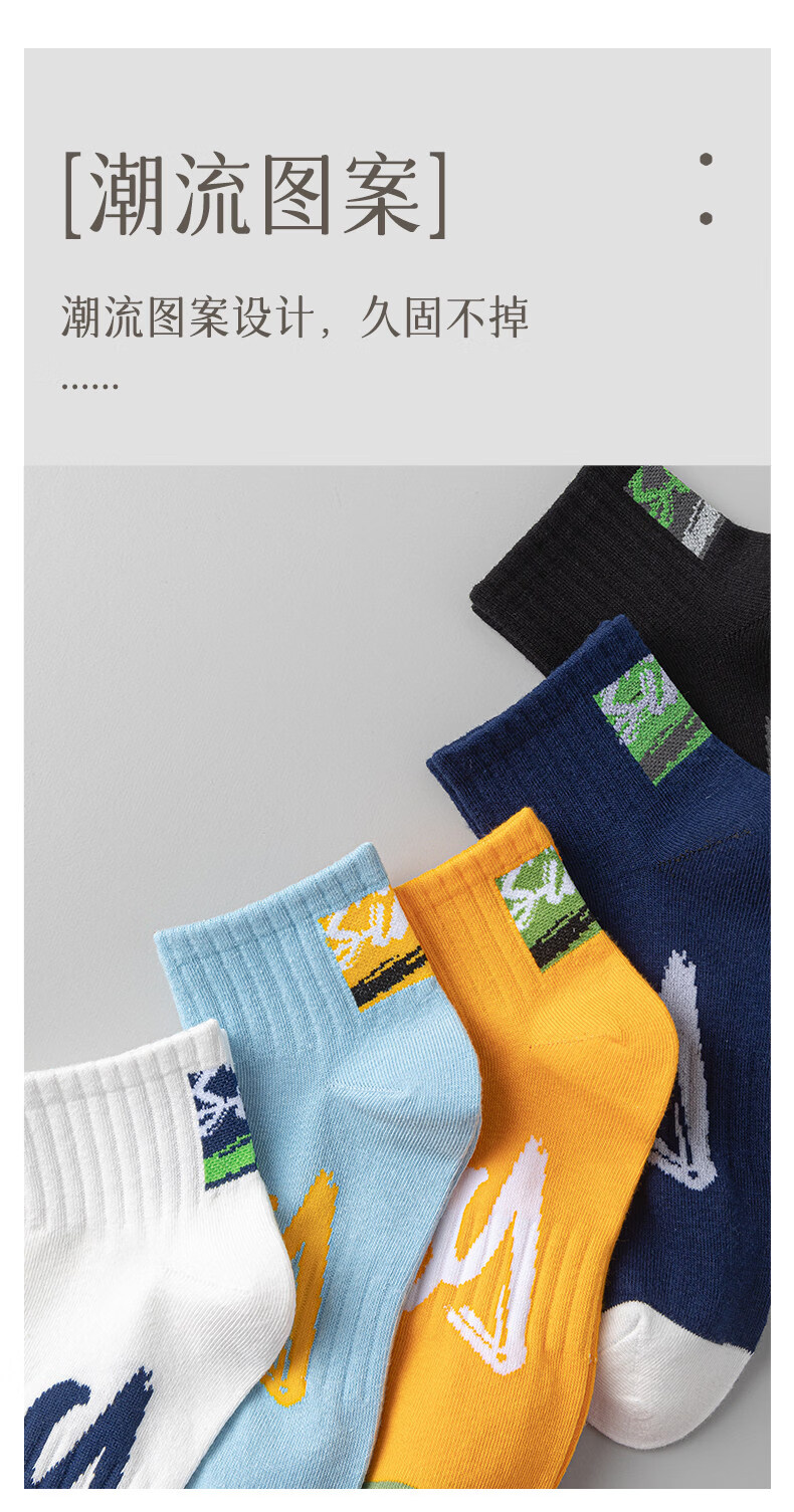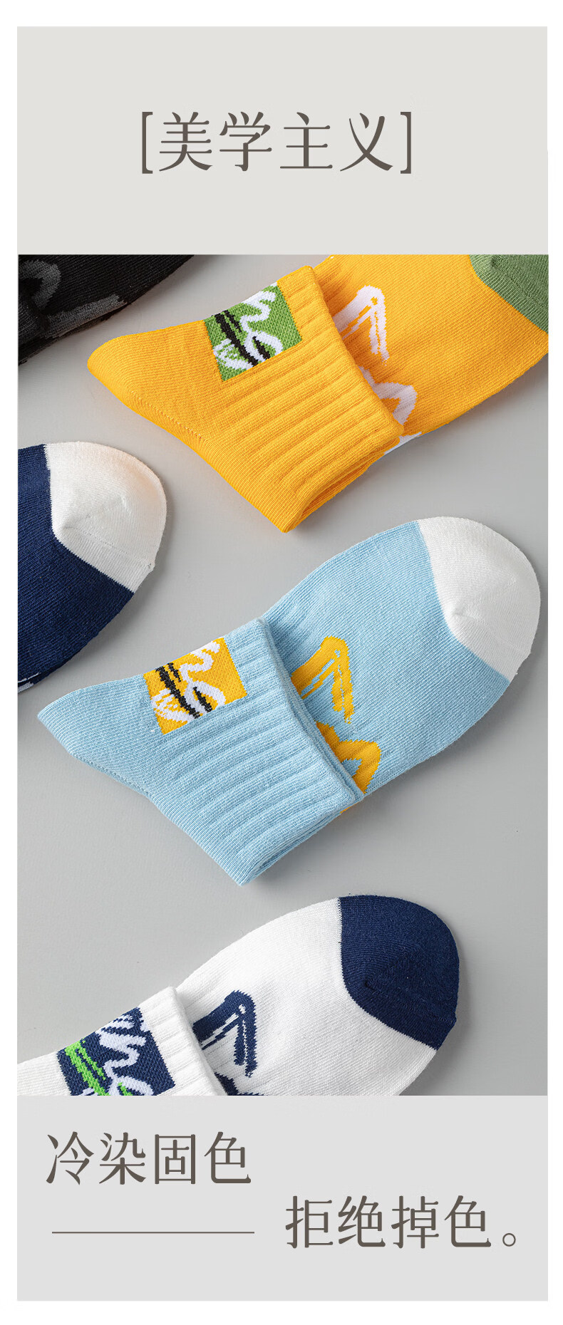 MiiOW socks for boys, junior high school students, Xinjiang cotton deodorant sports socks, basketball summer big children's mid-calf socks trend SW0489 (Anxiety) One size fits all (39-42.5) 5 pairs (designed for teenagers)
