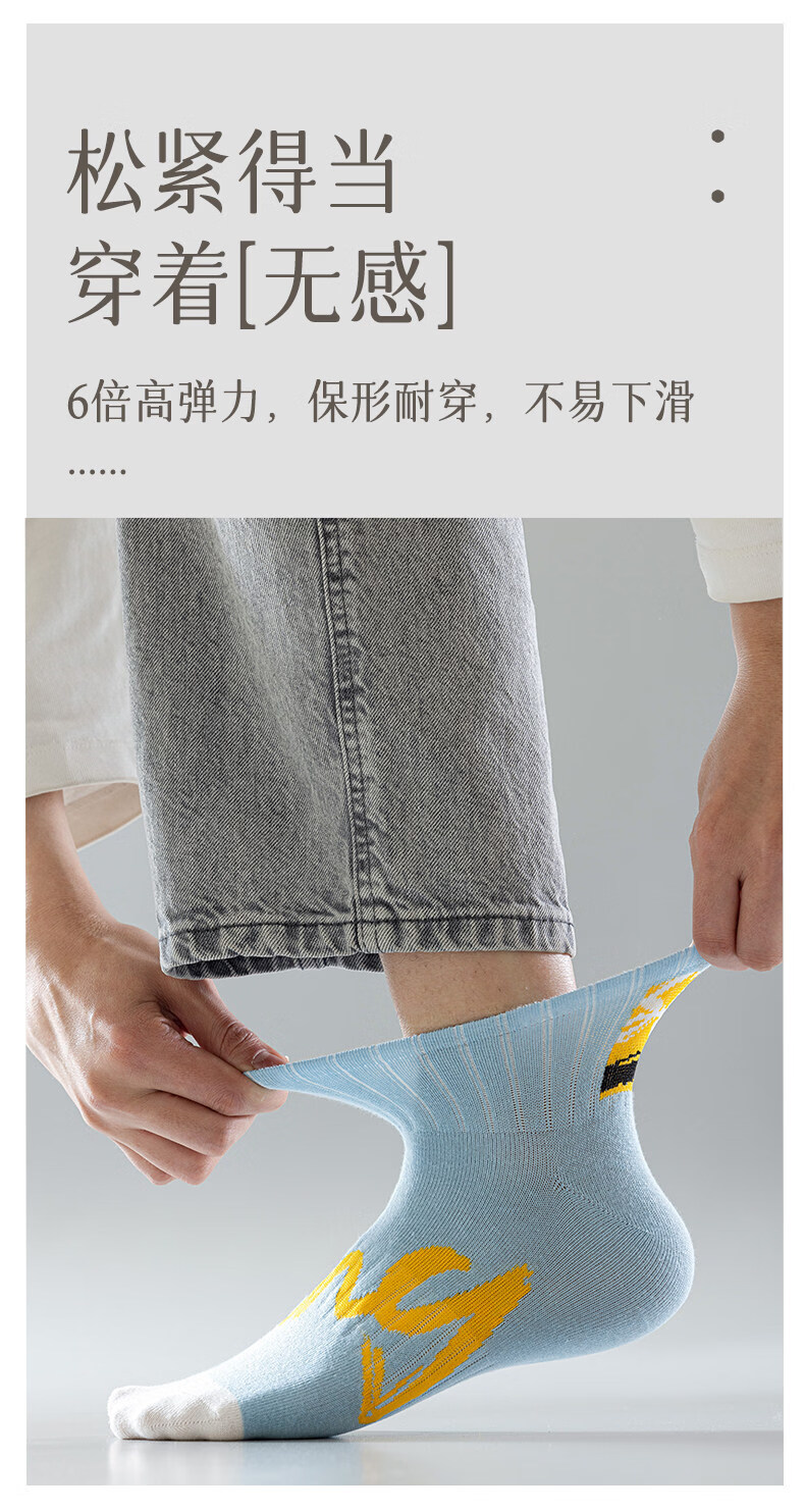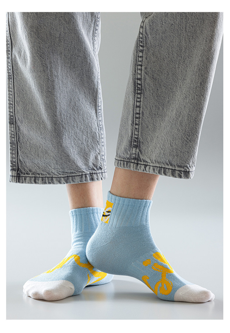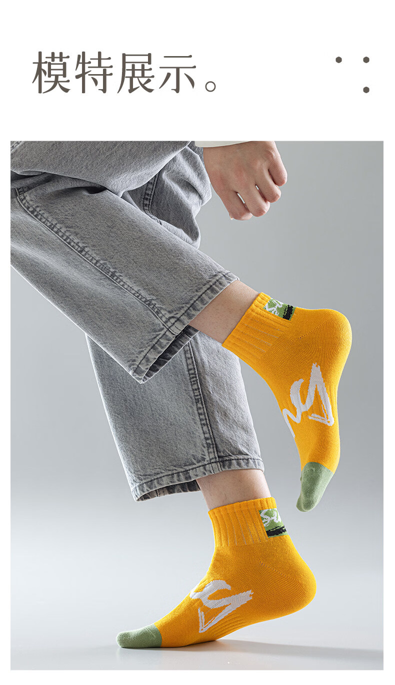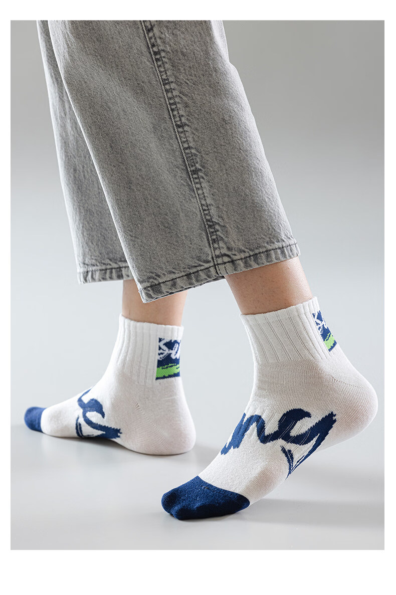 MiiOW socks for boys, junior high school students, Xinjiang cotton deodorant sports socks, basketball summer big children's mid-calf socks trend SW0489 (Anxiety) One size fits all (39-42.5) 5 pairs (designed for teenagers)