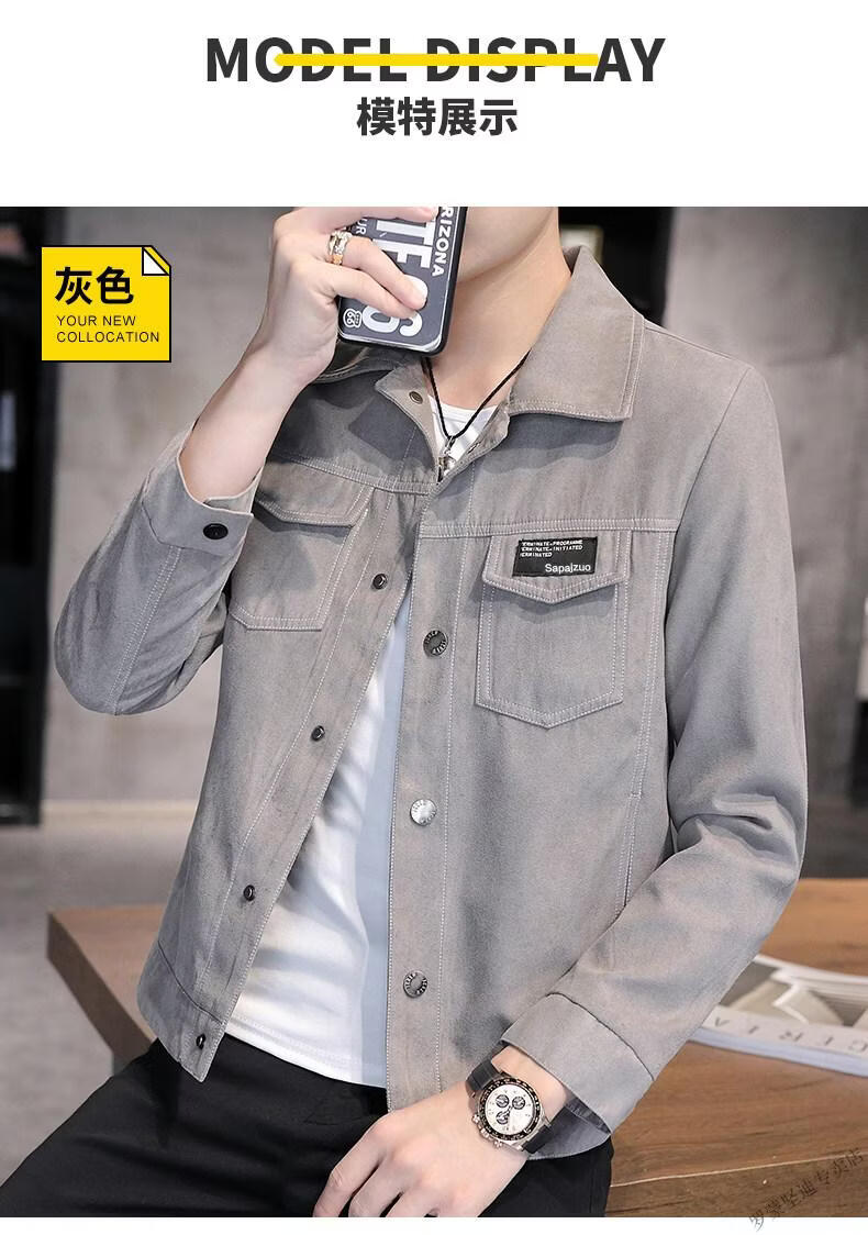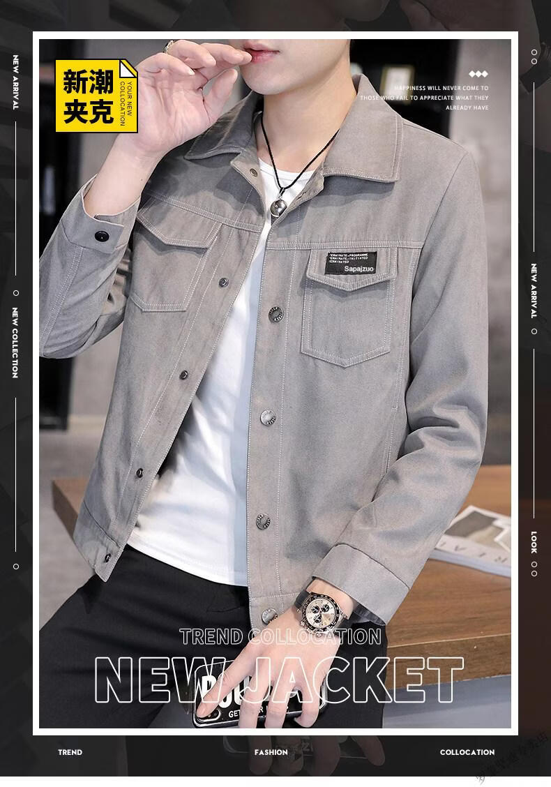 ROMON Men's Jackets Autumn Clothes Workwear Casual Men's Loose Tops Trendy Brand 2026 New Spring and Autumn Men's Clothing HC2806 Black M 90-115Jin Jin equals 0.5 kg