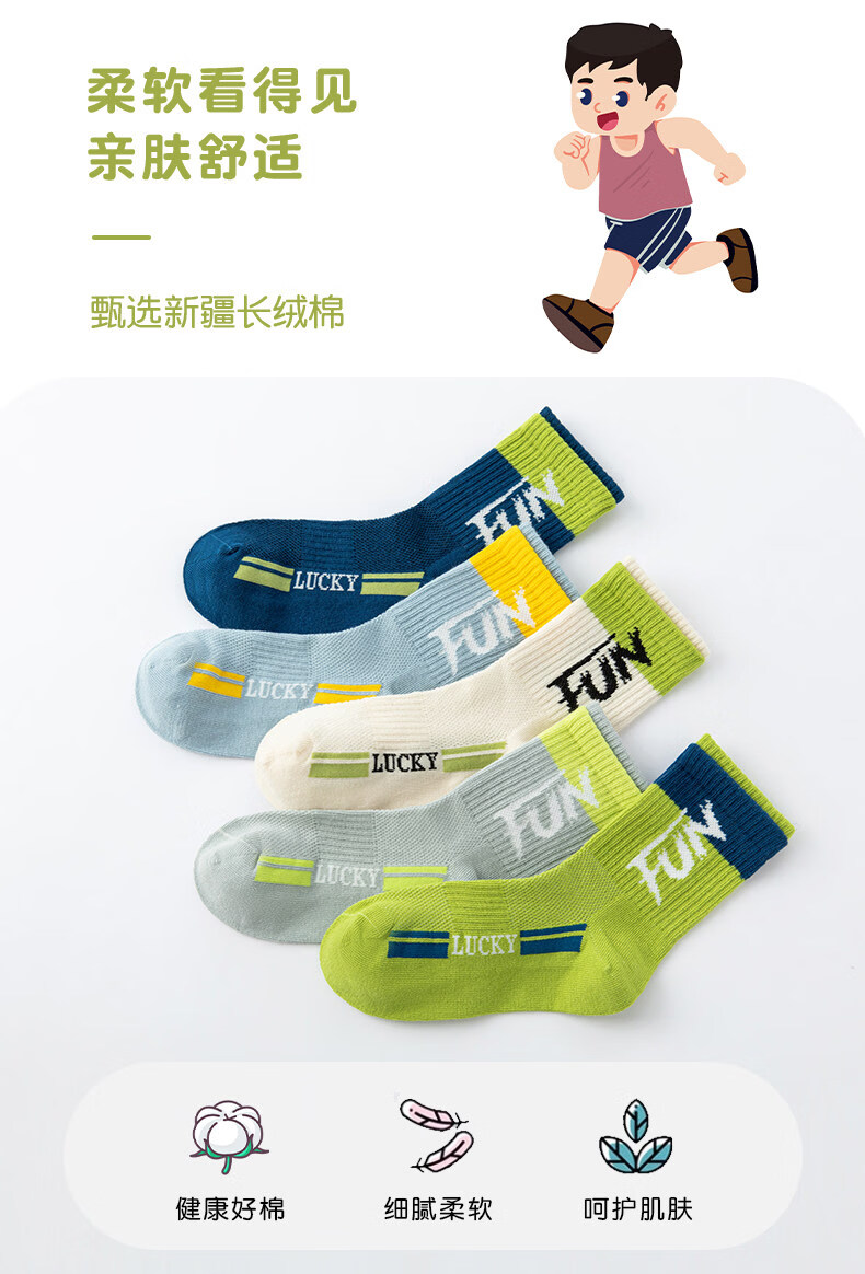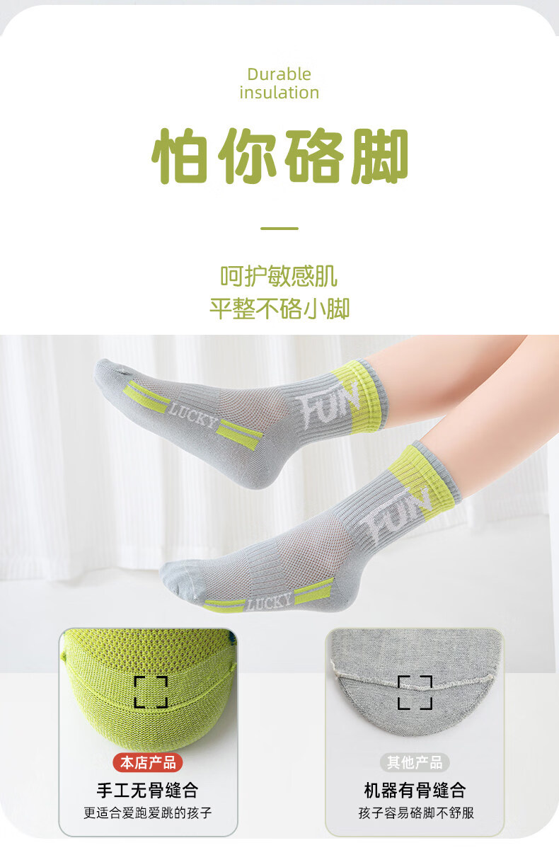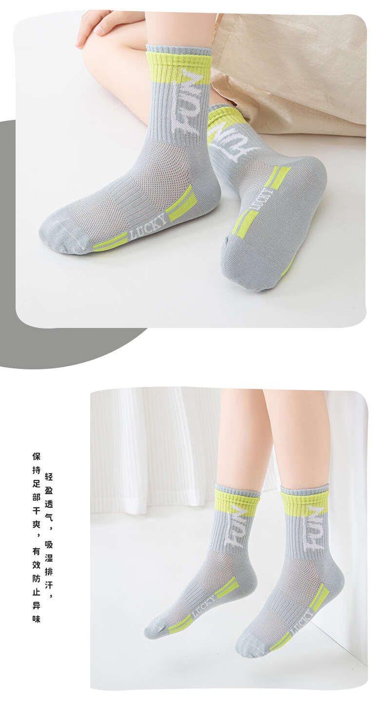 MiiOW boys' socks spring and autumn thin pure cotton mesh children's mid-calf socks for boys, elementary school students, teenagers and older children's socks spring and summer thin mid-calf Y08-sports triangle 5 pairs for 12 years and above (suitable for shoe sizes 37-42)