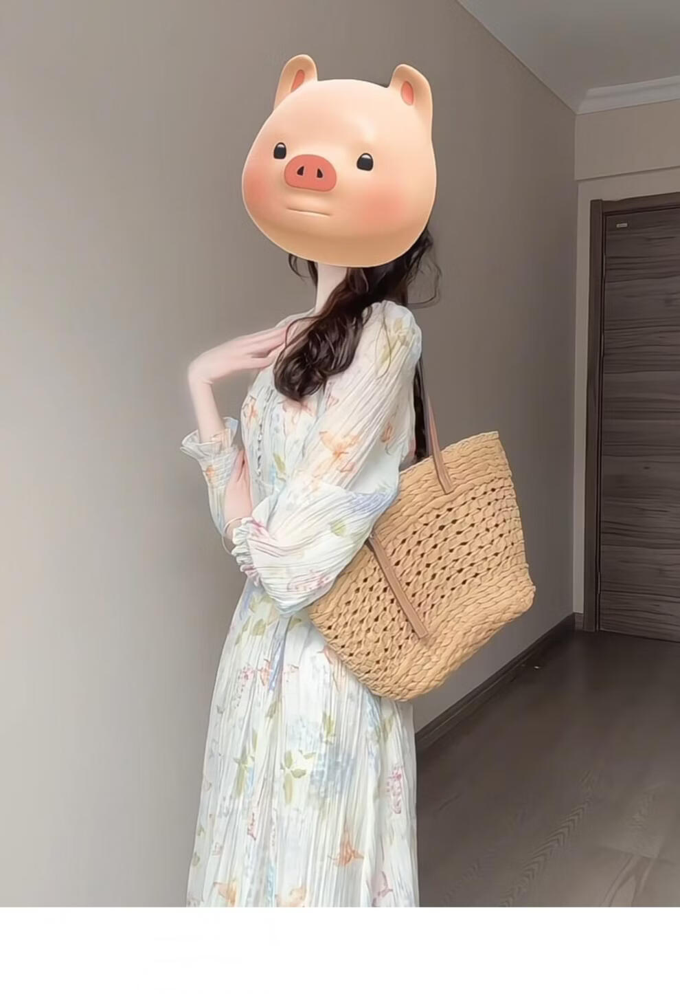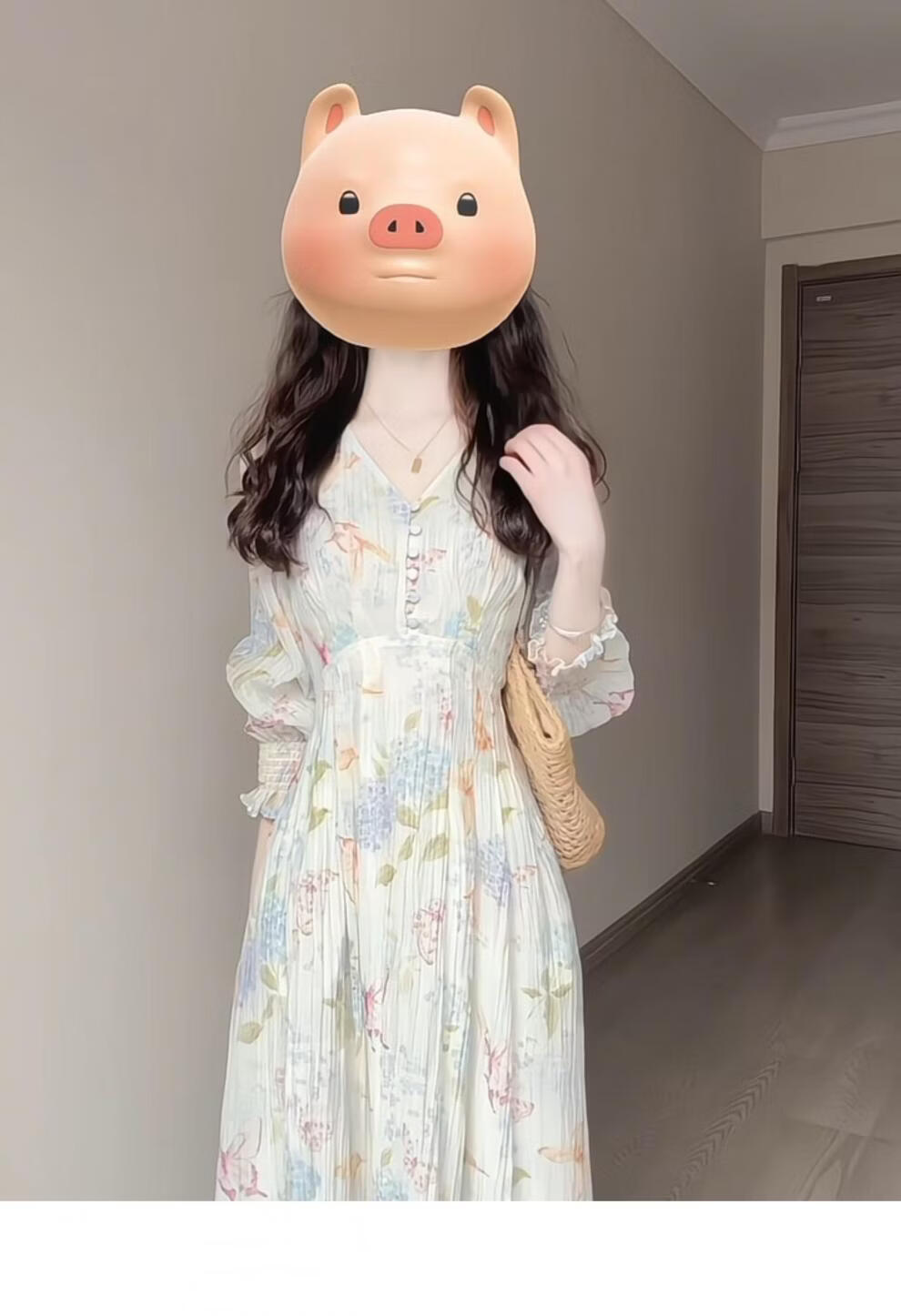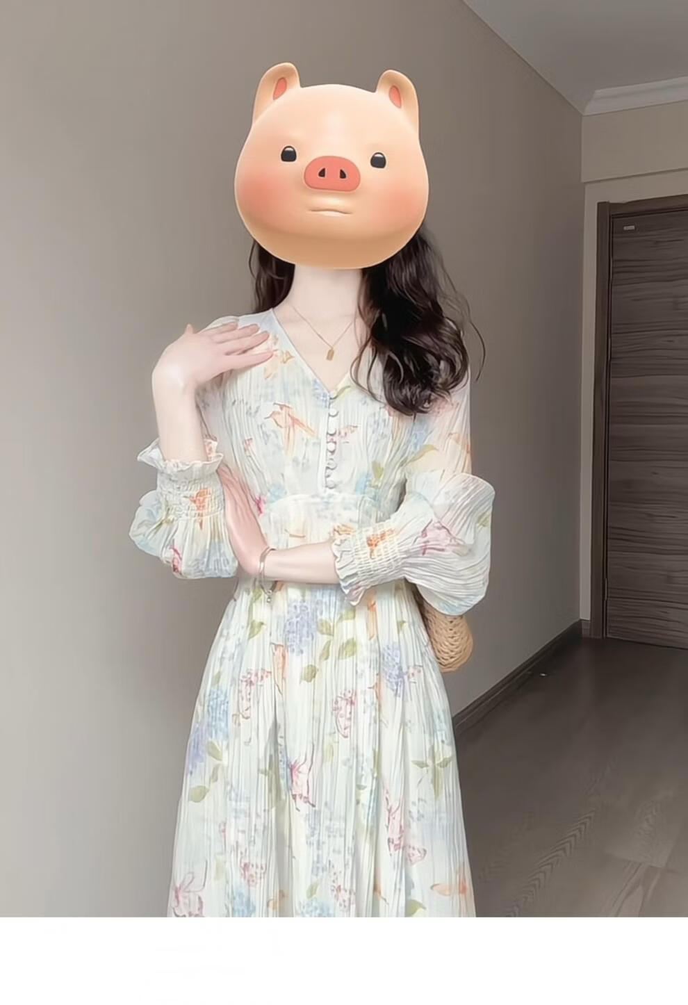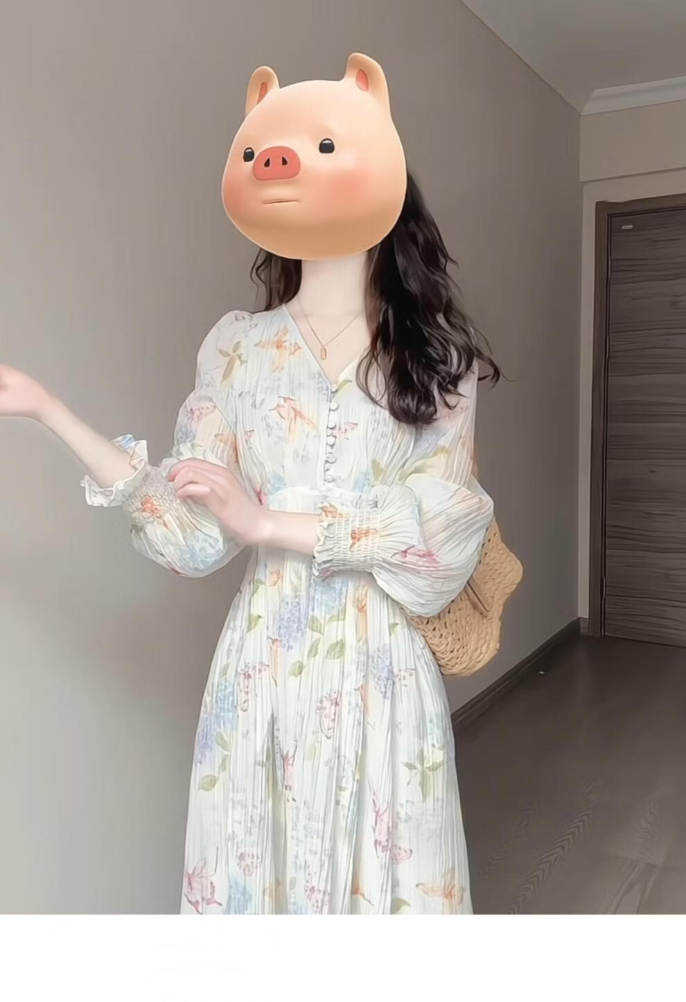 Rich collar opening ceremony mom dress spring French tea break V-neck floral women's new 2026 long sleeve petite waist mint print heavy floral dress XL recommended 120 to 125 Jin Jin equals 0.5 kg