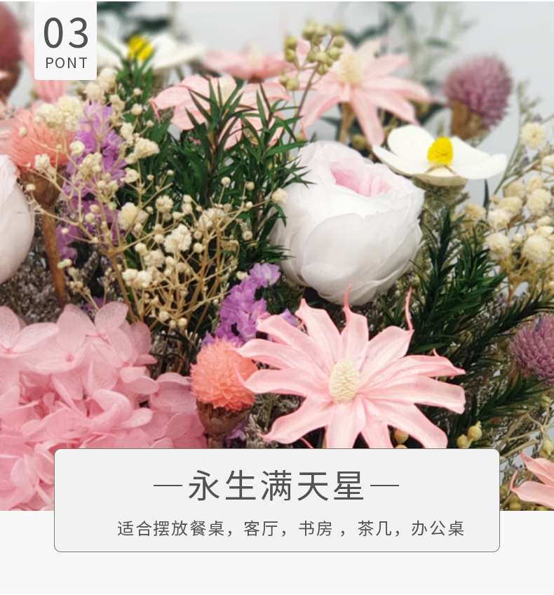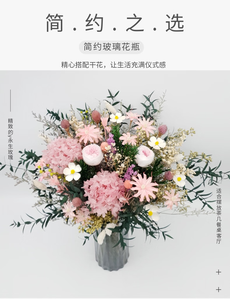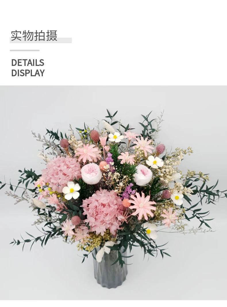 永生花干花大花束真花满天星绣球粉色玫瑰客厅餐桌装饰摆件样板间 奥斯汀-不含瓶 干花包