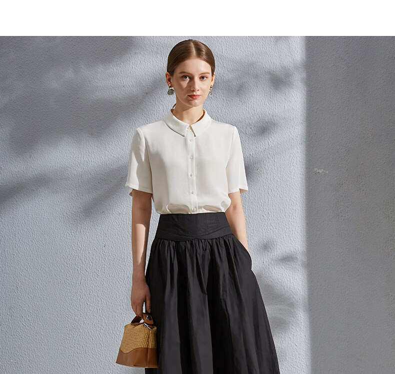 COVA international first-line brand 2026 summer new style 6 level 00 mulberry silk top 30mm heavy silk shirt haze blue S