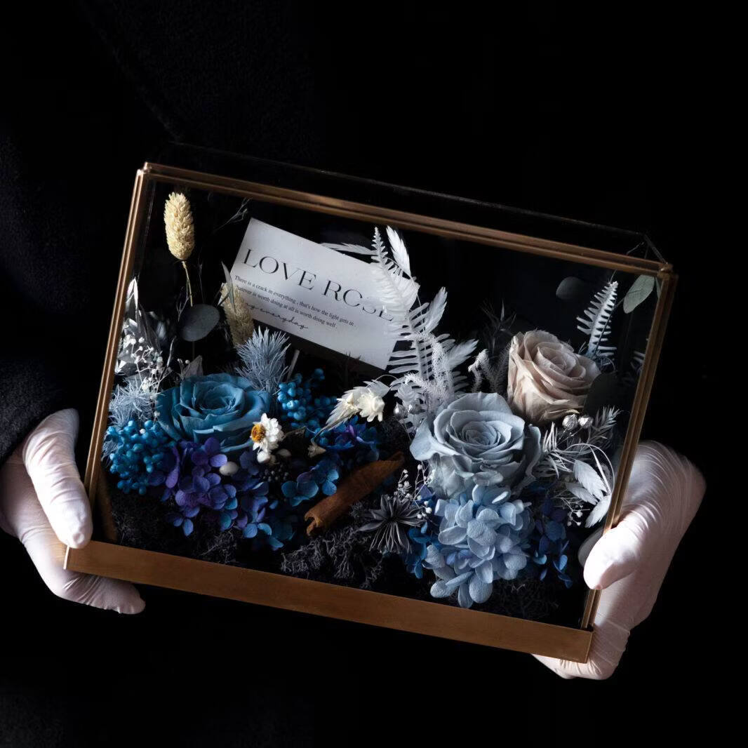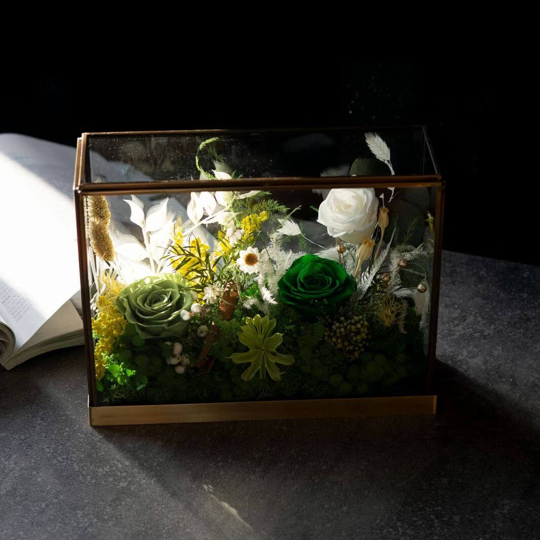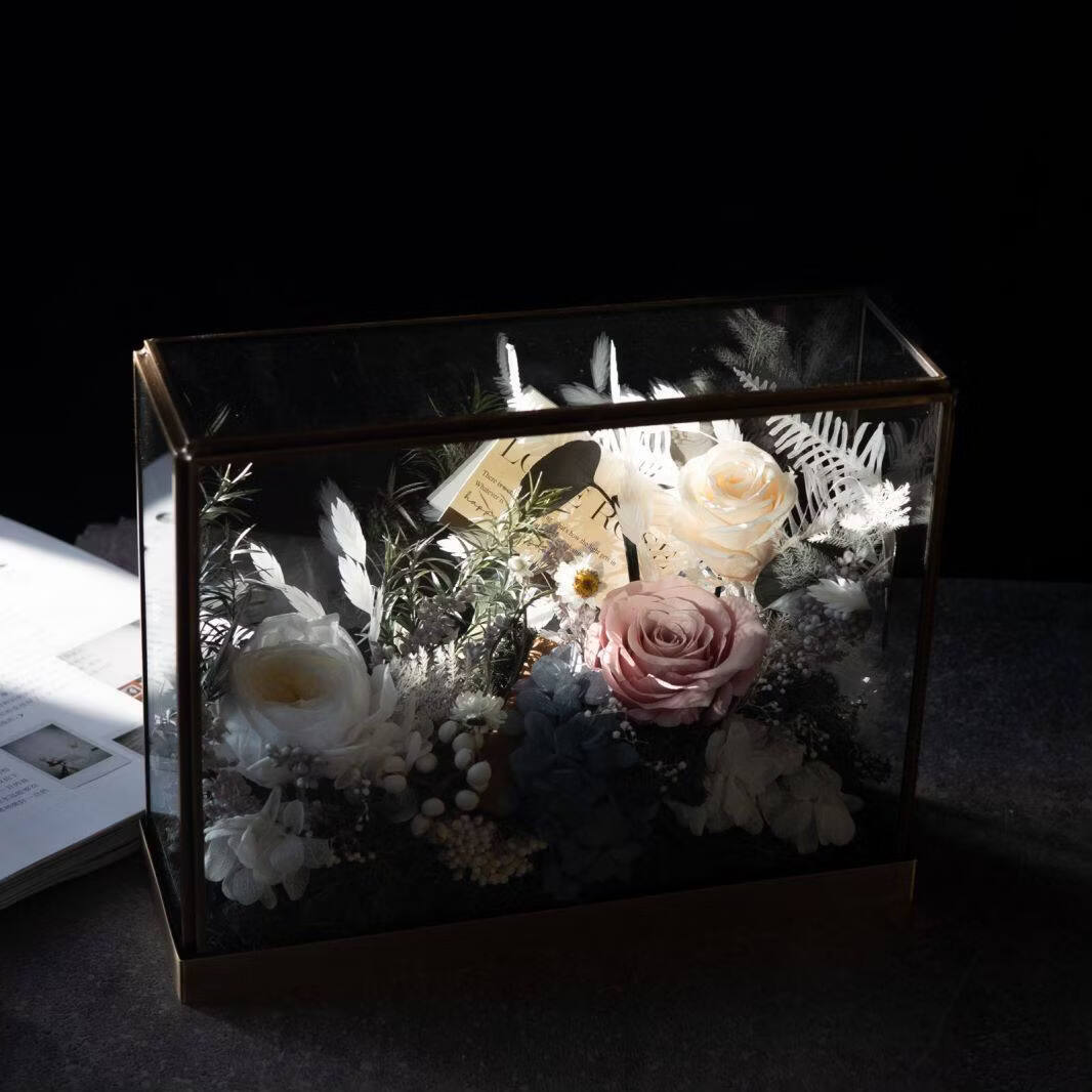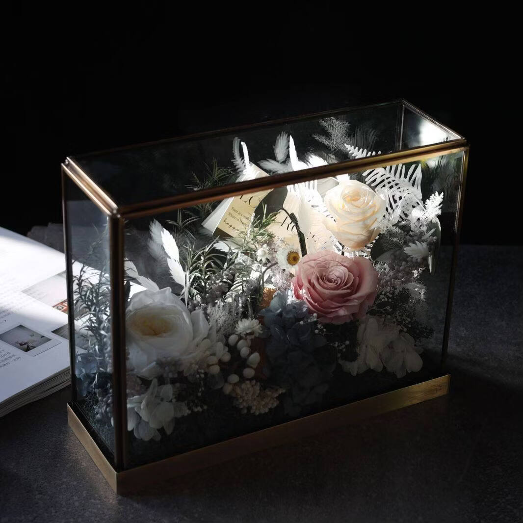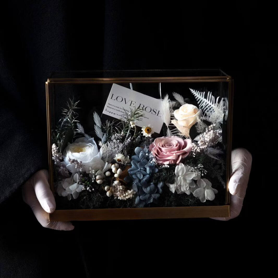 Preserved flower rose high-end micro landscape dried bouquet glass cover gift box birthday and Valentine's Day gift for teacher, best friend and girlfriend cappuccino (black card)