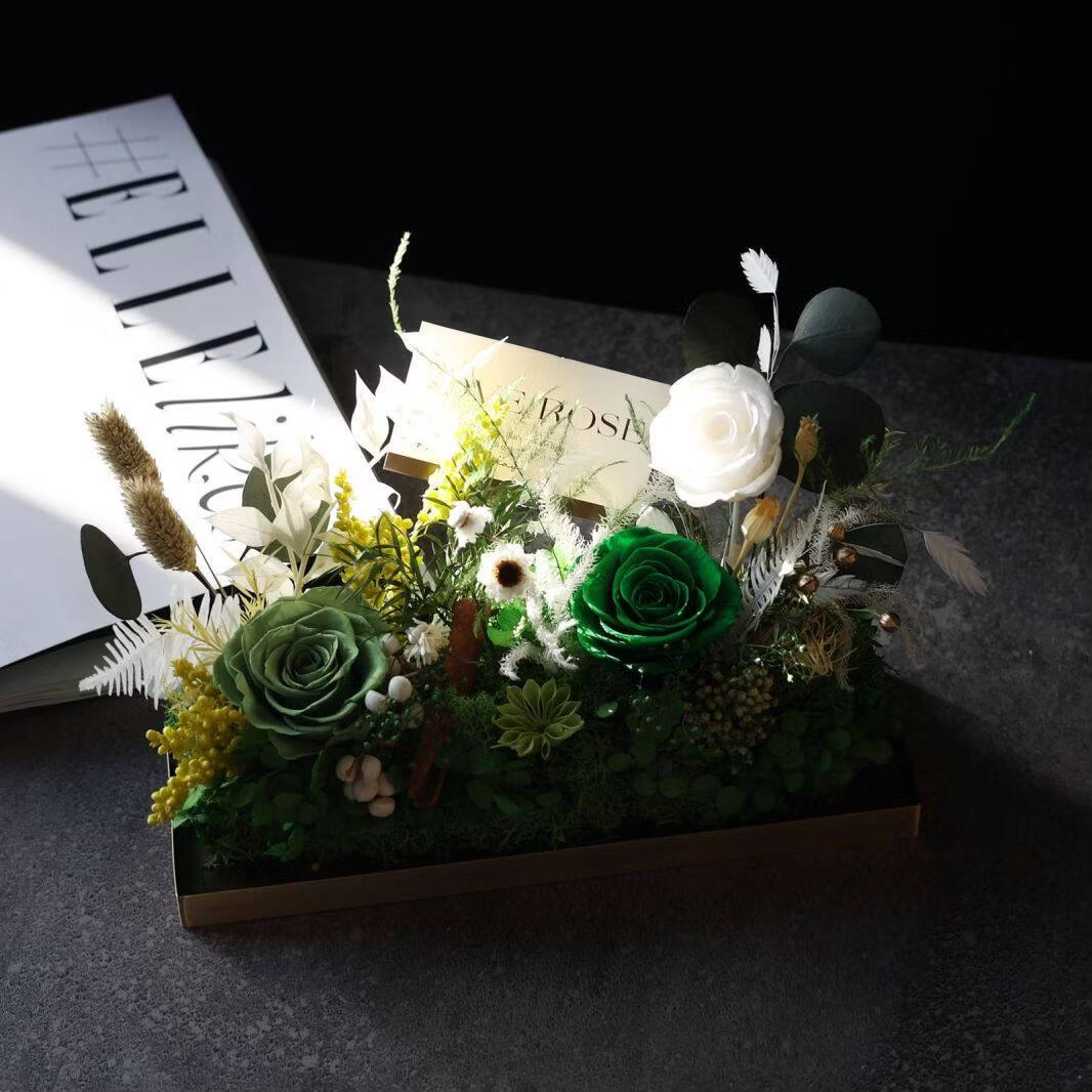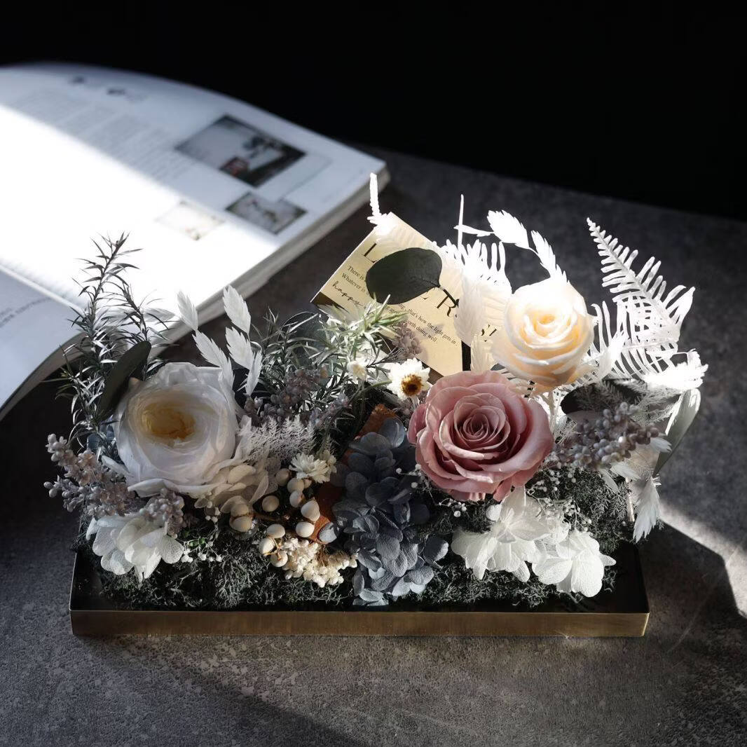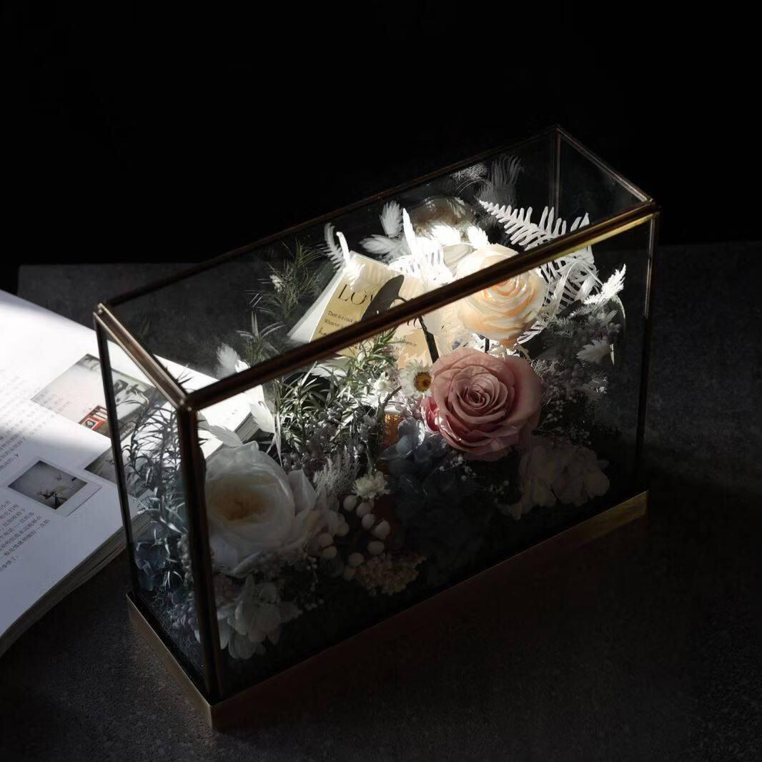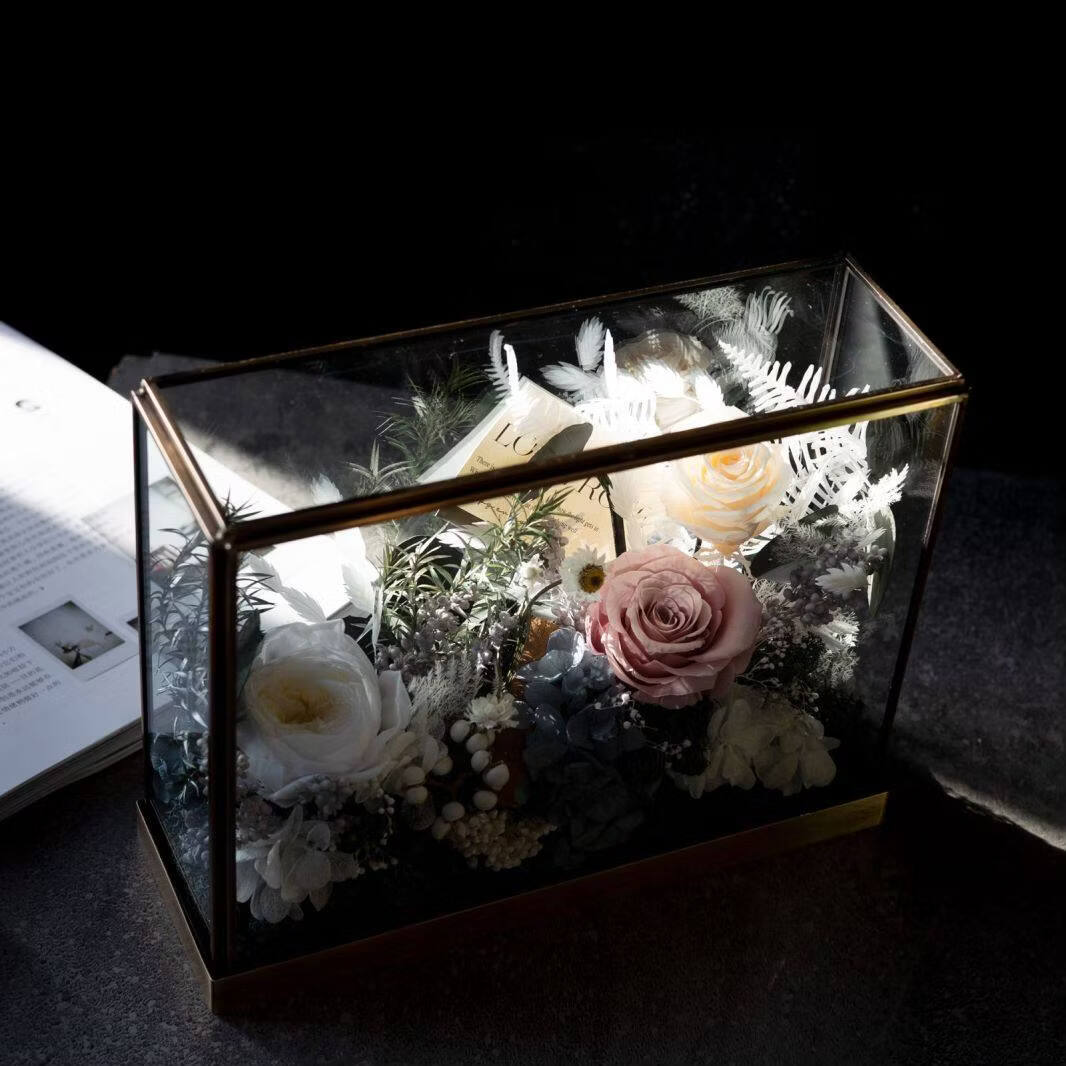 Preserved flower rose high-end micro landscape dried bouquet glass cover gift box birthday and Valentine's Day gift for teacher, best friend and girlfriend cappuccino (black card)