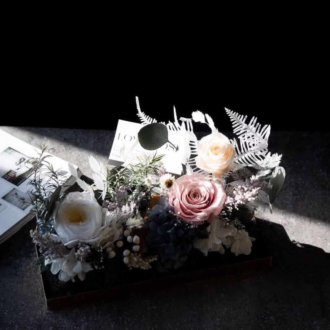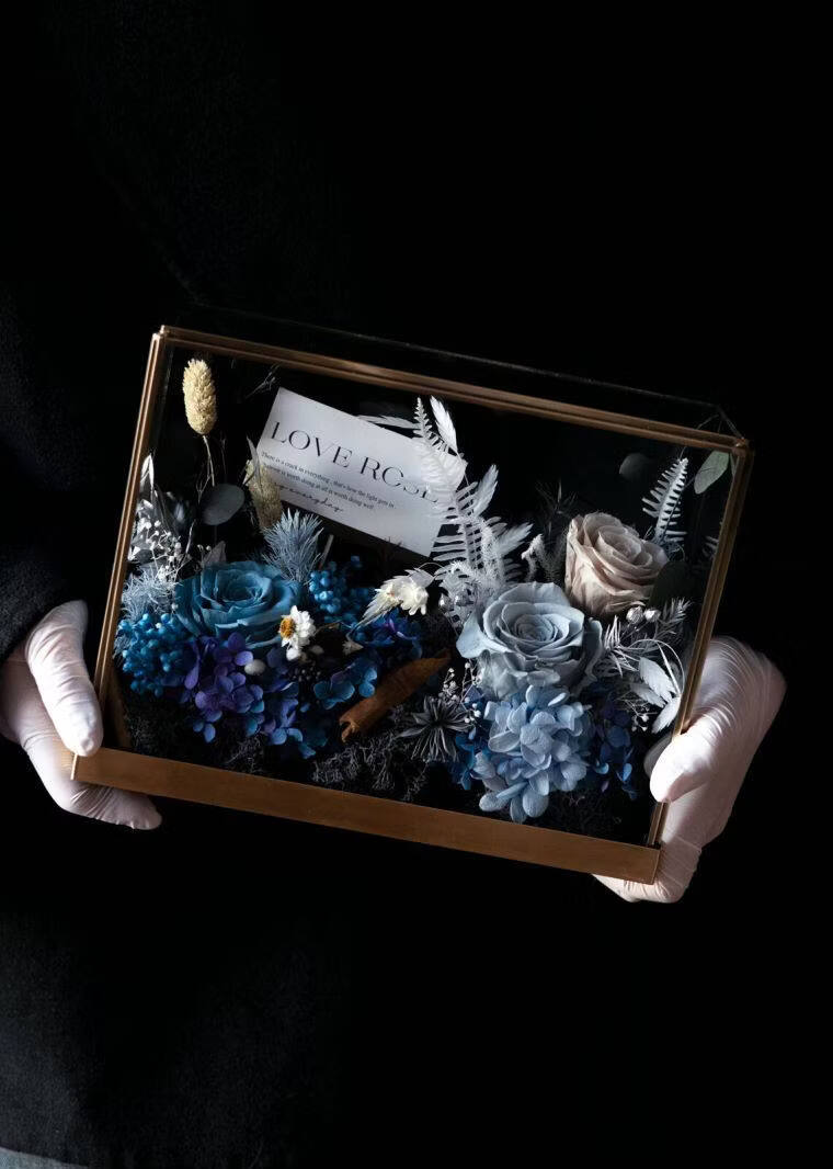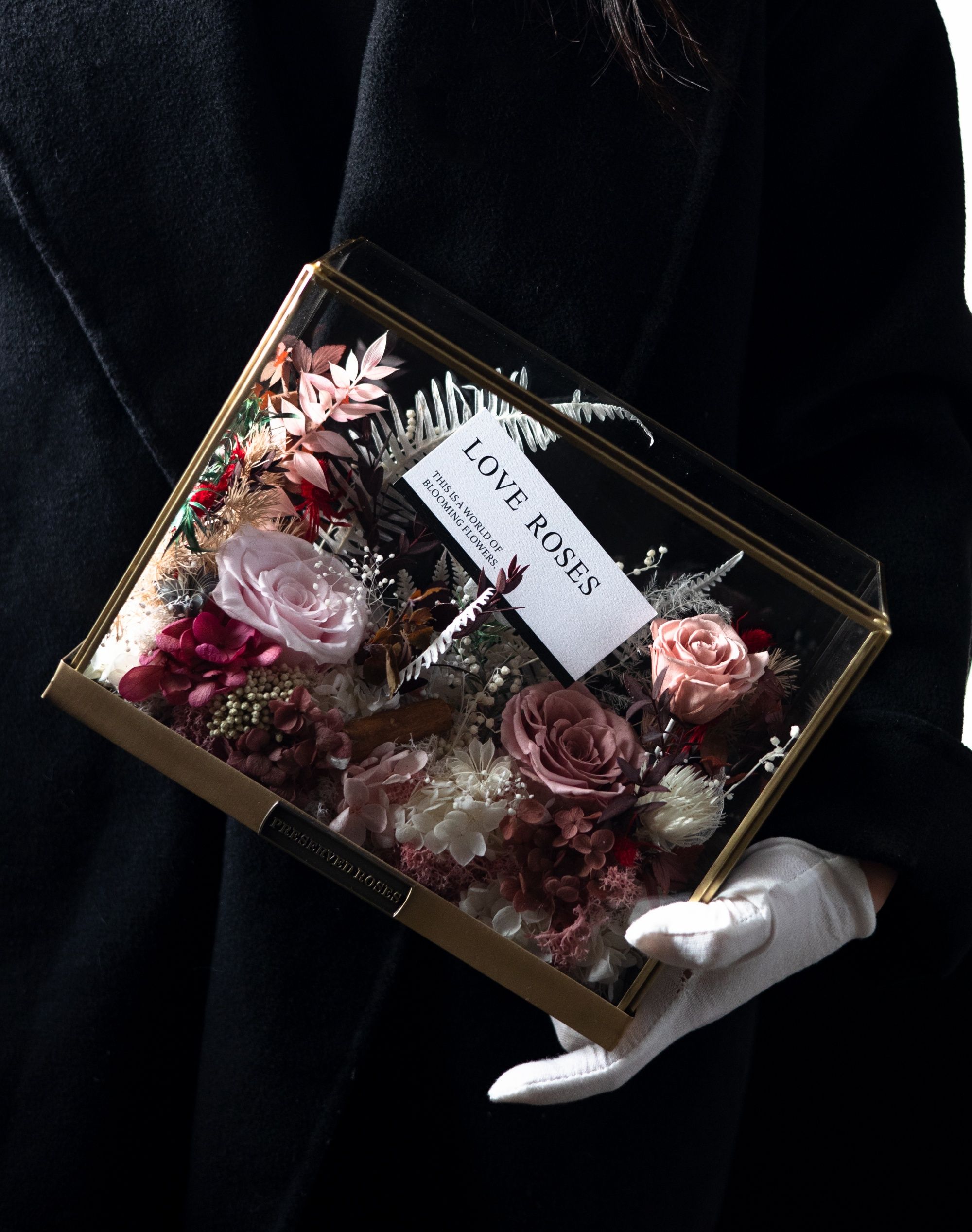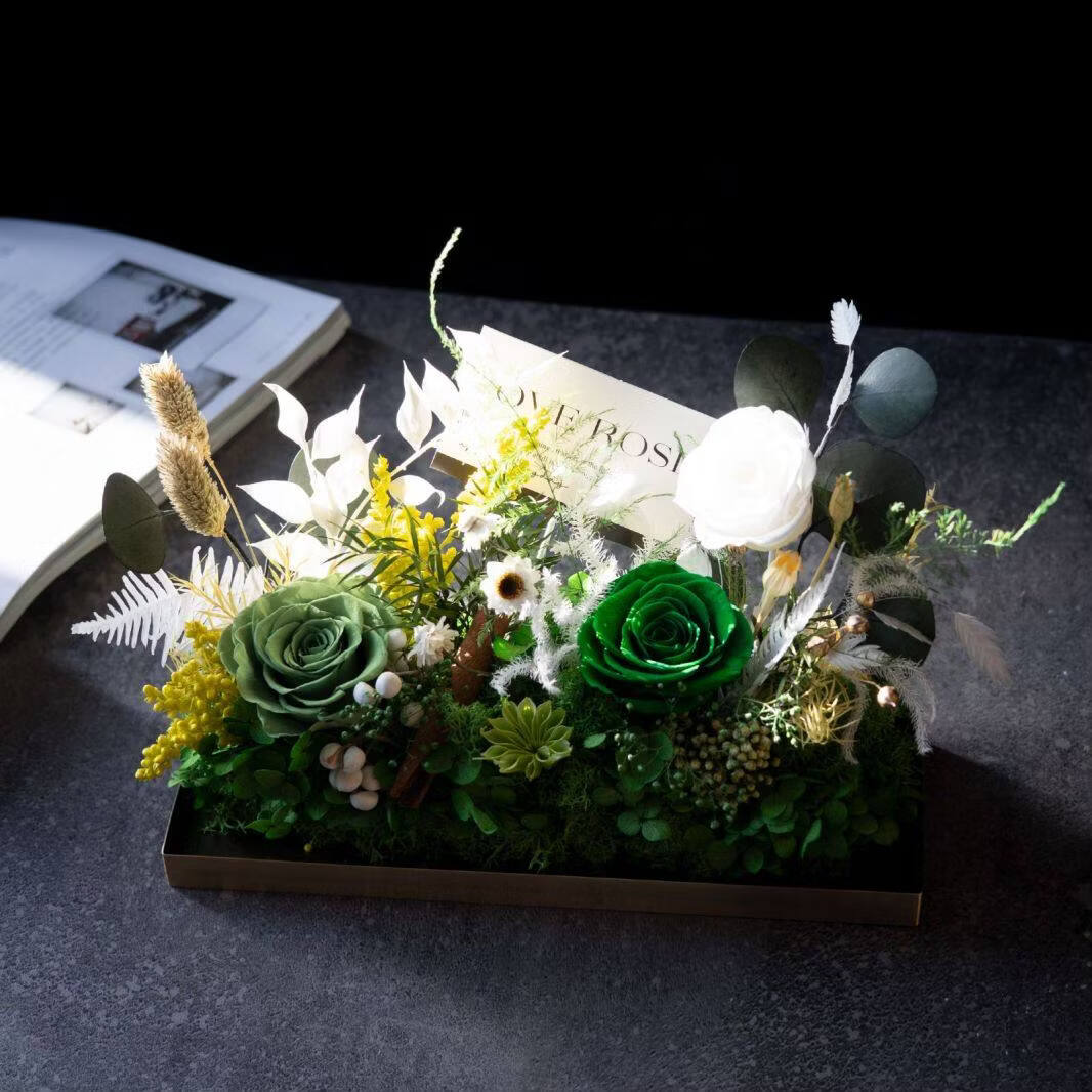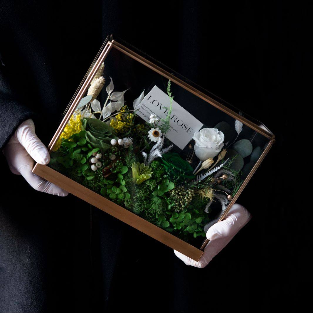 Preserved flower rose high-end micro landscape dried bouquet glass cover gift box birthday and Valentine's Day gift for teacher, best friend and girlfriend cappuccino (black card)
