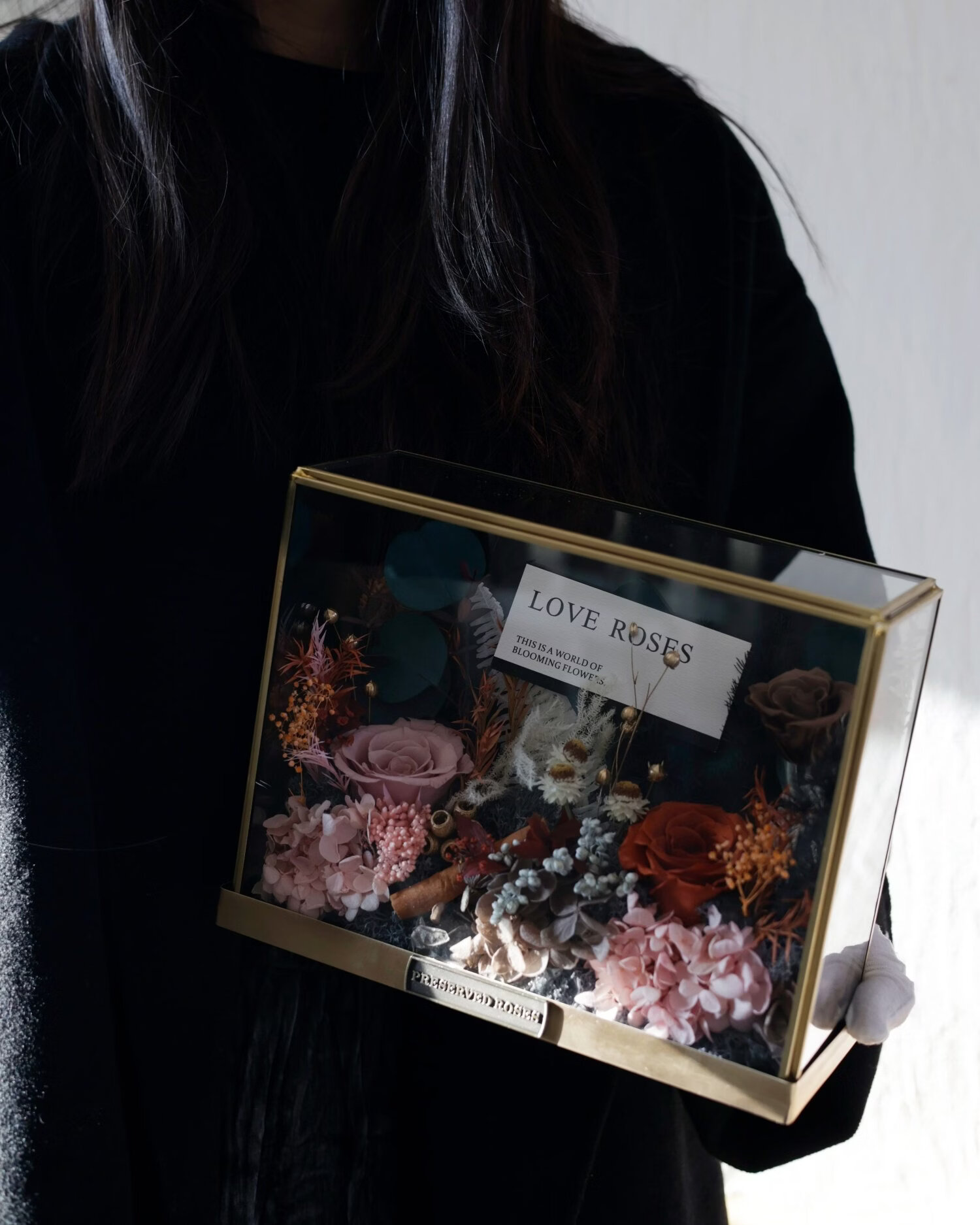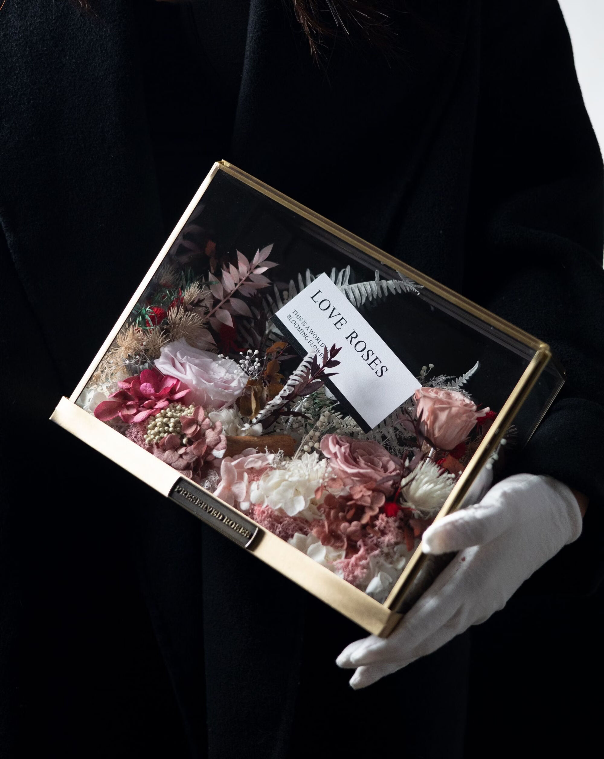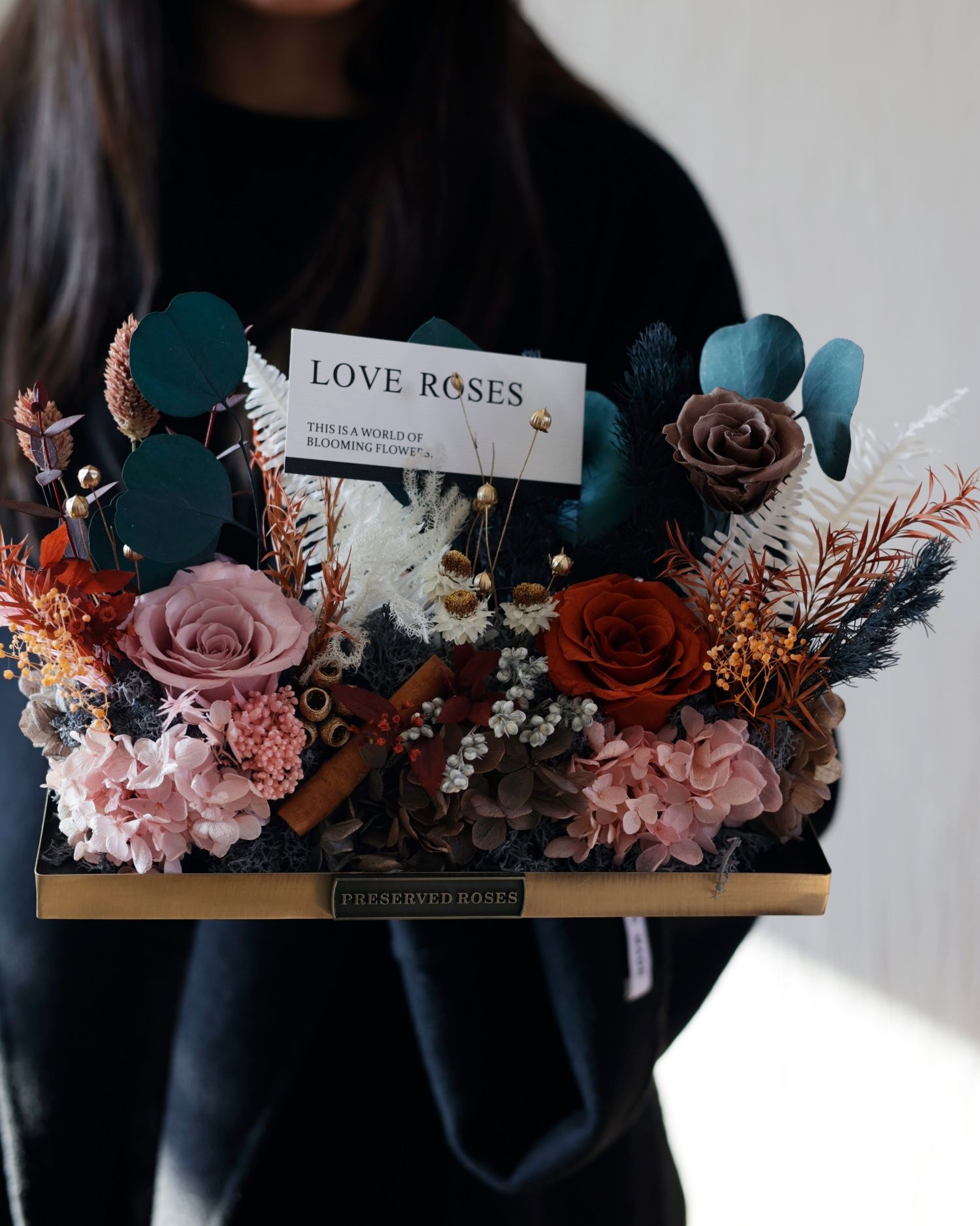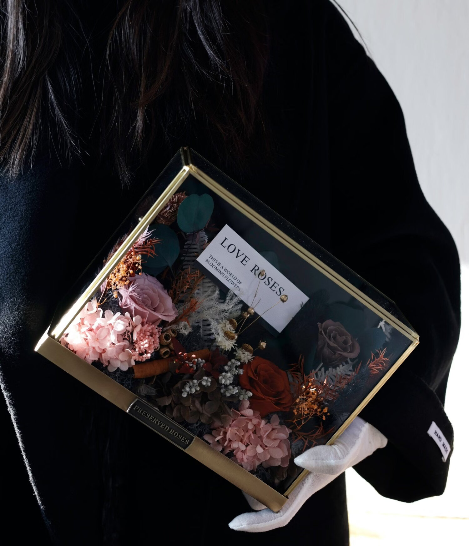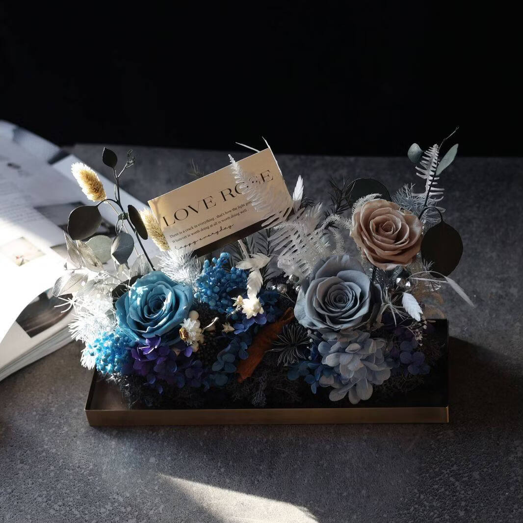 Preserved flower rose high-end micro landscape dried bouquet glass cover gift box birthday and Valentine's Day gift for teacher, best friend and girlfriend cappuccino (black card)