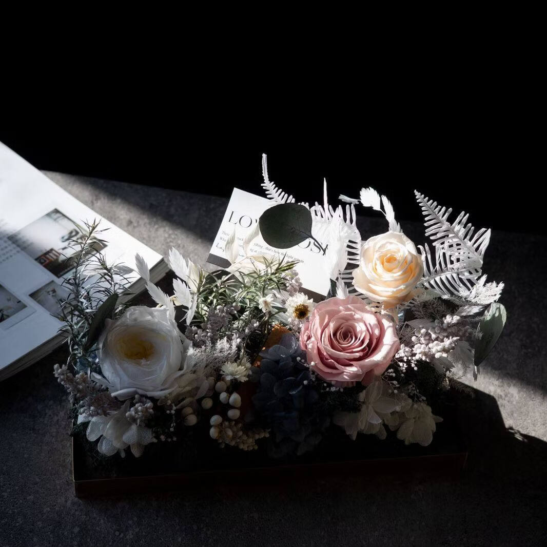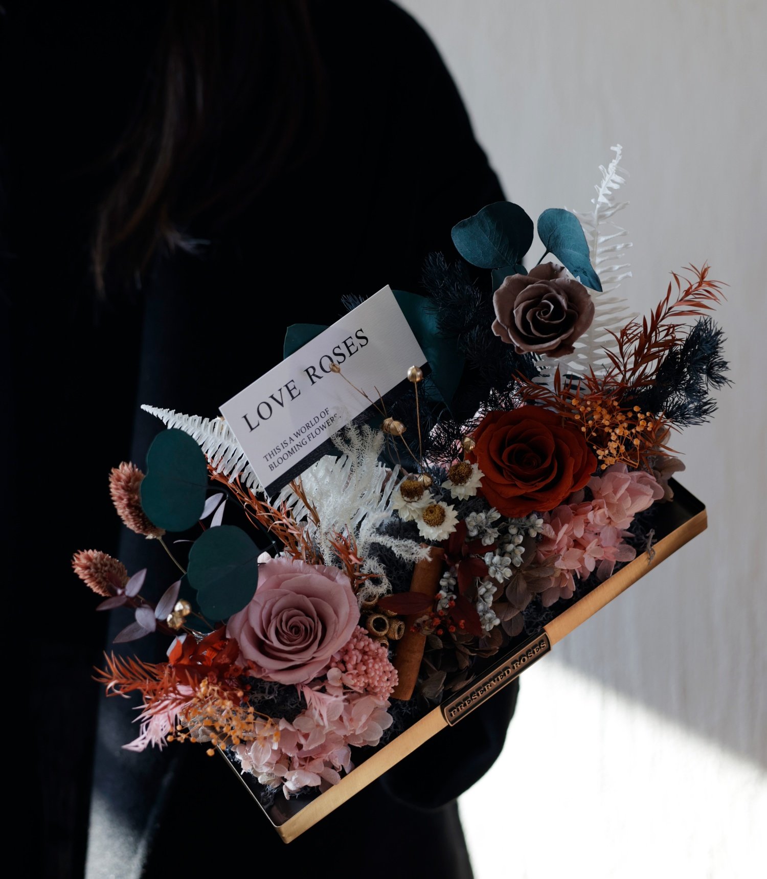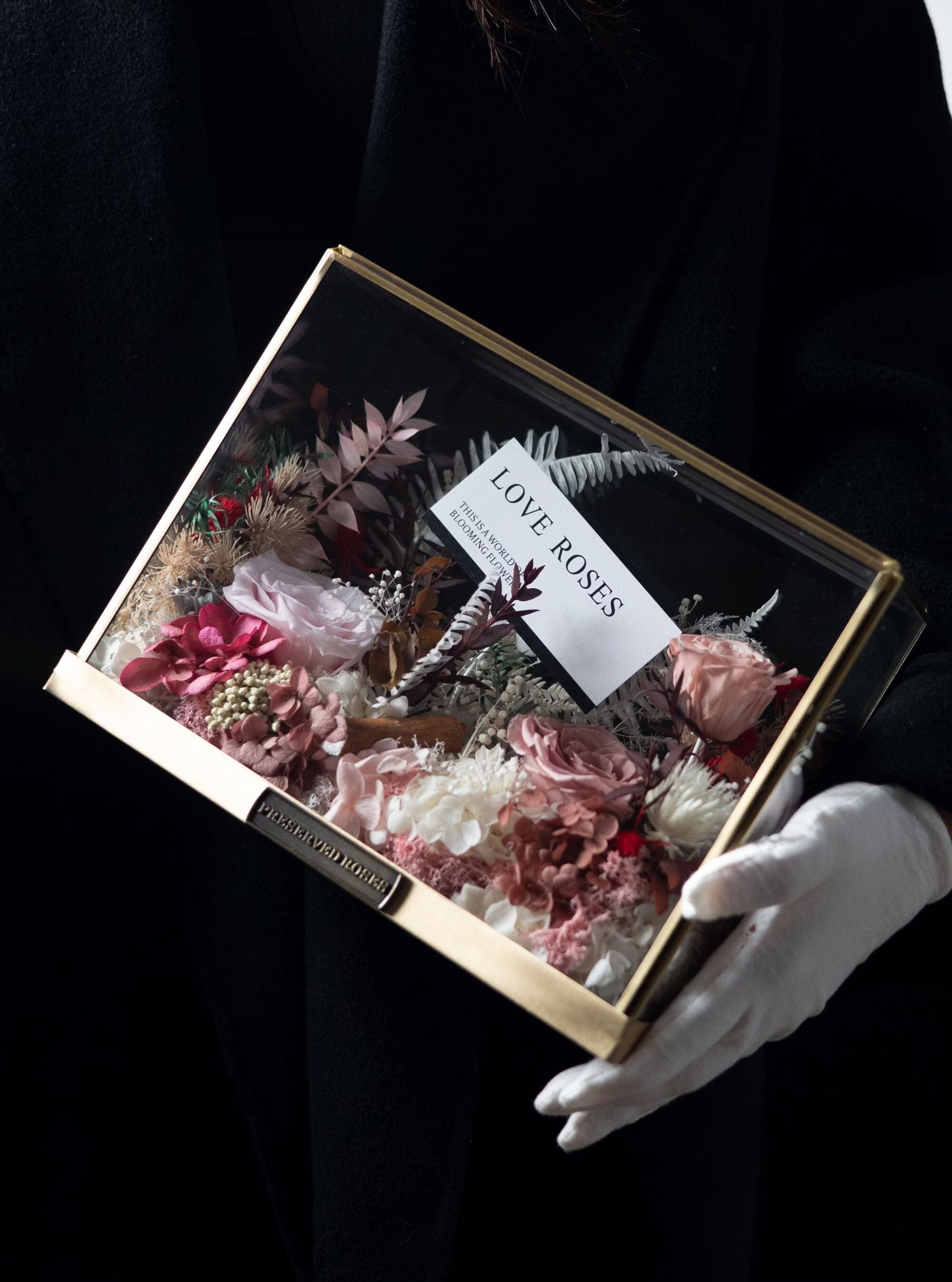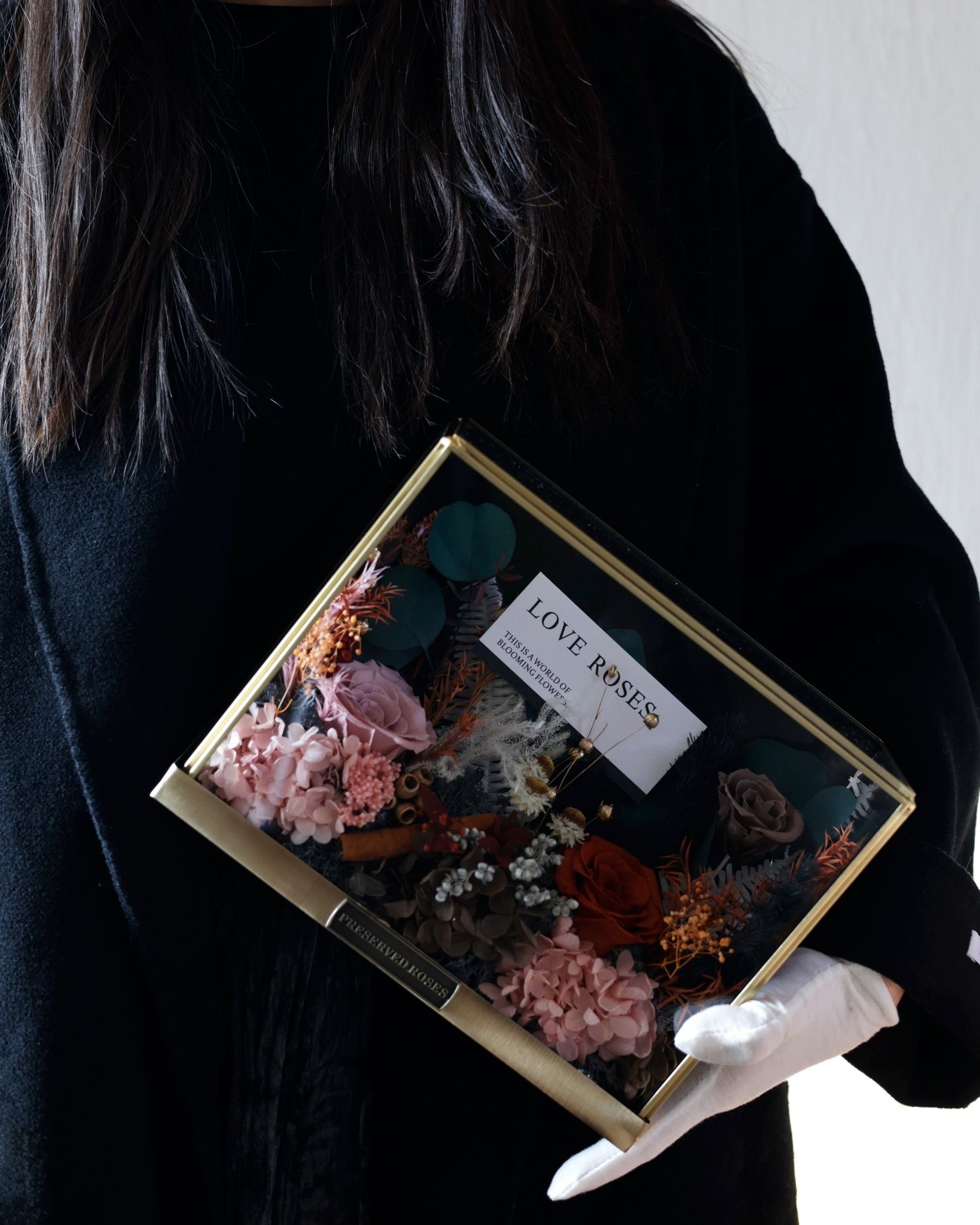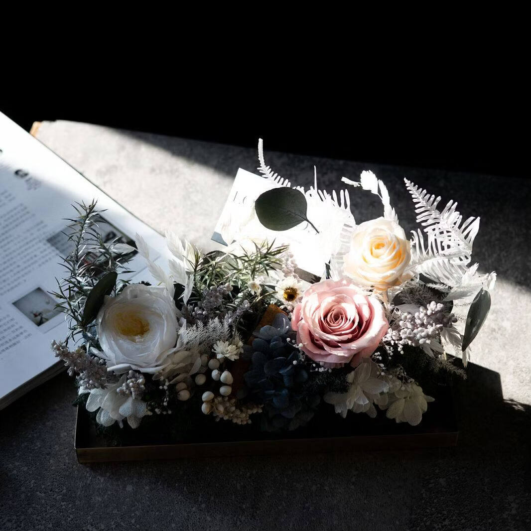 Preserved flower rose high-end micro landscape dried bouquet glass cover gift box birthday and Valentine's Day gift for teacher, best friend and girlfriend cappuccino (black card)