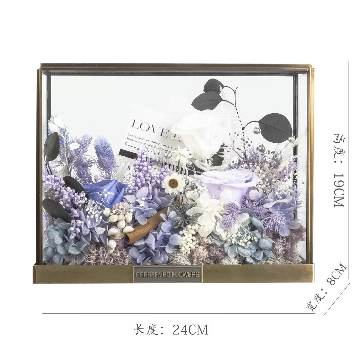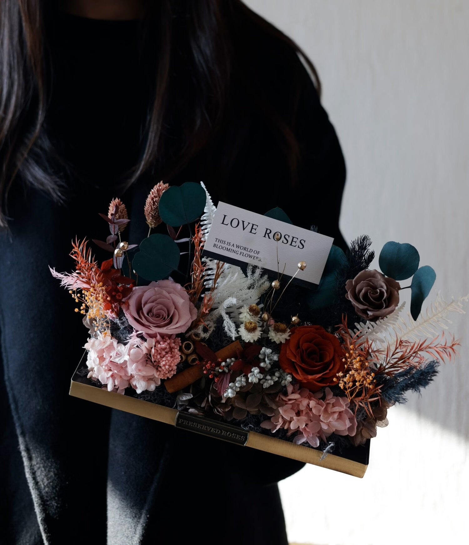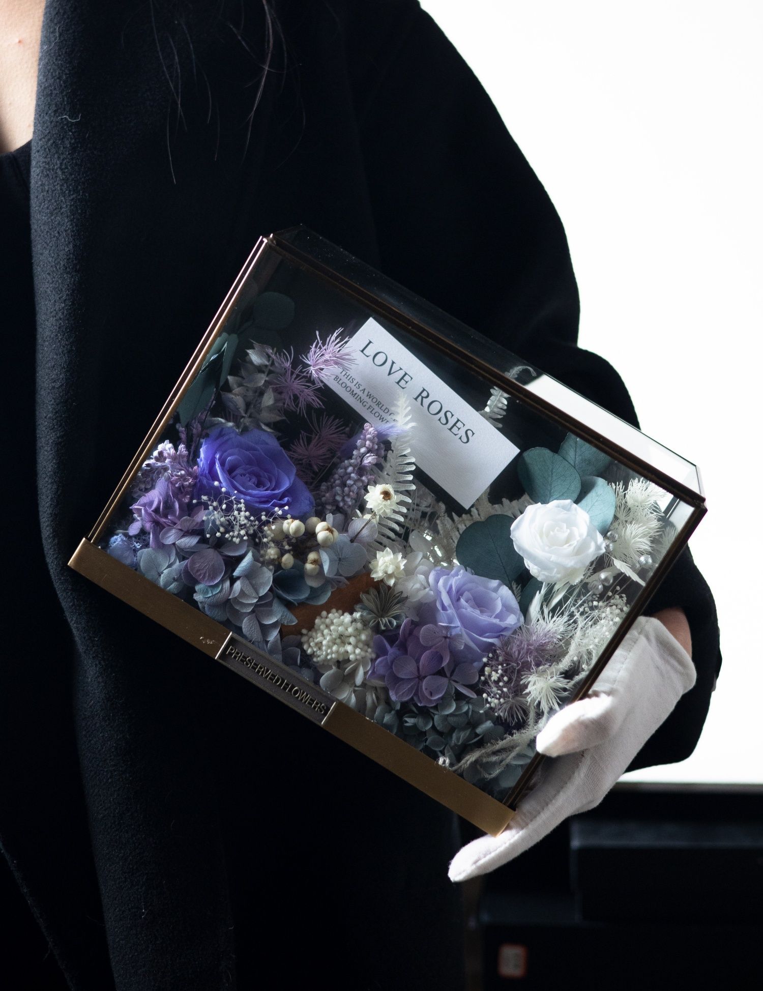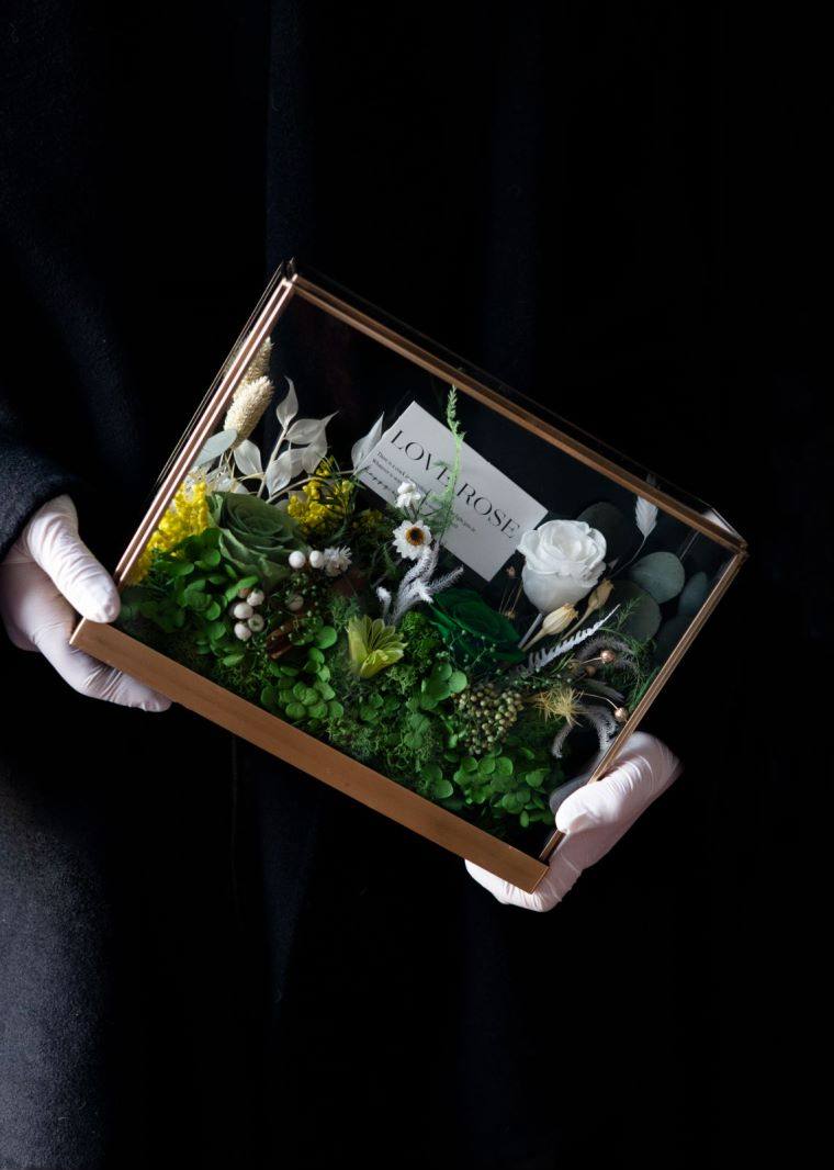 Preserved flower rose high-end micro landscape dried bouquet glass cover gift box birthday and Valentine's Day gift for teacher, best friend and girlfriend cappuccino (black card)