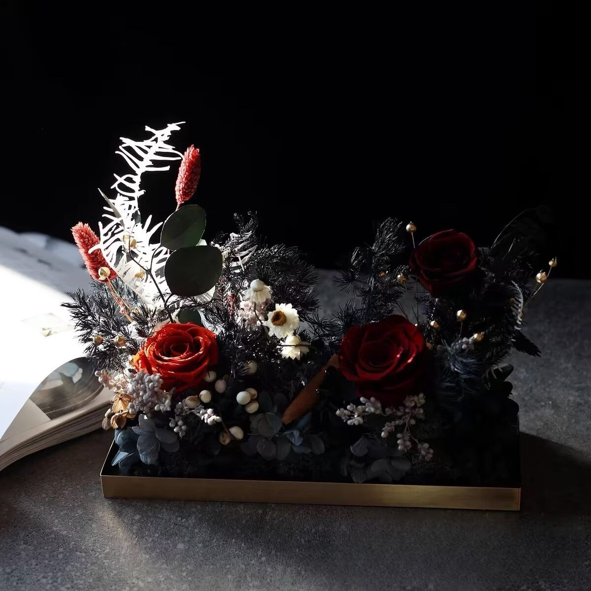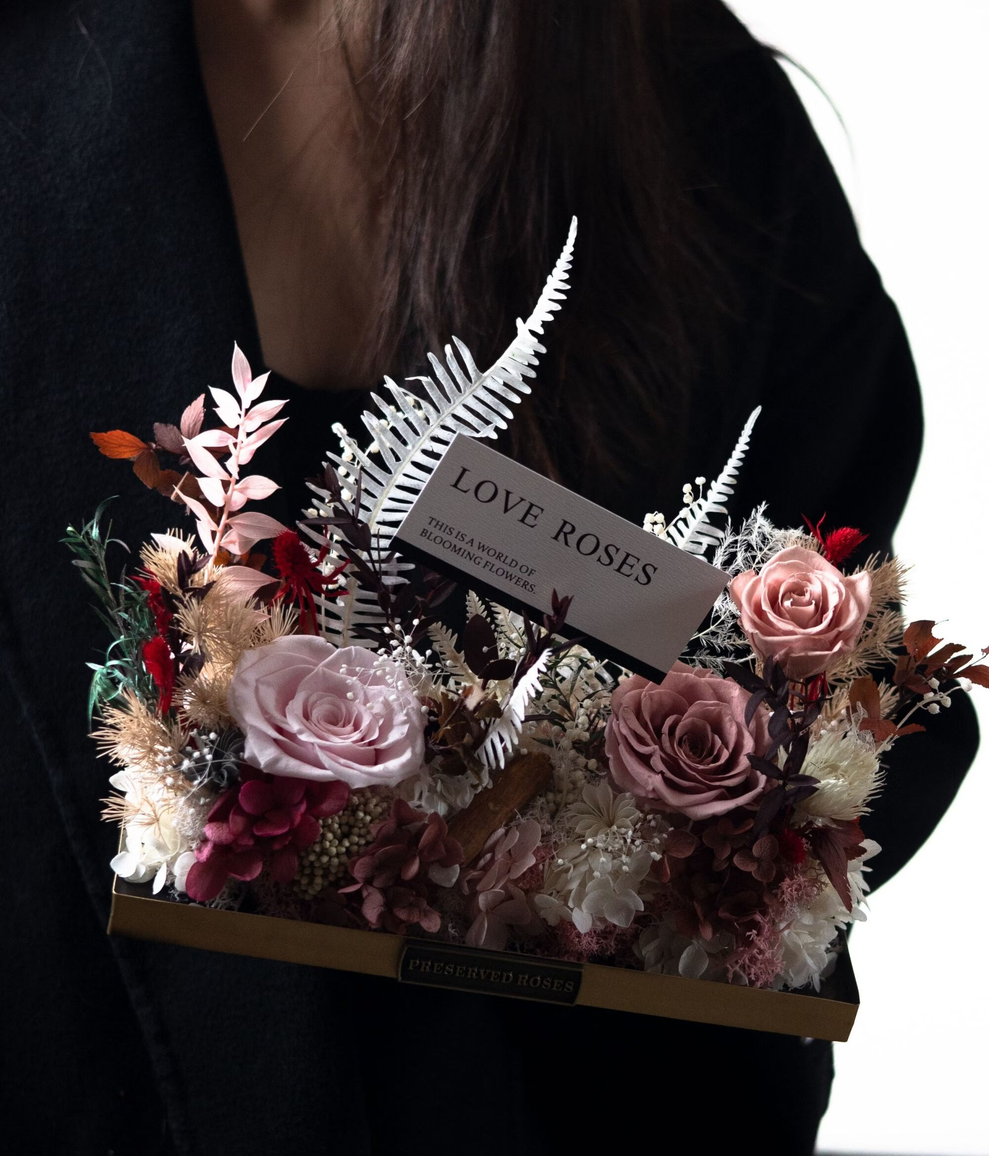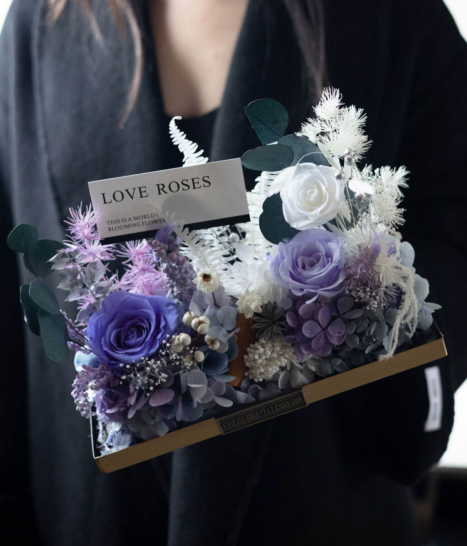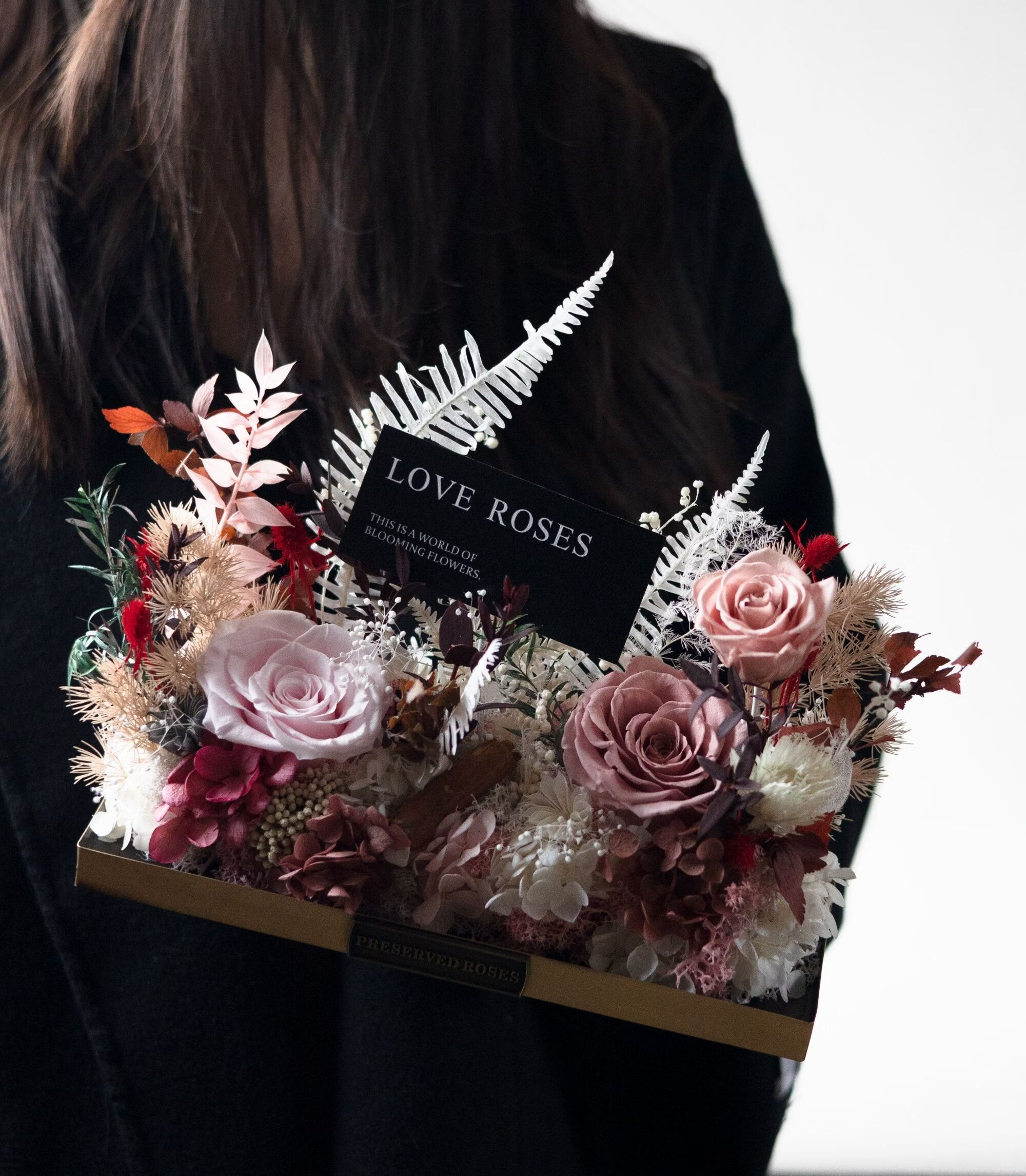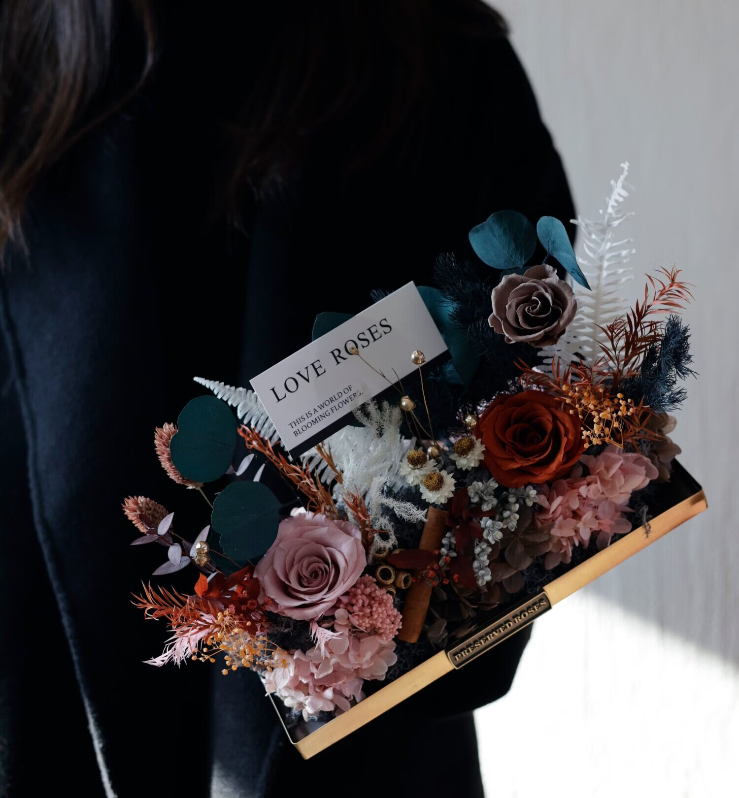Preserved flower rose high-end micro landscape dried bouquet glass cover gift box birthday and Valentine's Day gift for teacher, best friend and girlfriend cappuccino (black card)