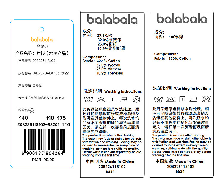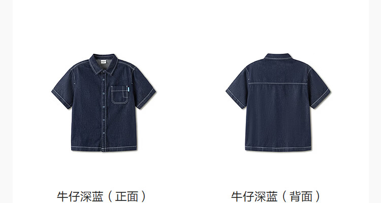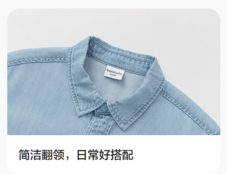 BALABALA balaOne Balabala boys short-sleeved shirt children's middle and large children's denim 2026 new summer versatile denim dark blue 88301 110