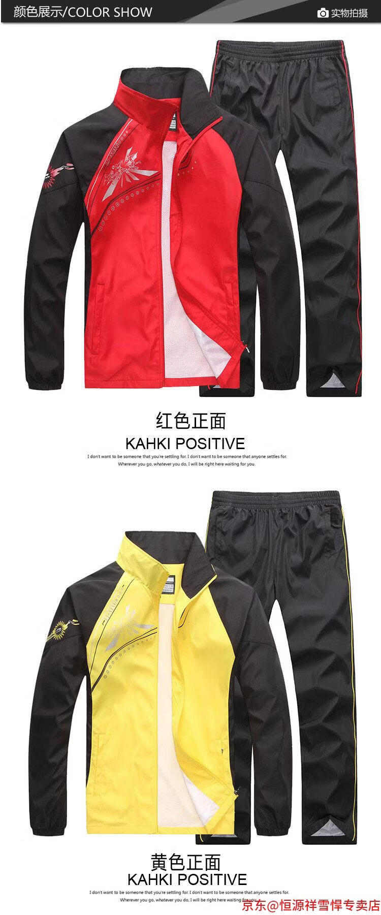 Hengyuanxiang sportswear suit men's spring and autumn couple wear long-sleeved women's jacket young and middle-aged casual sportswear running 8558 red-long-sleeved suit 4XL male
