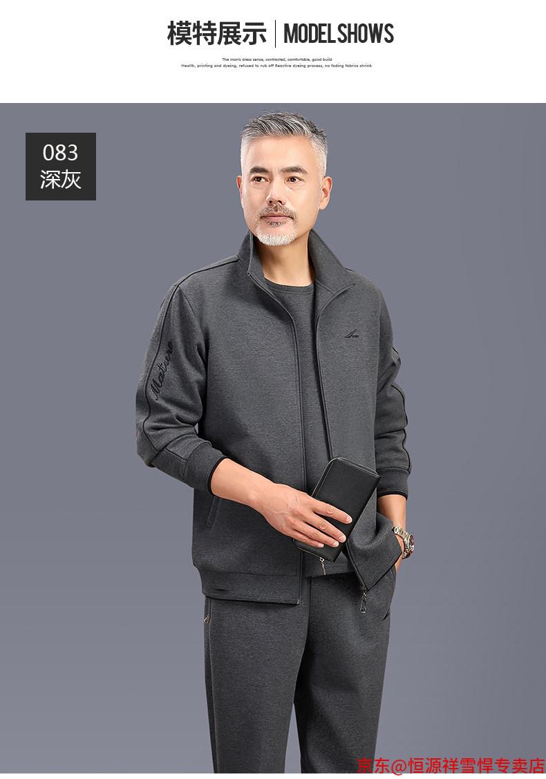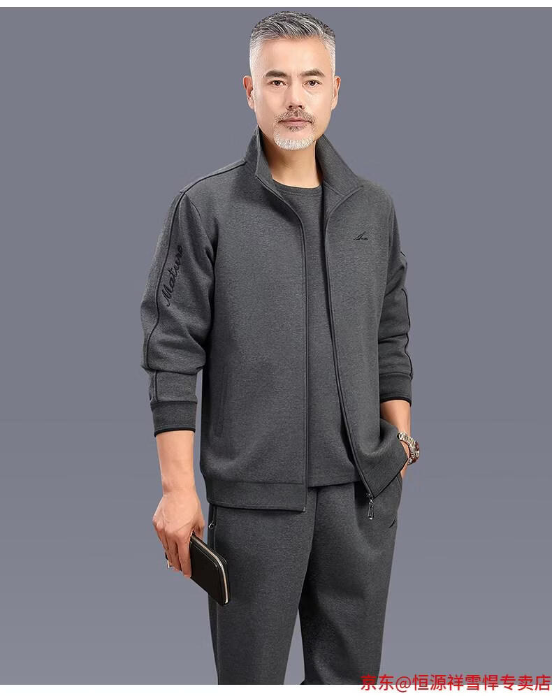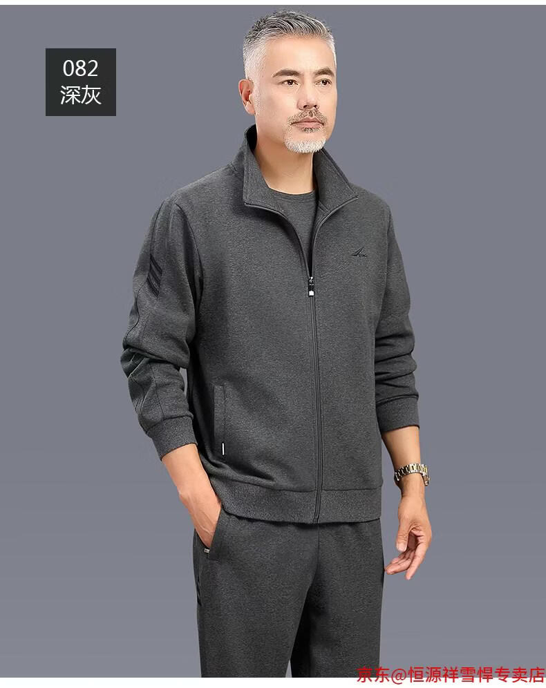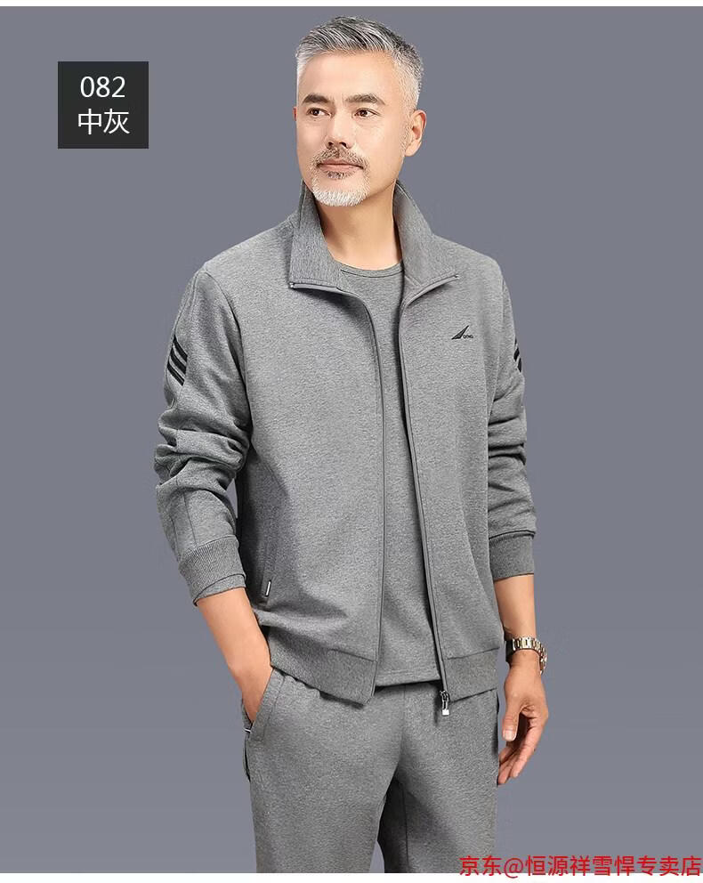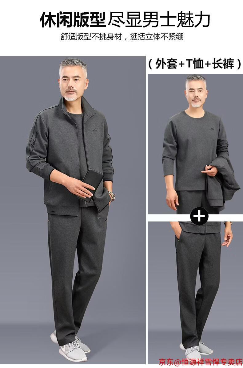 Hengyuanxiang dad sports suit 2026 spring and autumn men's middle-aged and elderly cotton running casual sportswear loose three-piece set 83 styles (dark gray) L (recommended 100-125 Jin Jin equals 0.5 kg)