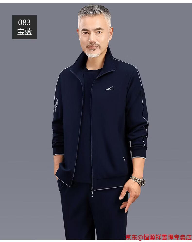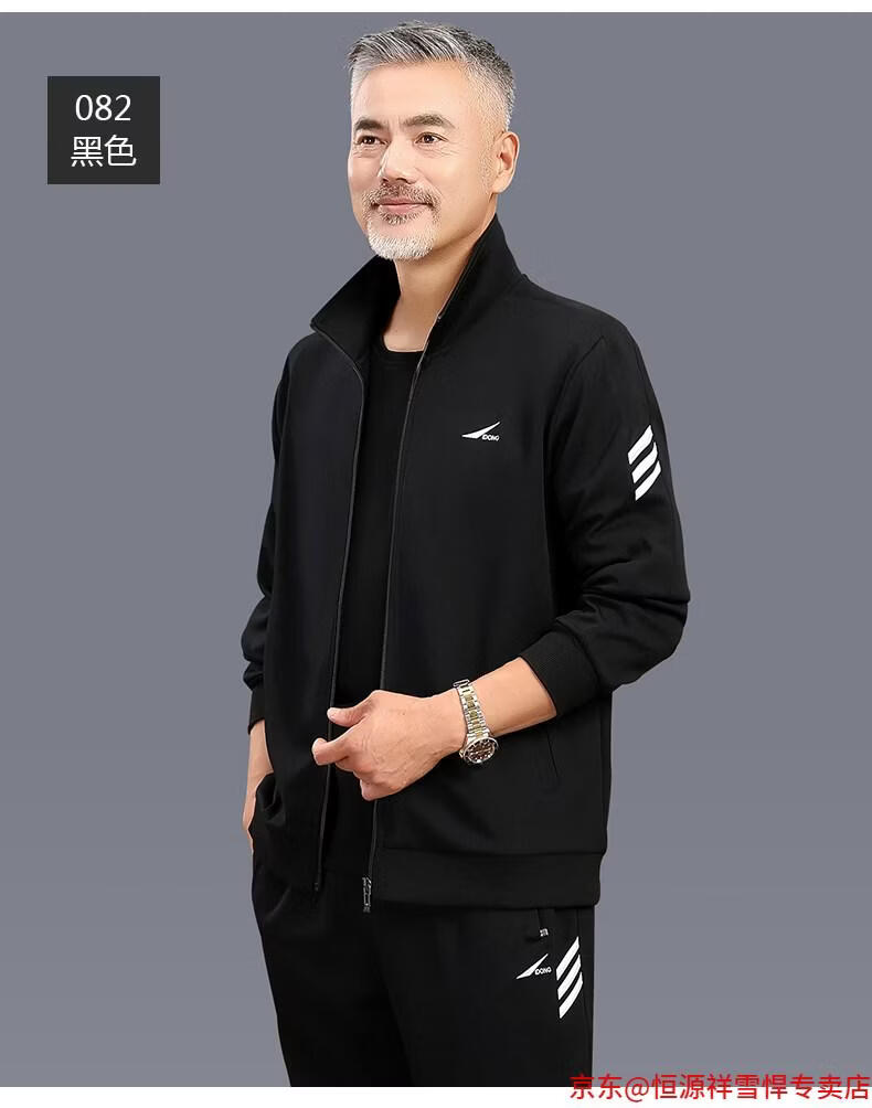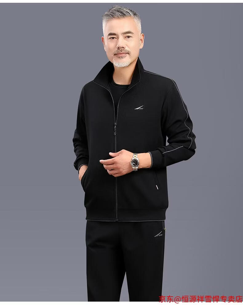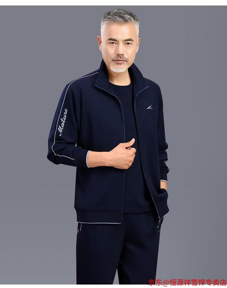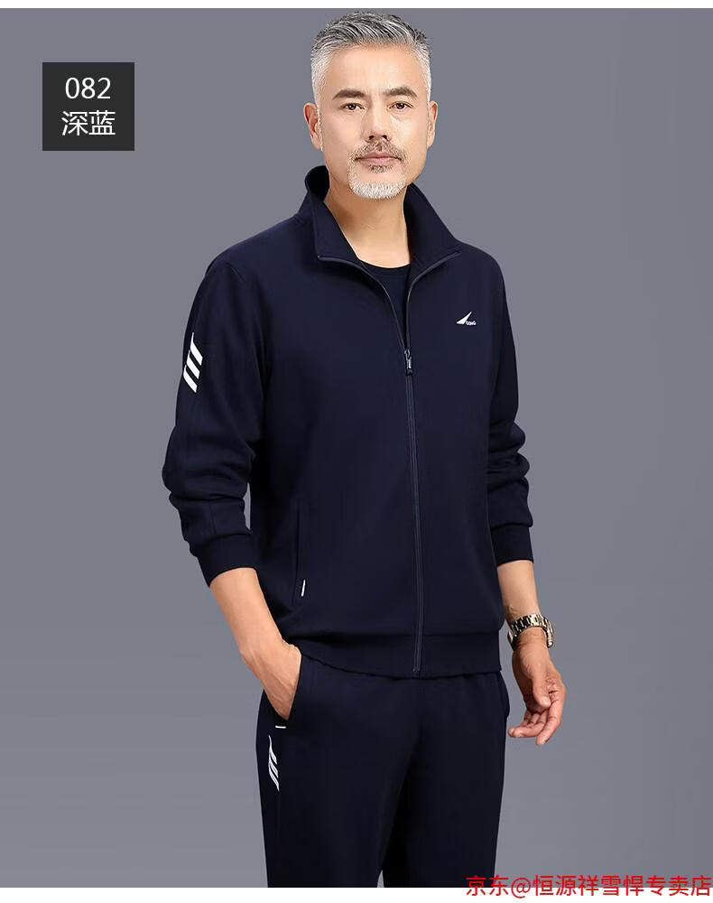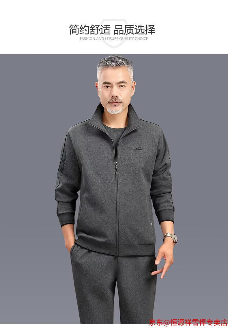 Hengyuanxiang dad sports suit 2026 spring and autumn men's middle-aged and elderly cotton running casual sportswear loose three-piece set 83 styles (dark gray) L (recommended 100-125 Jin Jin equals 0.5 kg)