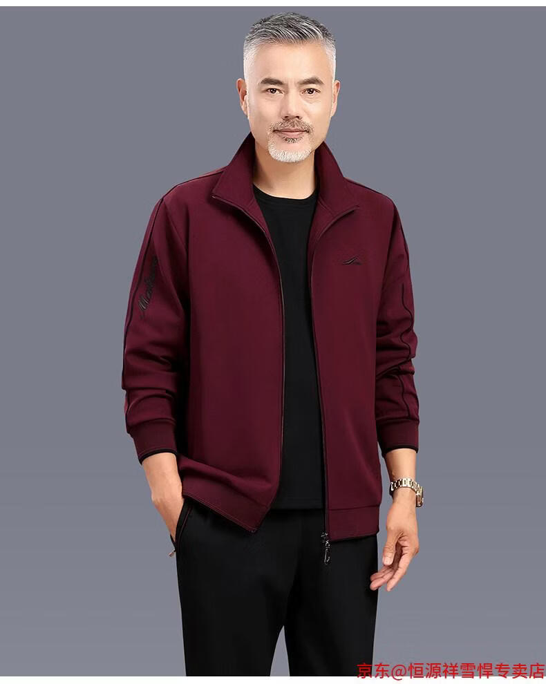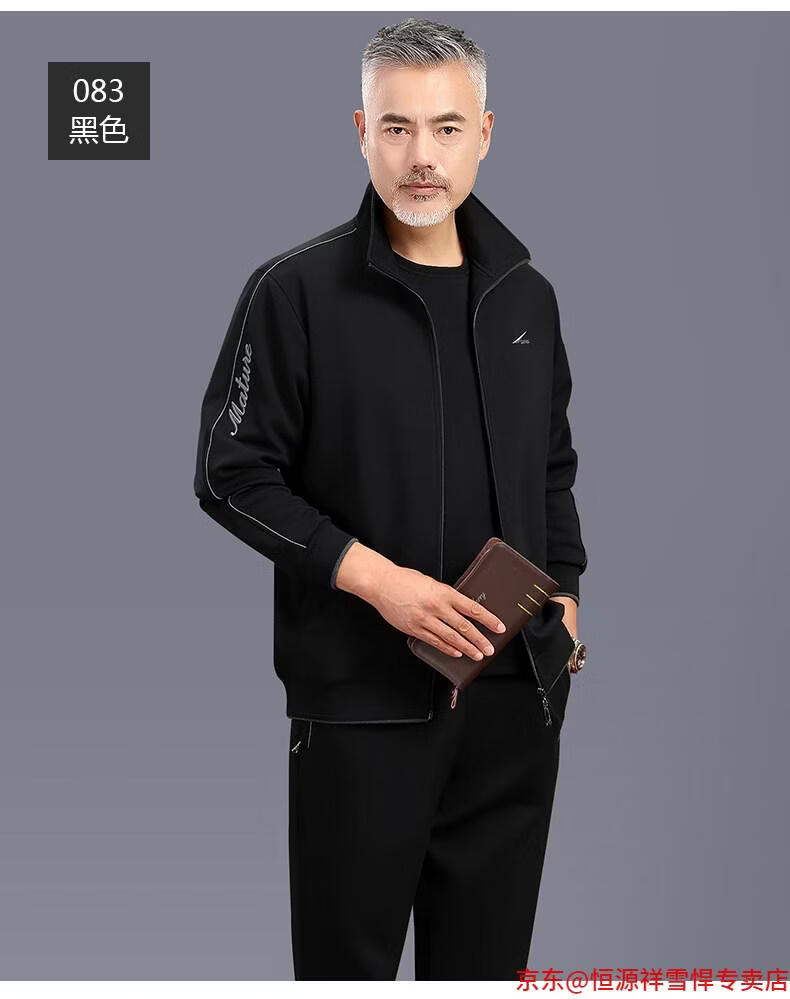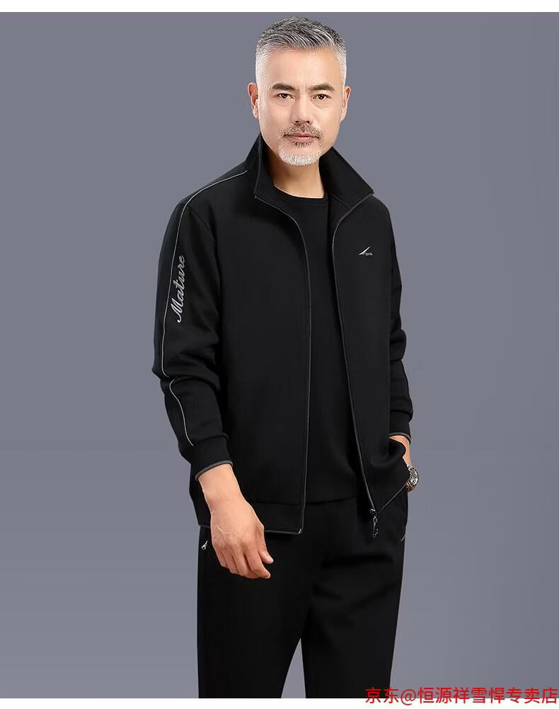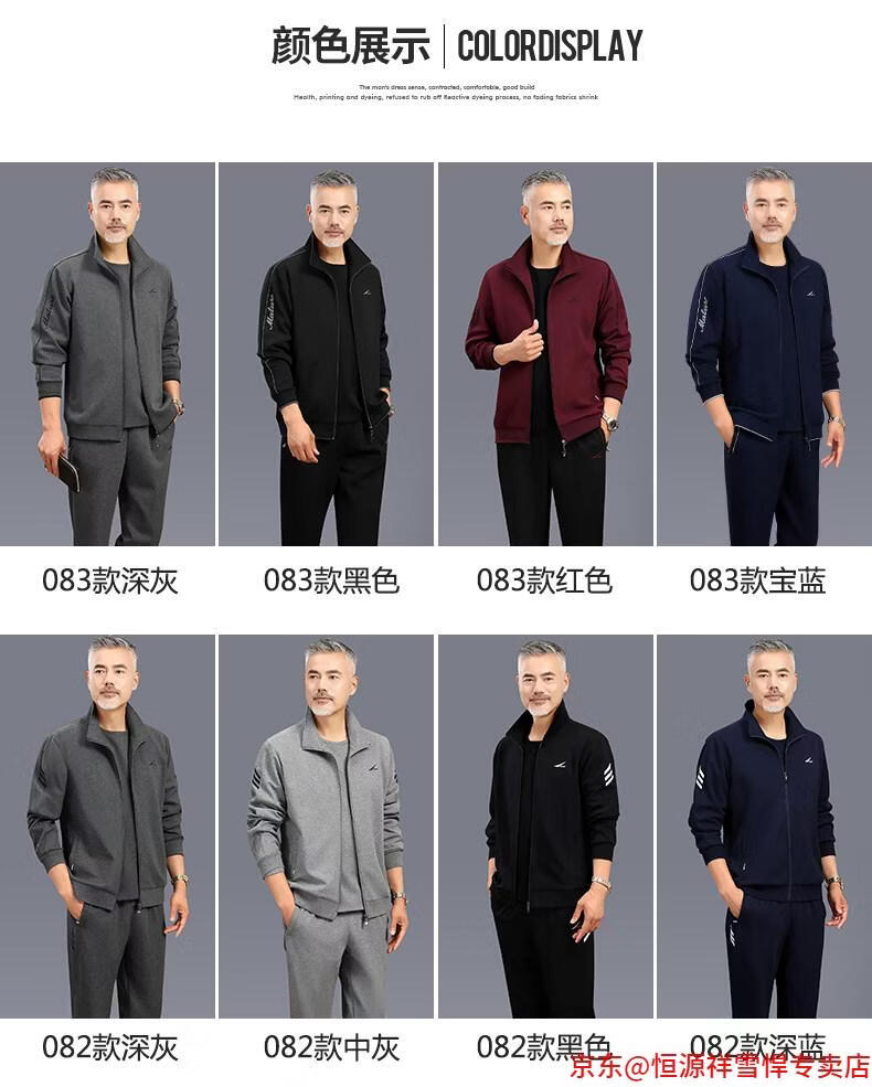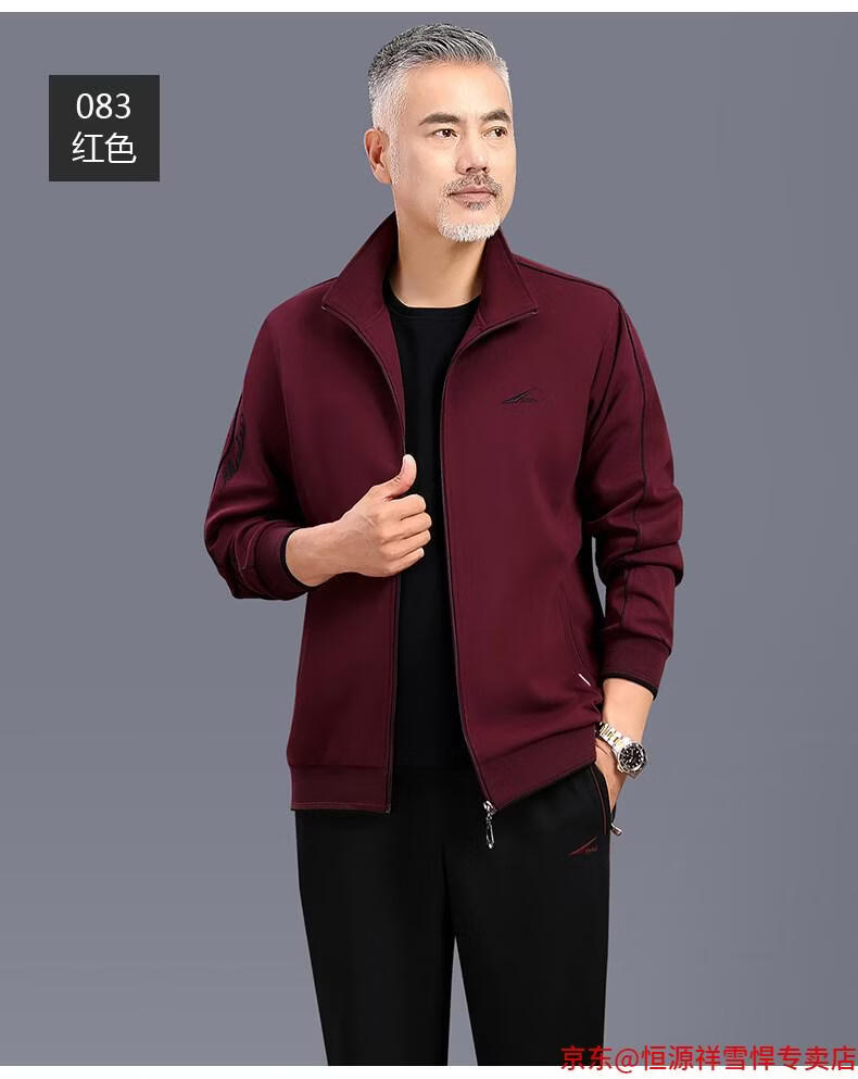 Hengyuanxiang dad sports suit 2026 spring and autumn men's middle-aged and elderly cotton running casual sportswear loose three-piece set 83 styles (dark gray) L (recommended 100-125 Jin Jin equals 0.5 kg)