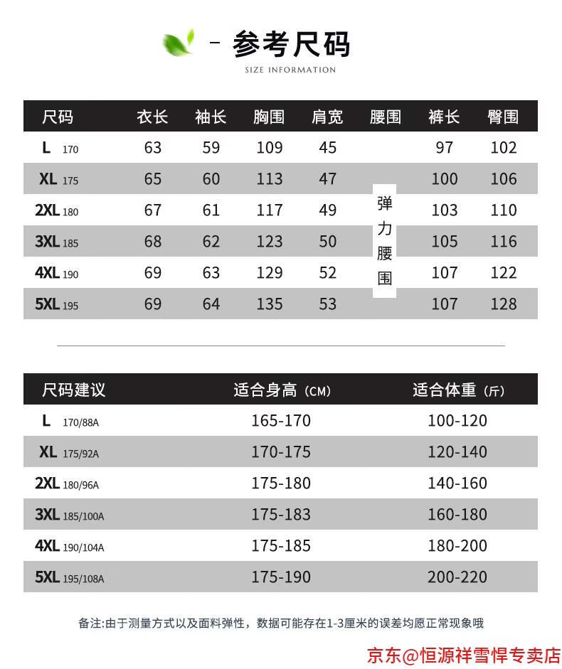 China (cm) 165 / 88-90 170 / 96-98 175 / 108-110 180 / 118-122 185 / 126-130