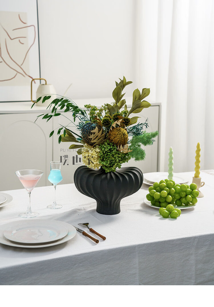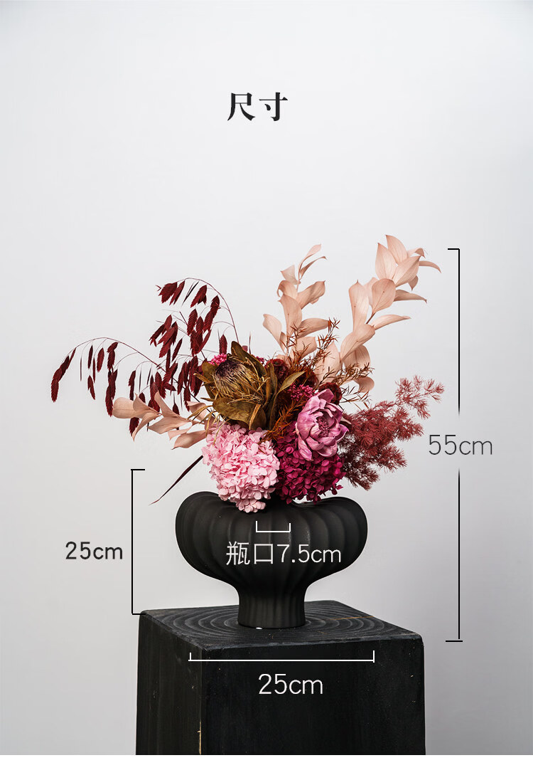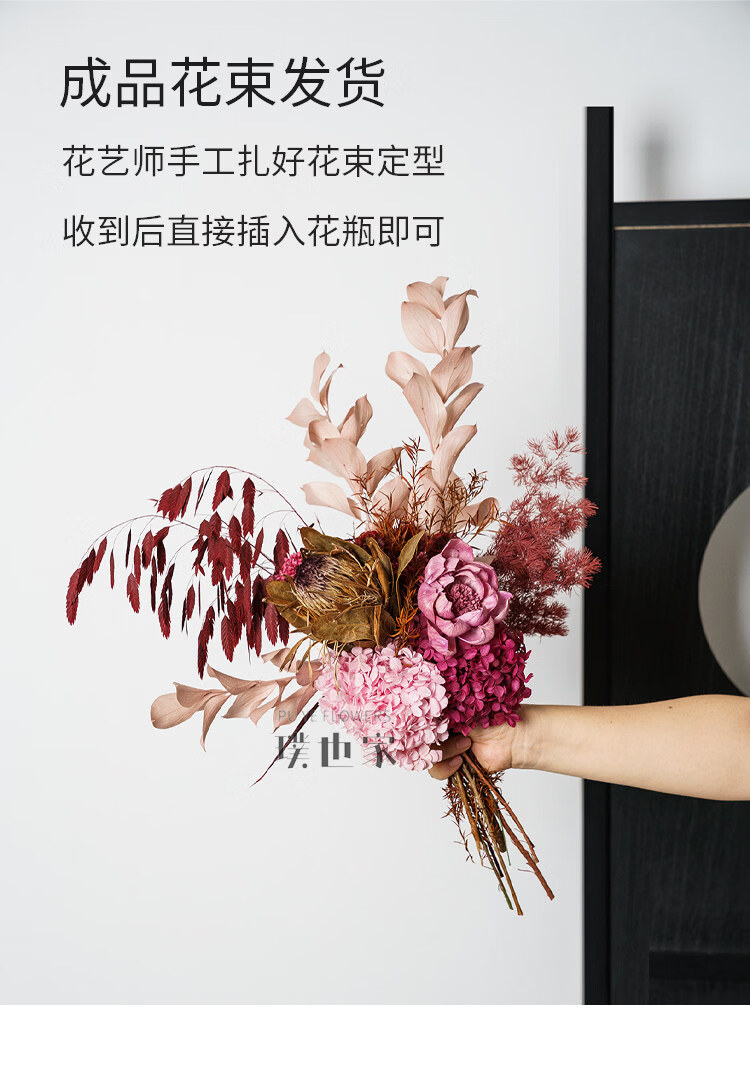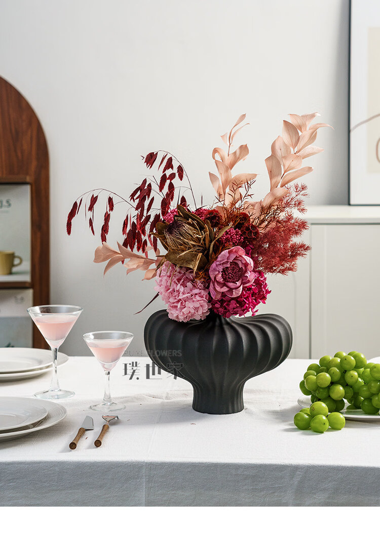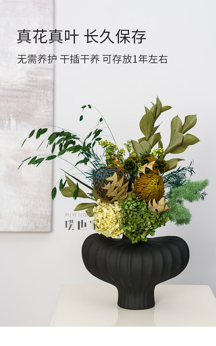 Ramo de flores secas inmortalizadas de alta gama, flores y hojas reales, decoración suave para el hogar, decoración floral, exhibición de tienda, ramo de la tarde C + jarrón naranja Morandi