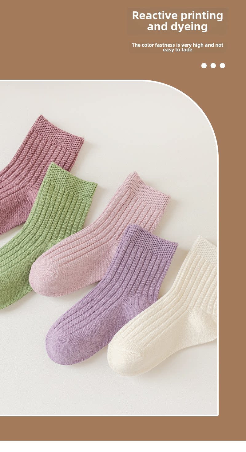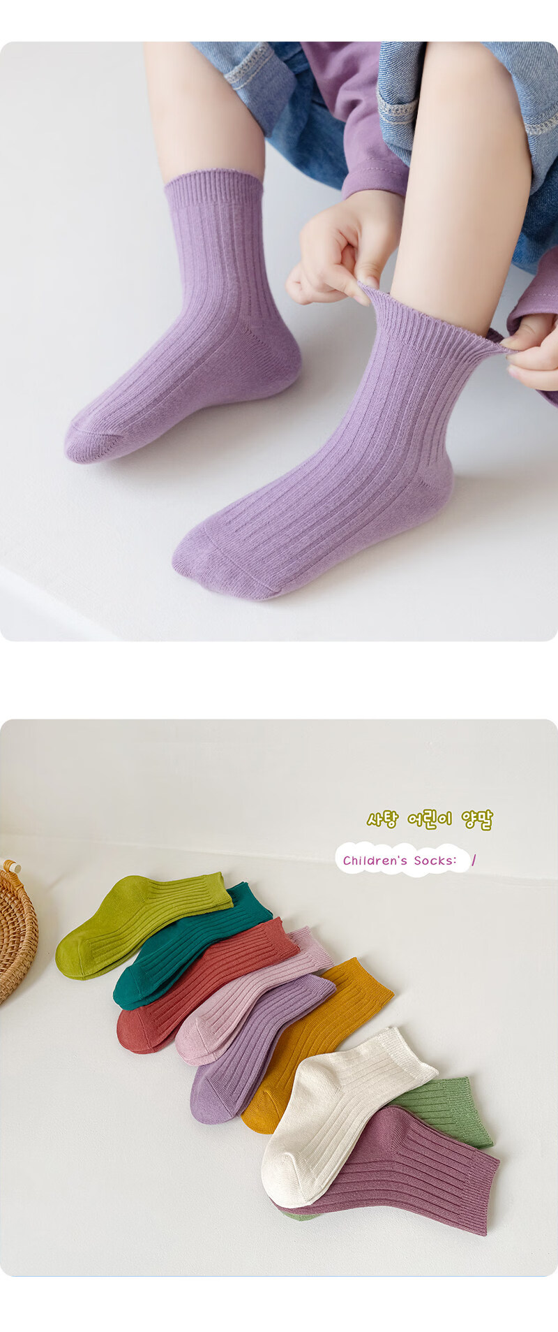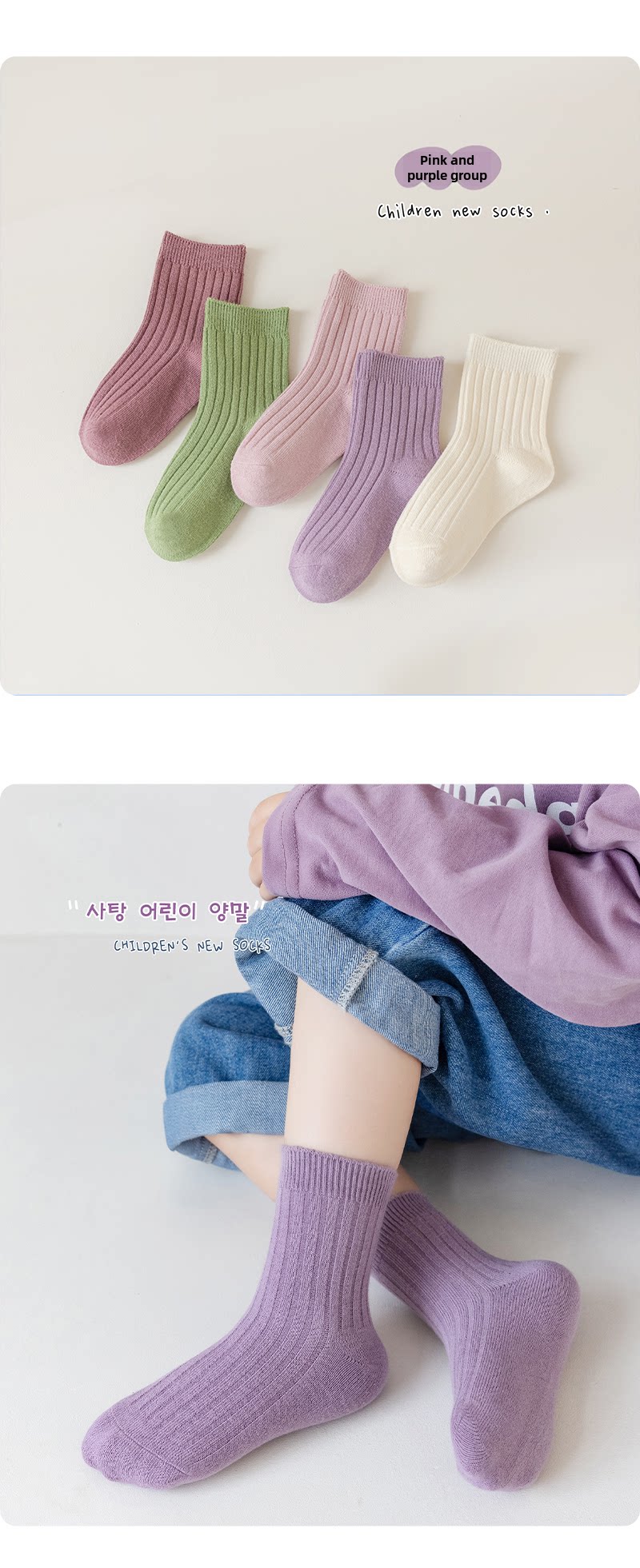 MiiOW girls socks spring new pure cotton children's mid-calf socks baby girls and boys socks teenager cotton QZ3061 pink and purple set (package) autumn new 5 pairs 1-3 years old recommended foot length 10-12cm shoe size 17-20