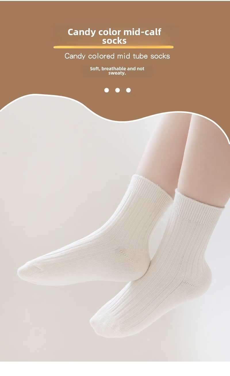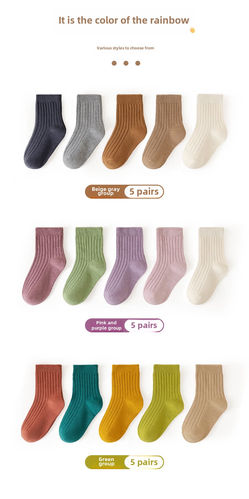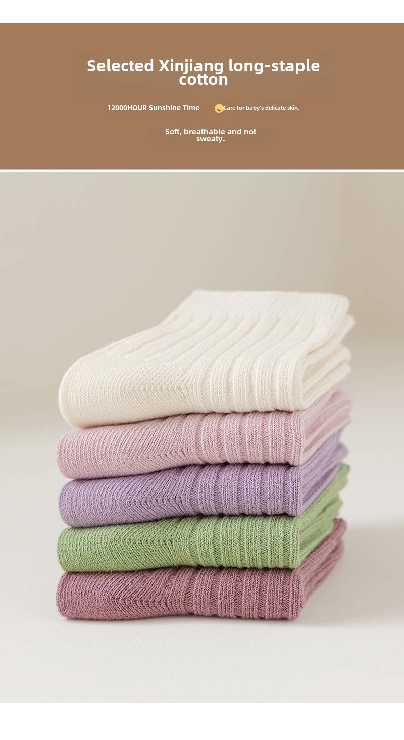 MiiOW girls socks spring new pure cotton children's mid-calf socks baby girls and boys socks teenager cotton QZ3061 pink and purple set (package) autumn new 5 pairs 1-3 years old recommended foot length 10-12cm shoe size 17-20