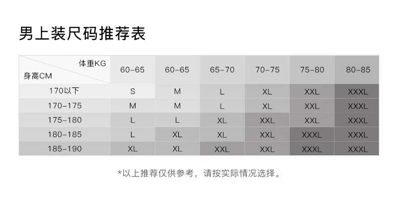 China (cm) 160-165/84-86 165-170 / 88-90 167-172 / 92-96 168-173 / 98-102 170-176 / 106-110