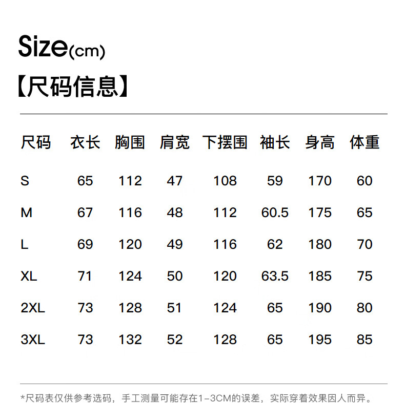 China (cm) 165 / 88-90 170 / 96-98 175 / 108-110 180 / 118-122 185 / 126-130
