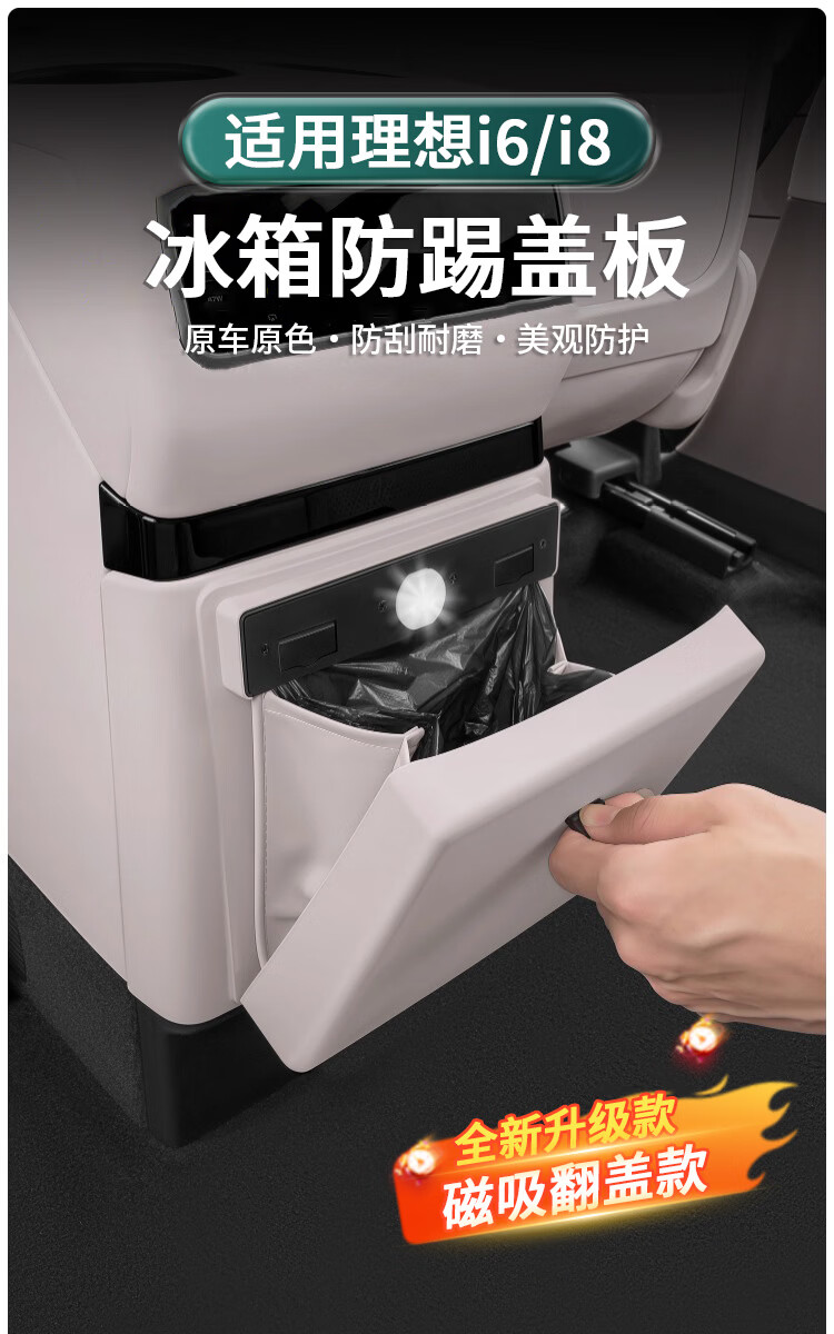 The drive decoration is suitable for Ideal i8/i6 refrigerator anti-kick trash can buckle folding hidden storage bag car interior accessories Ideal i6 refrigerator anti-kick trash can original car white