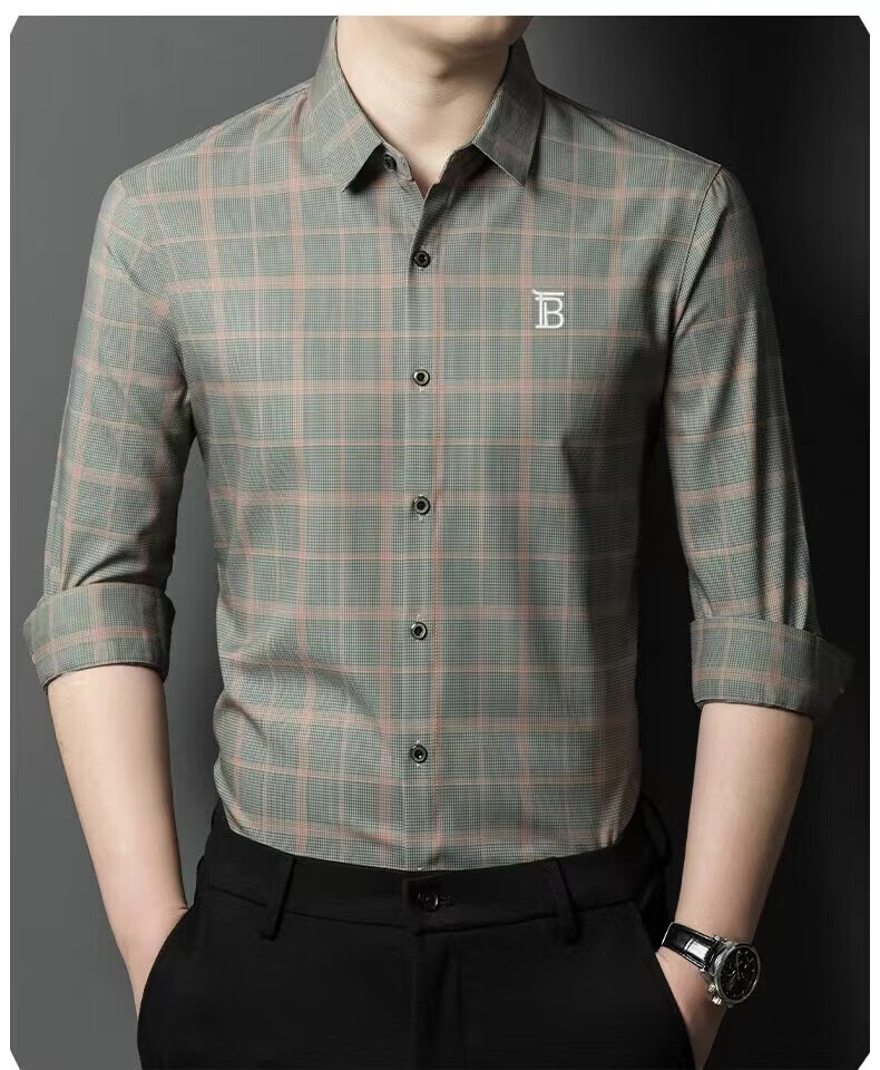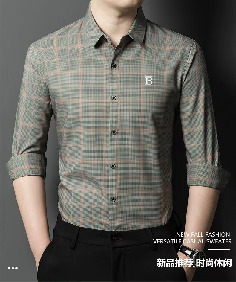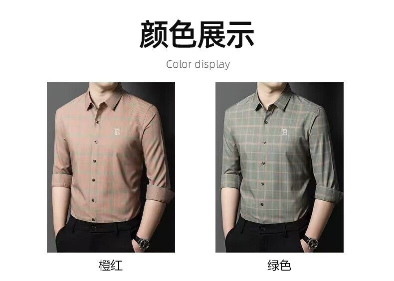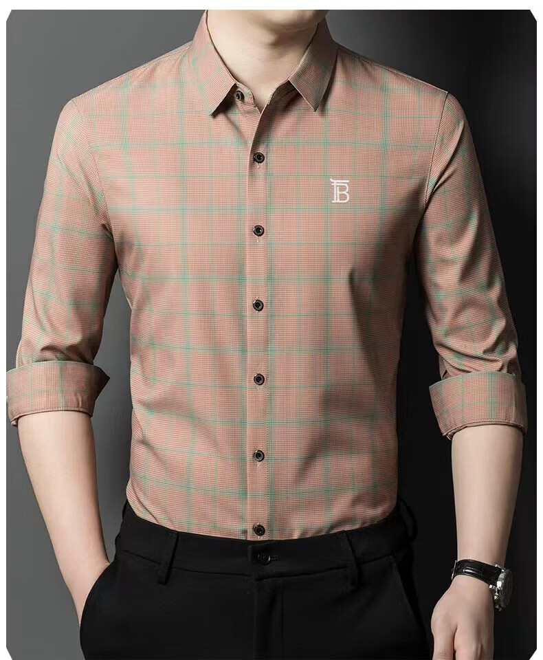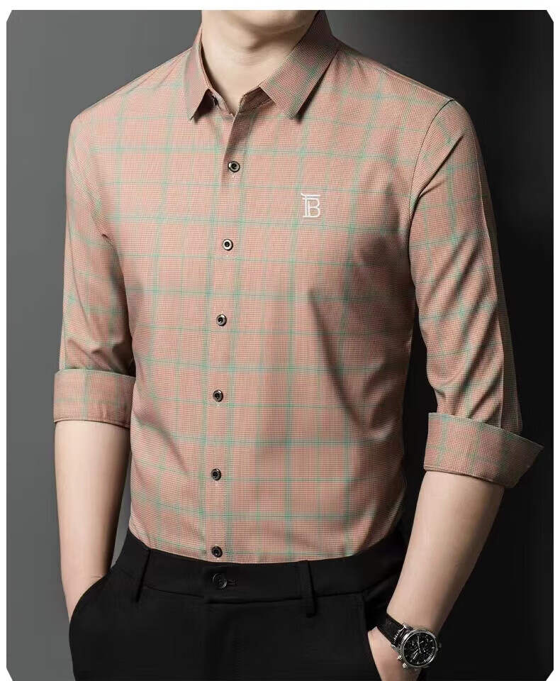 B PRORSUM Burberry men's long-sleeved shirt spring and autumn high-end casual business plaid shirt for men orange red M 165