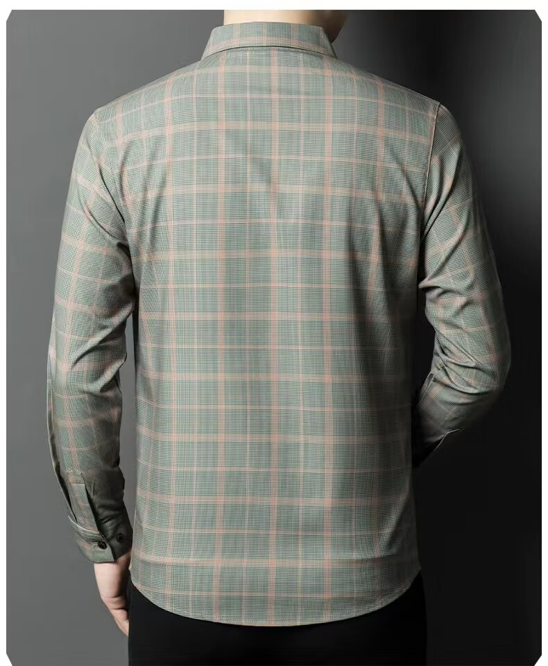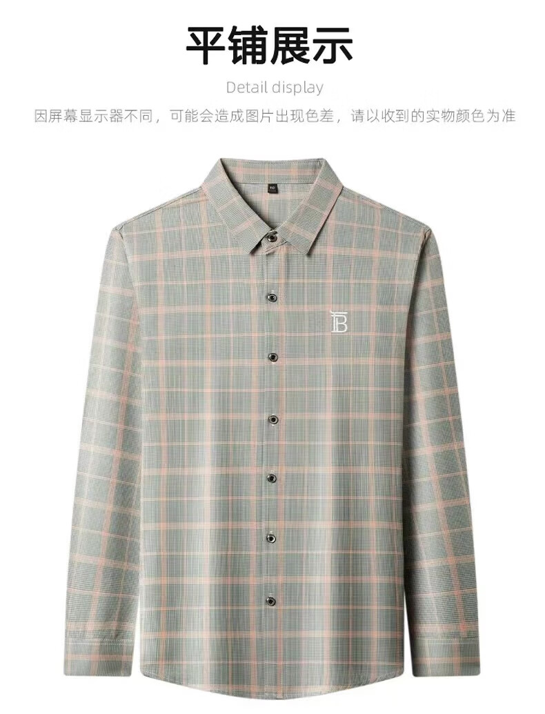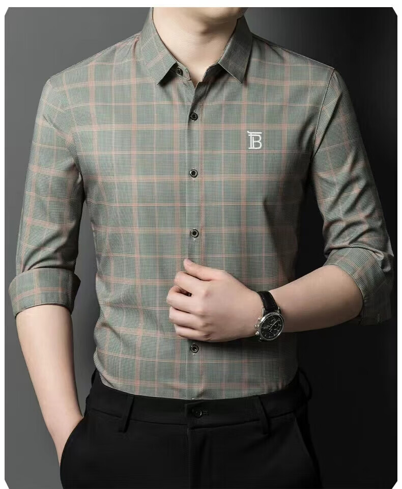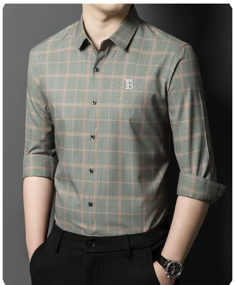 B PRORSUM Burberry men's long-sleeved shirt spring and autumn high-end casual business plaid shirt for men orange red M 165