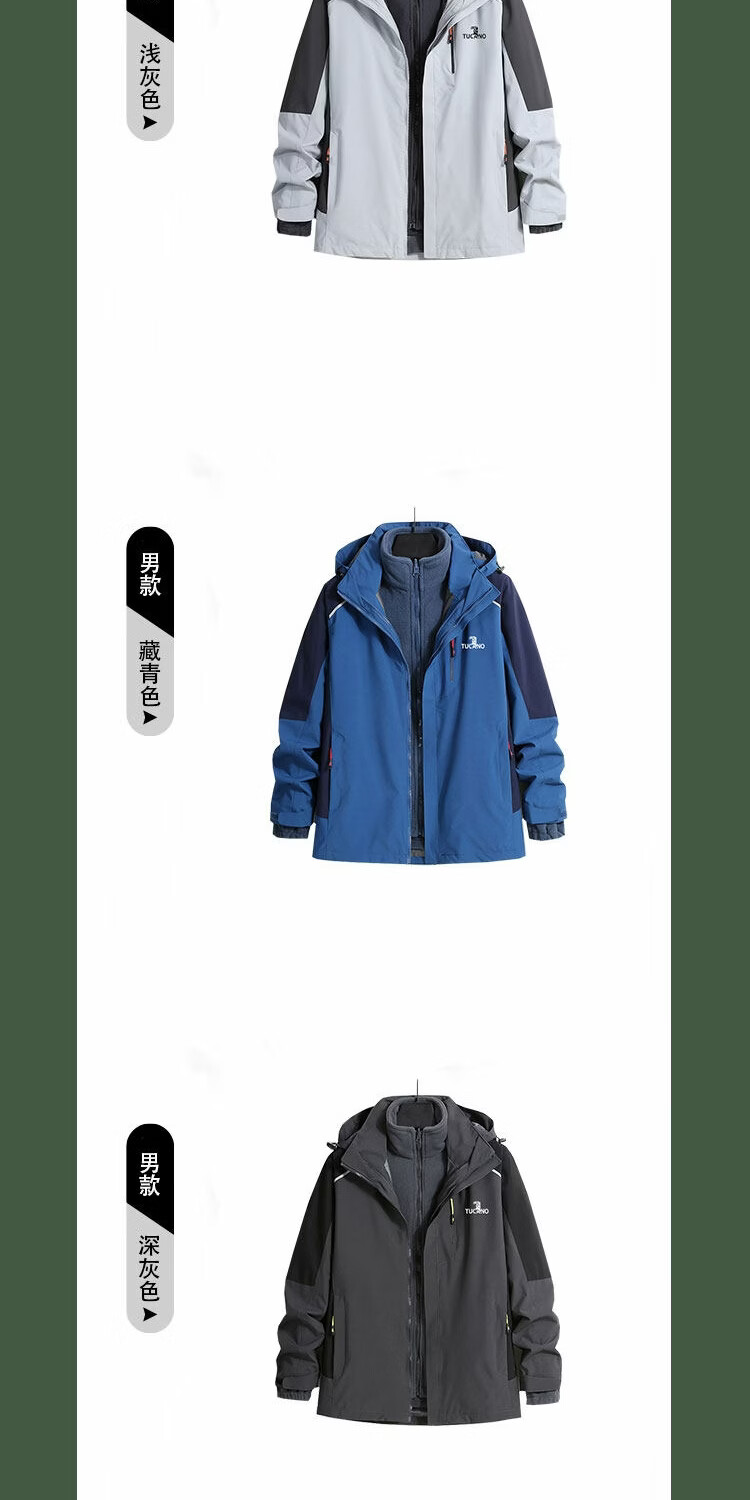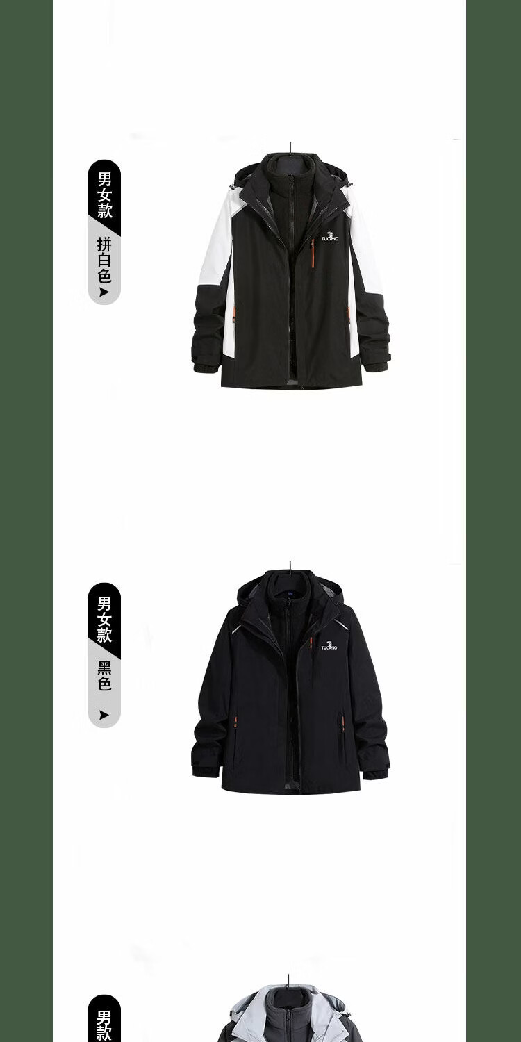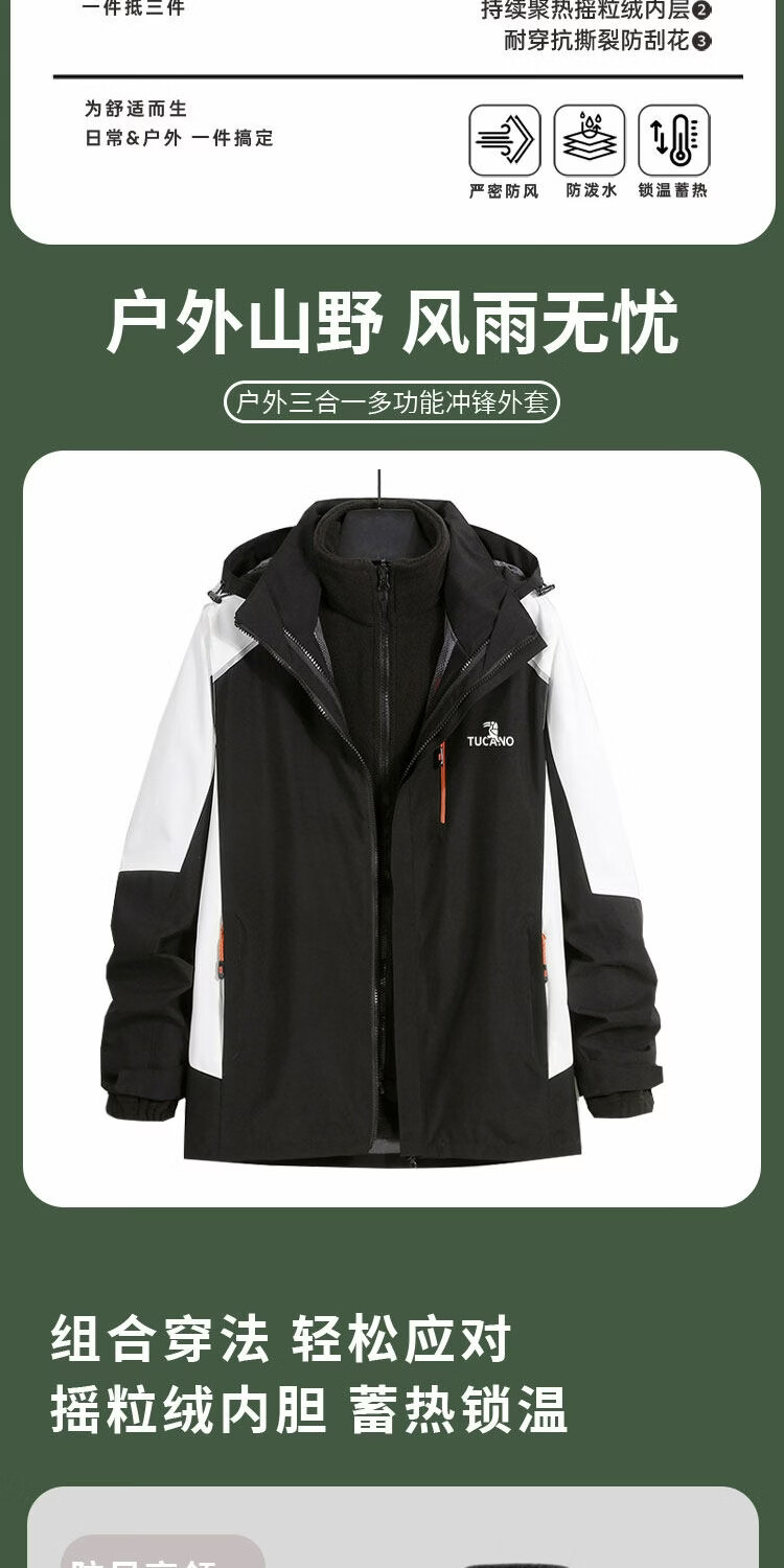 Woodpecker dad outfit middle-aged and elderly charging top outdoor jacket three-in-one detachable windproof and waterproof jacket dark gray men's style - thickened polar fleece liner official authentic S size for women, please see the details page