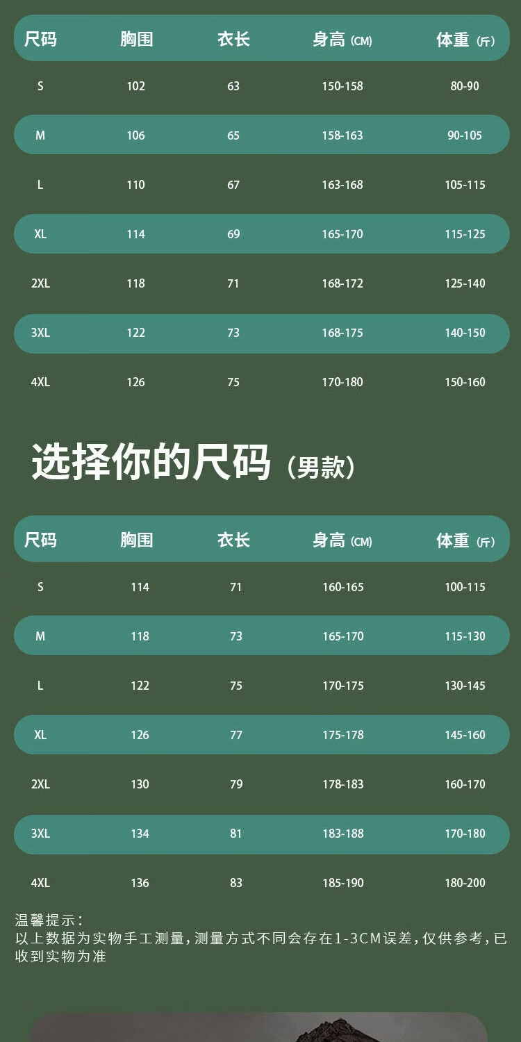 China (cm) 165 / 88-90 170 / 96-98 175 / 108-110 180 / 118-122 185 / 126-130