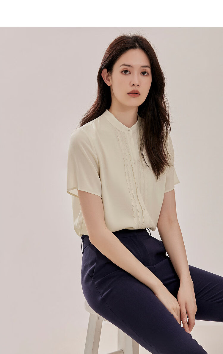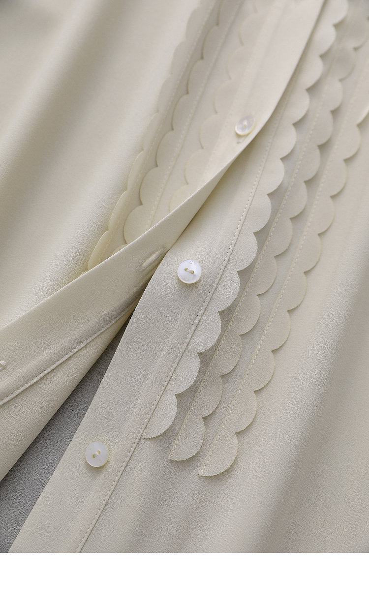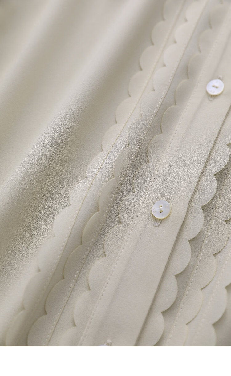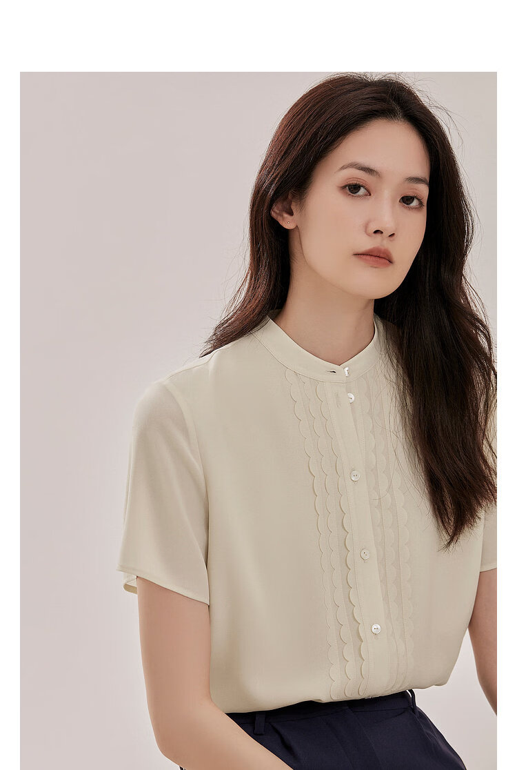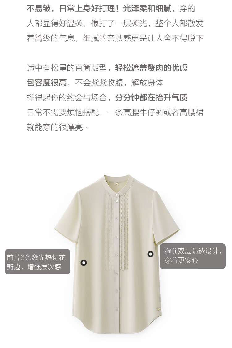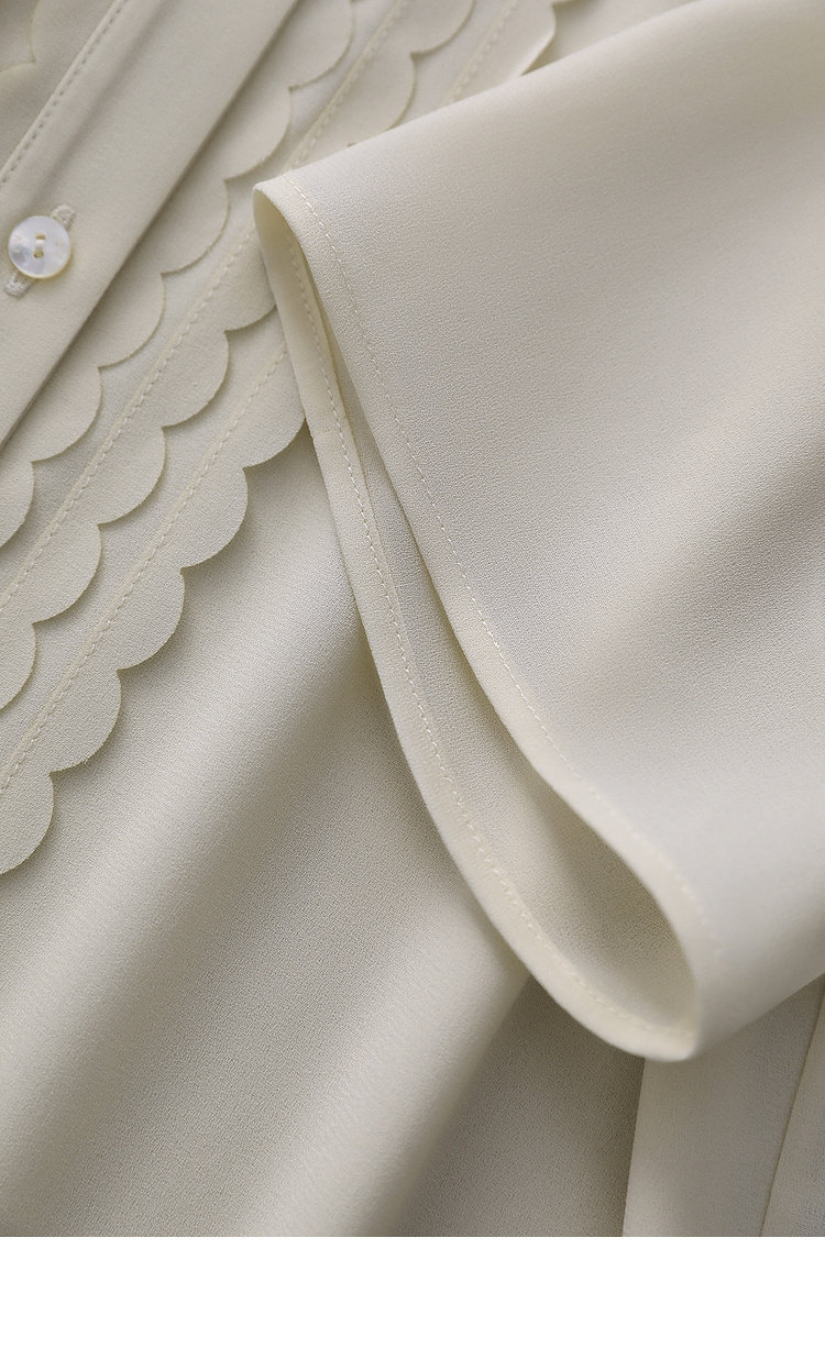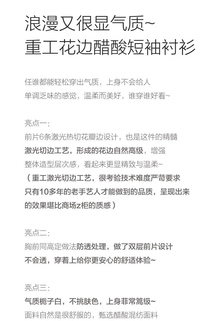 MONZO international first-line brand heavy craftsman lace commuting casual all-match acetate short-sleeved shirt women's summer Gardenia White S