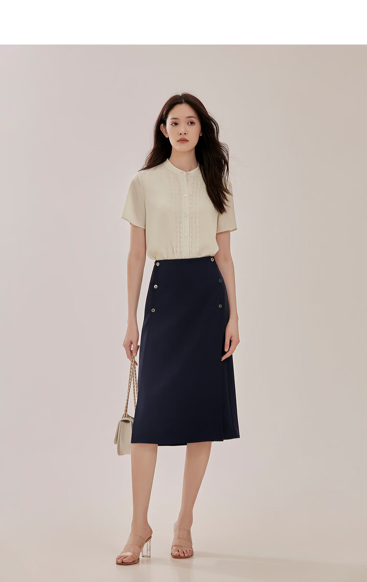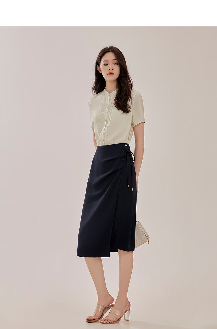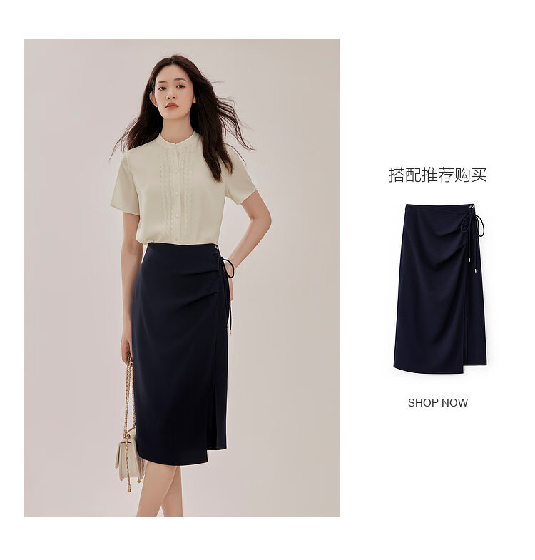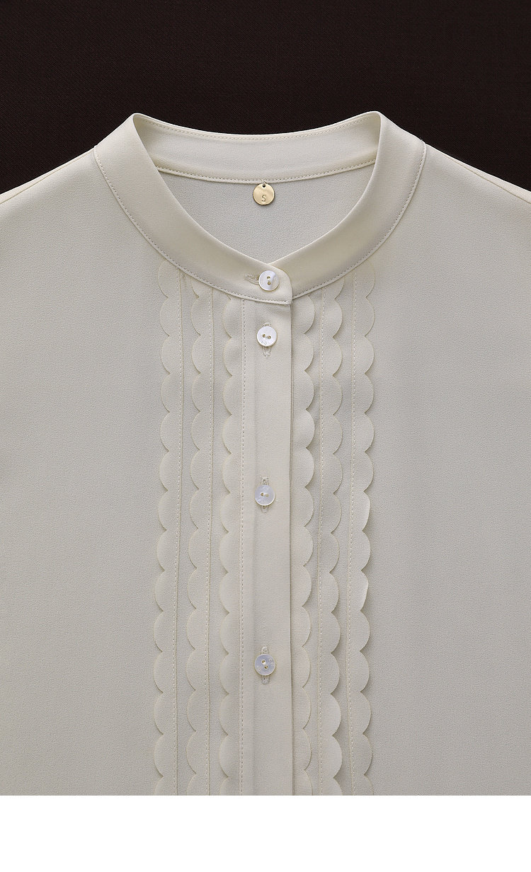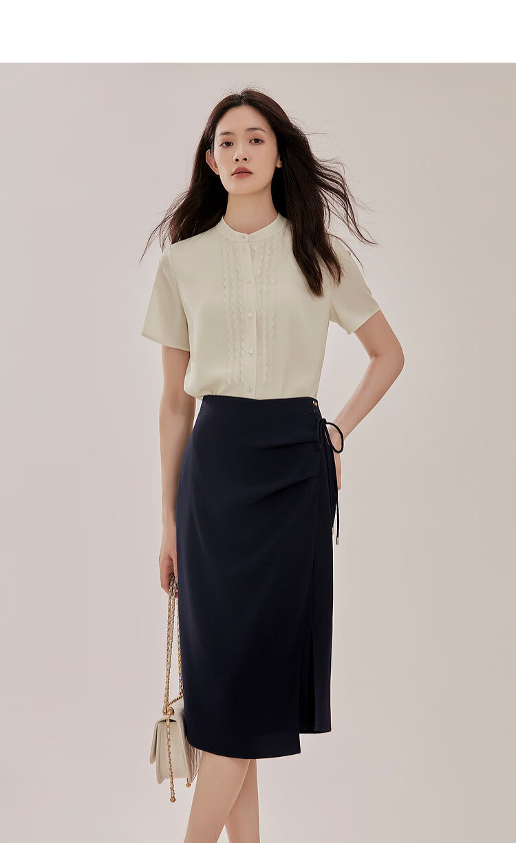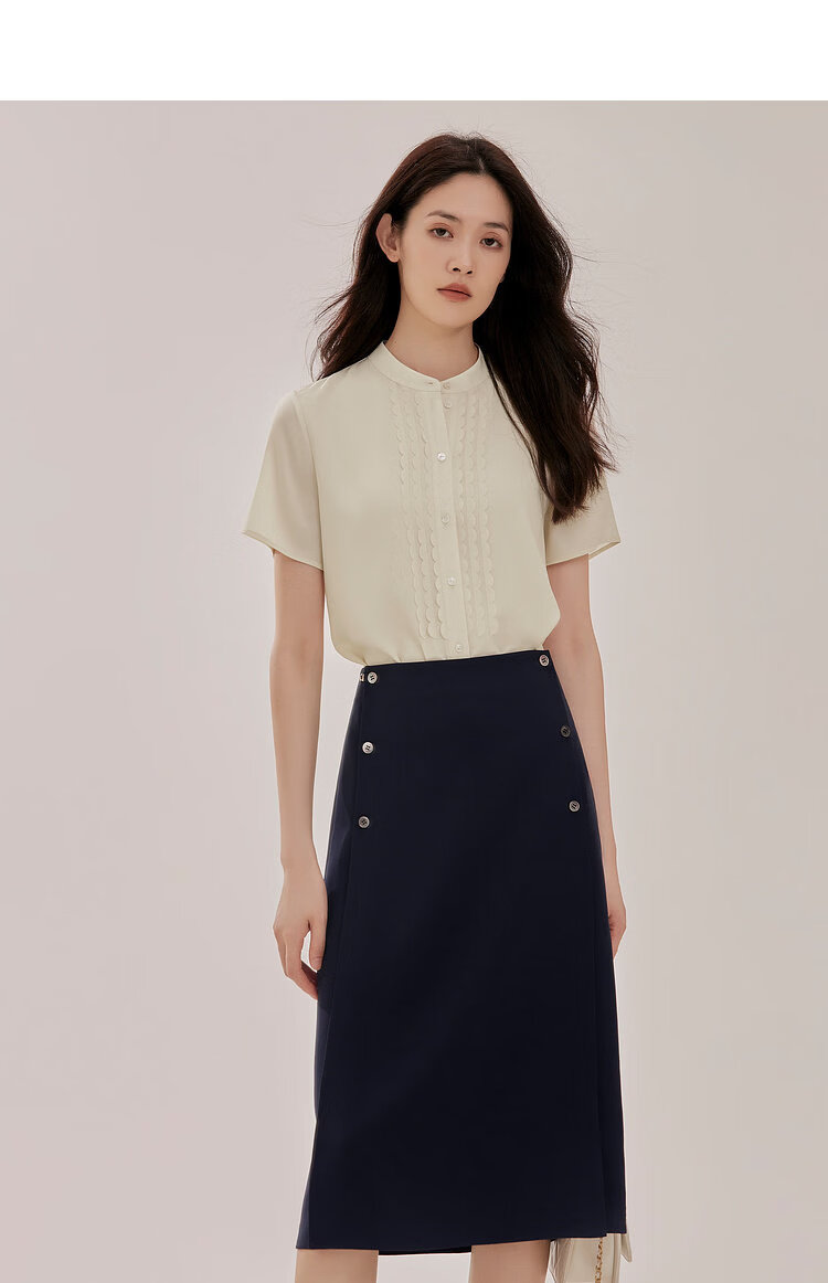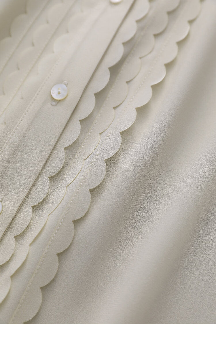 MONZO international first-line brand heavy craftsman lace commuting casual all-match acetate short-sleeved shirt women's summer Gardenia White S