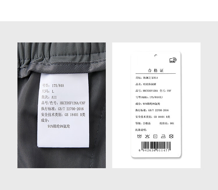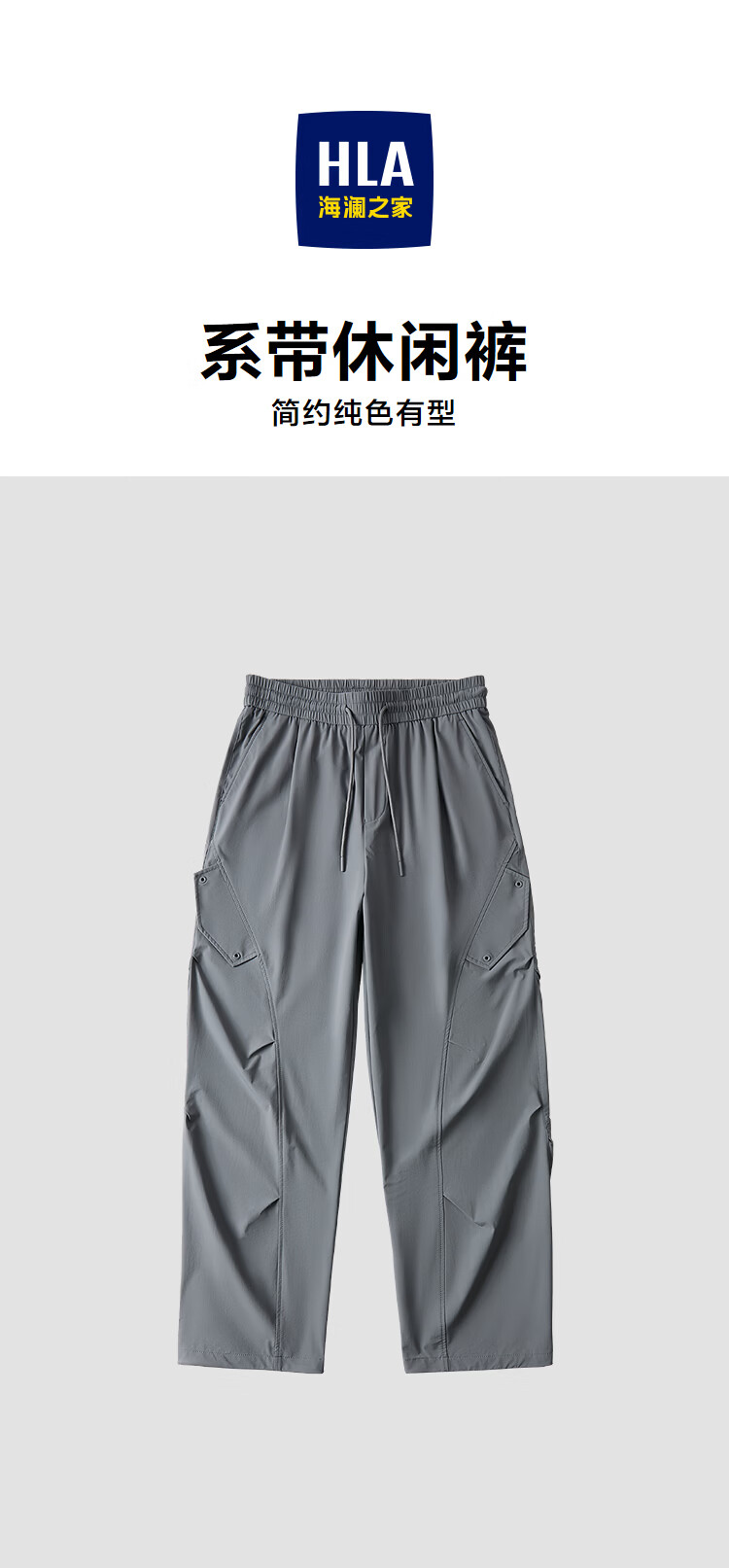 Heilan House (HLA) casual pants for men 26 new four-way stretch solid color drawstring lace pants for men spring and summer HKCED5F126A medium gray C6 S 165/72A recommended 104~116Jin Jin equals 0.5 kg