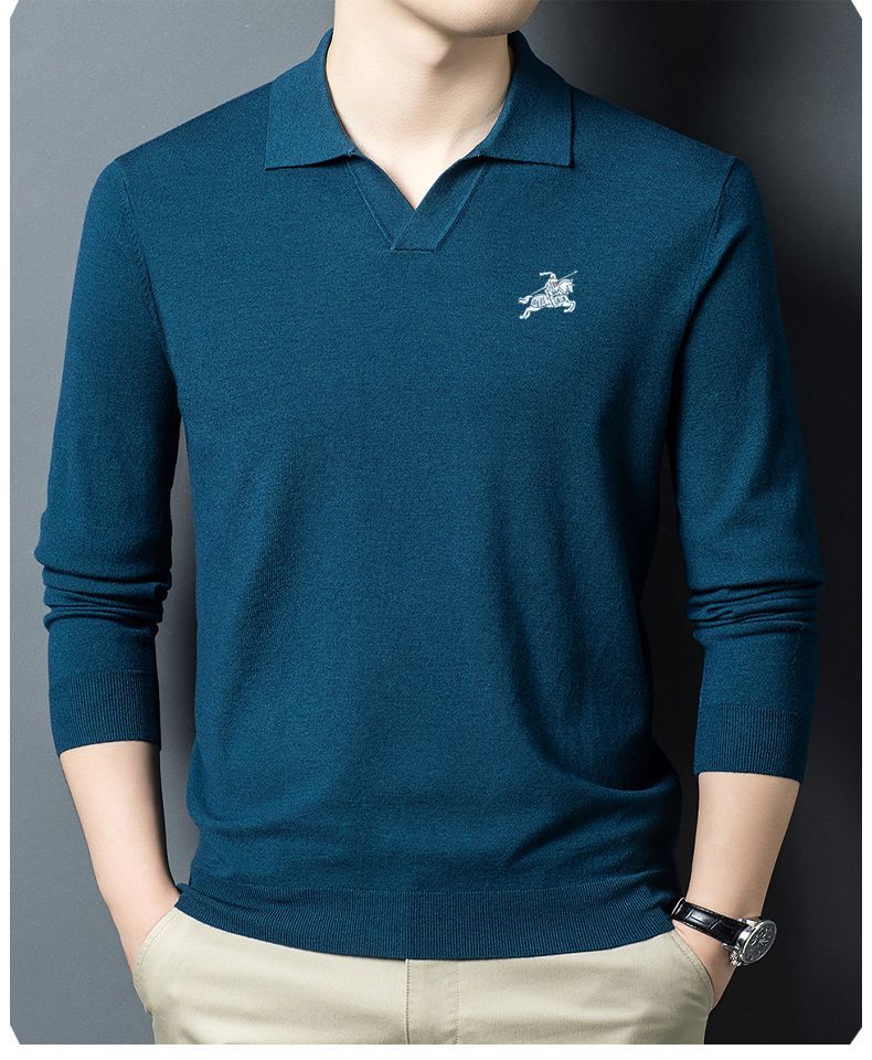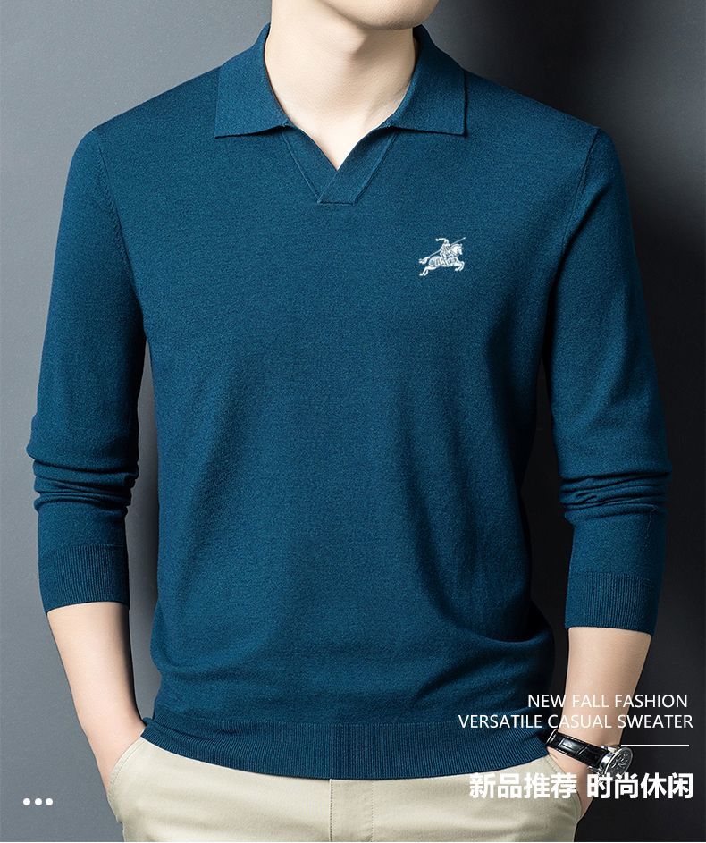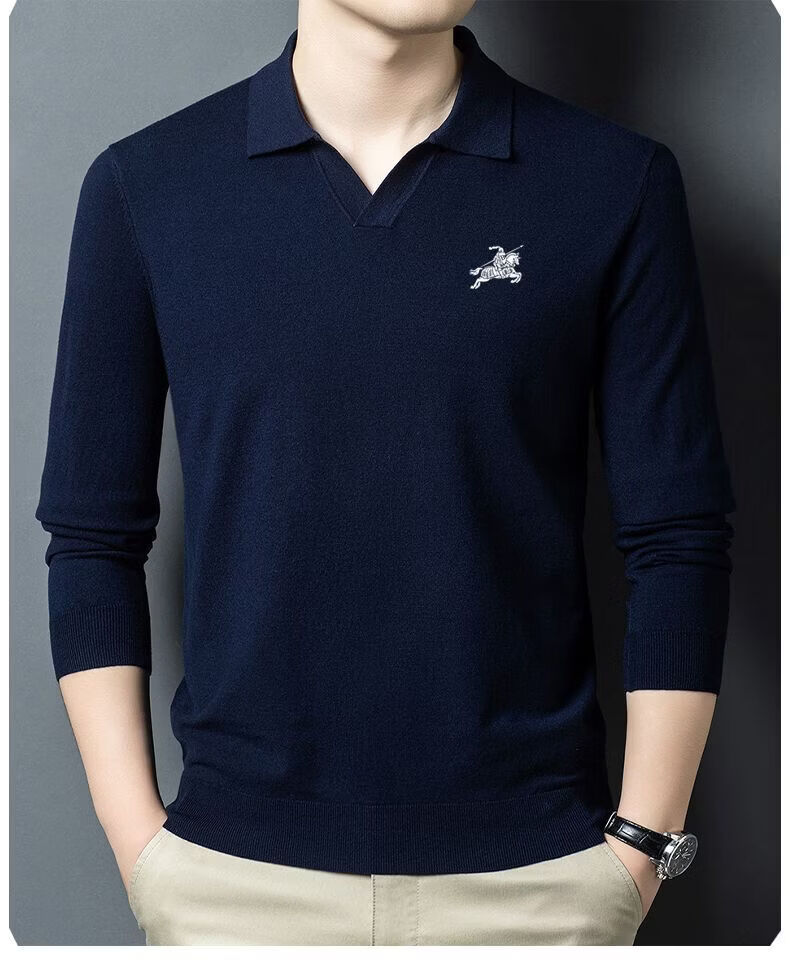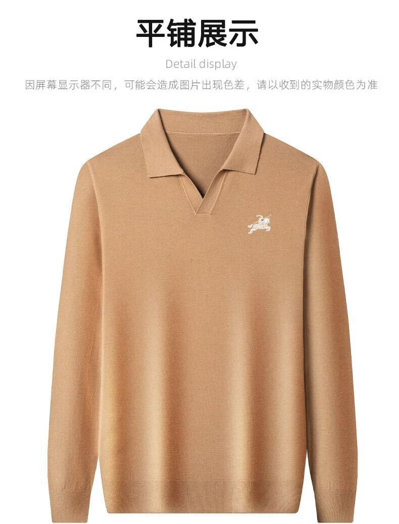 B PRORSUM Burberry Men's Autumn and Winter New Wool Sweater Men's Lapel Casual Warm Basement Pin Pearl White XL 135-155Jin Jin is equal to 0.5 kg
