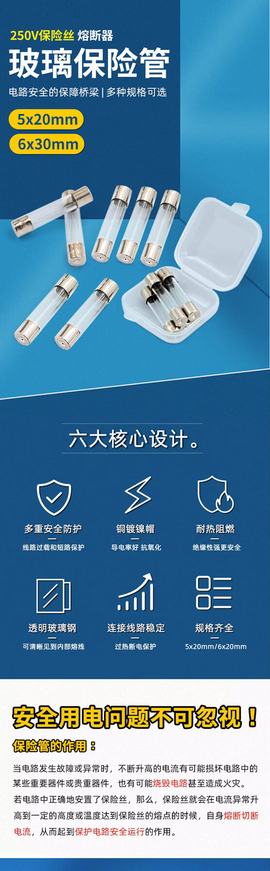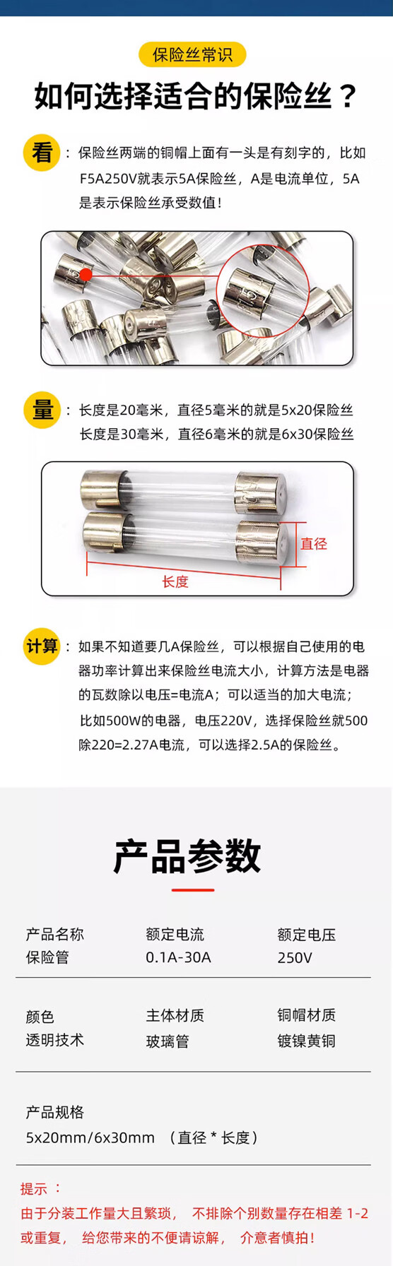 Glass fuse tube 5A10A20A car cigarette lighter 30A charger 2A3A driving recorder fuse tube 3A 6*30mm 20 pcs/