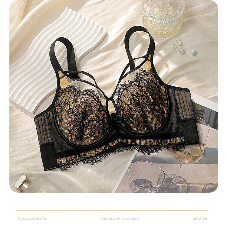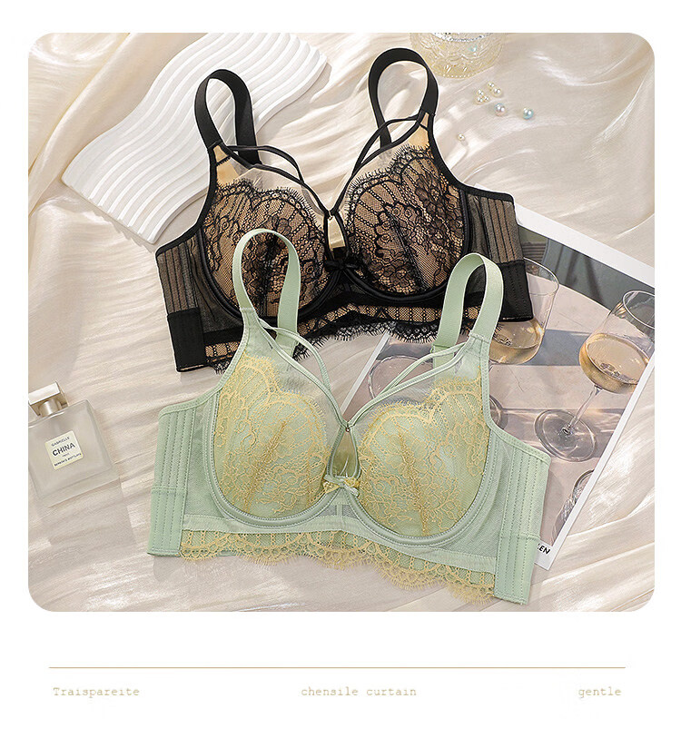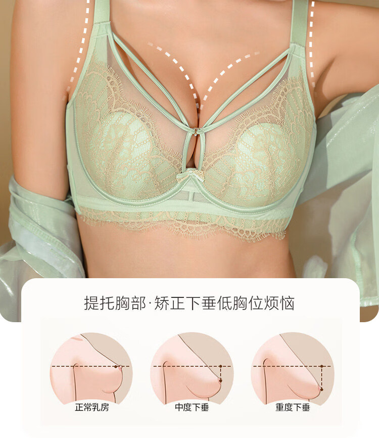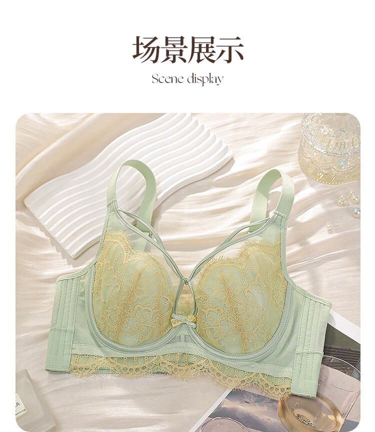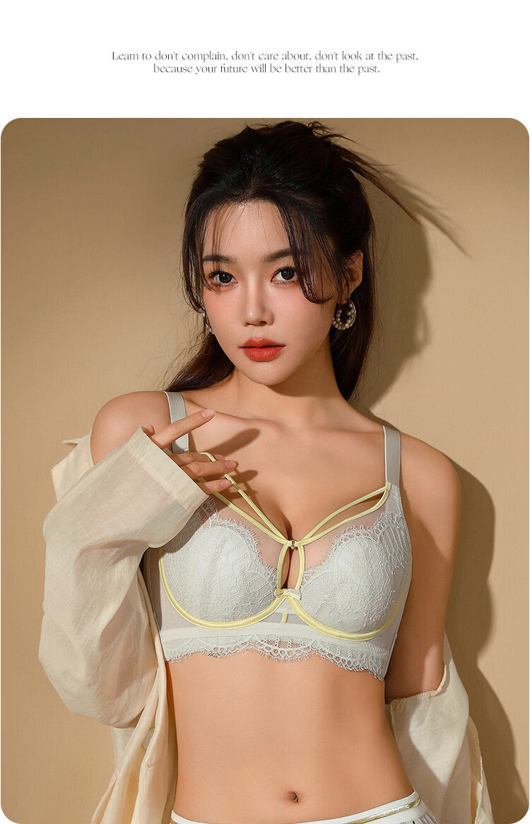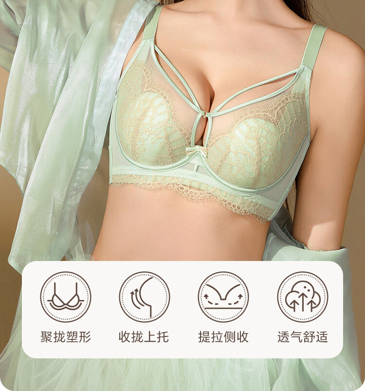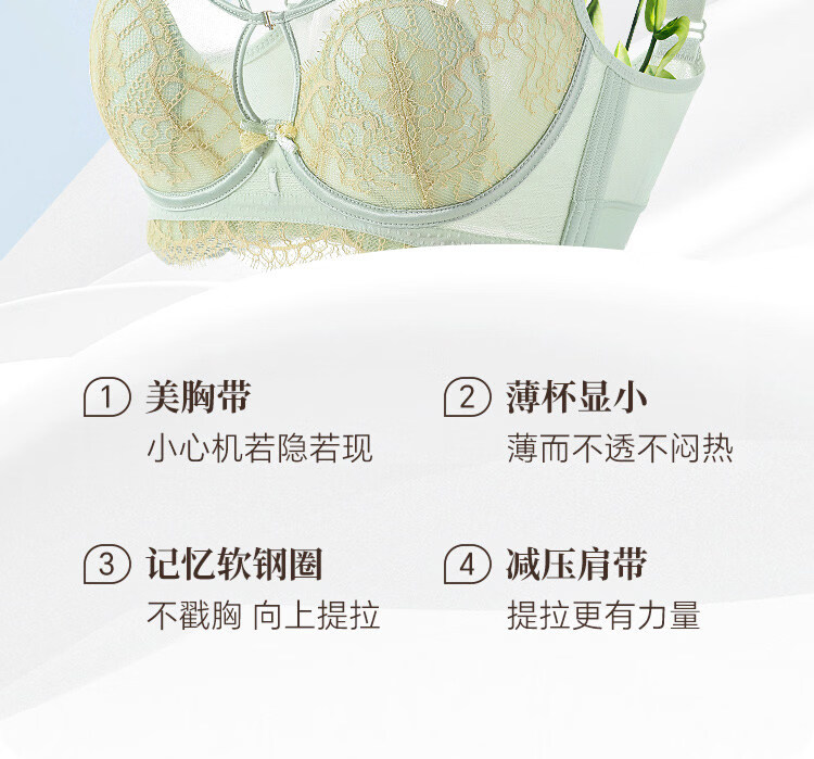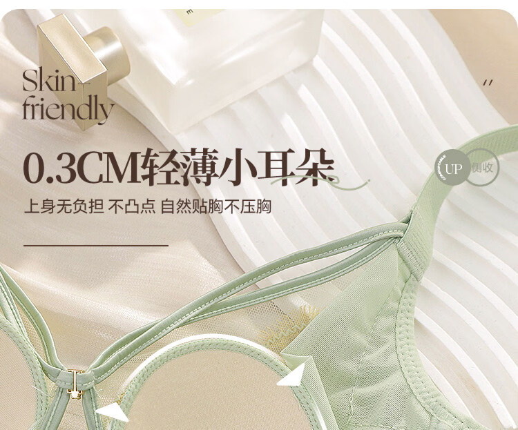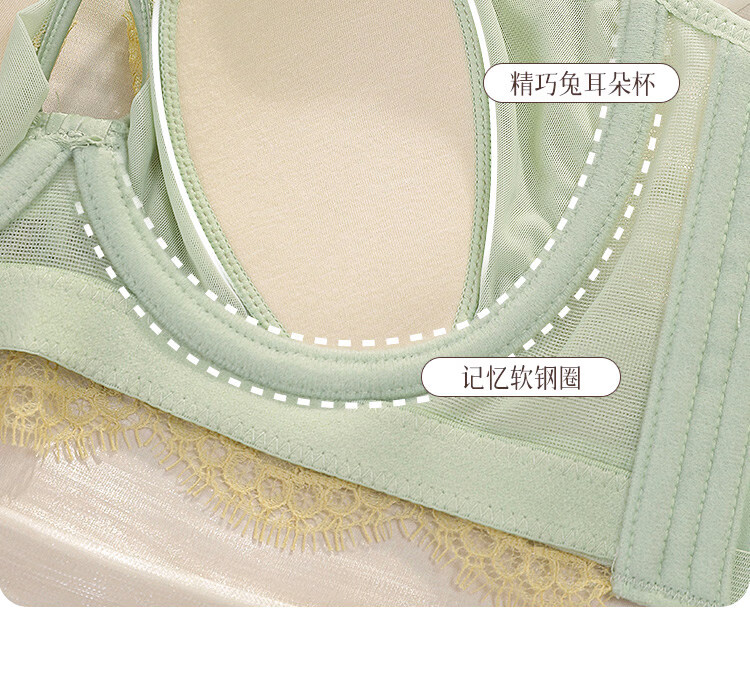 LangSha Rabbit Ear Cup Adjustable Underwear Women's Summer Thin Large Breasts Show Small Push-up Secondary Breasts Anti-Sagging Soft Wire Bra Morning Mist Gray Bra M 75B (0.2c)