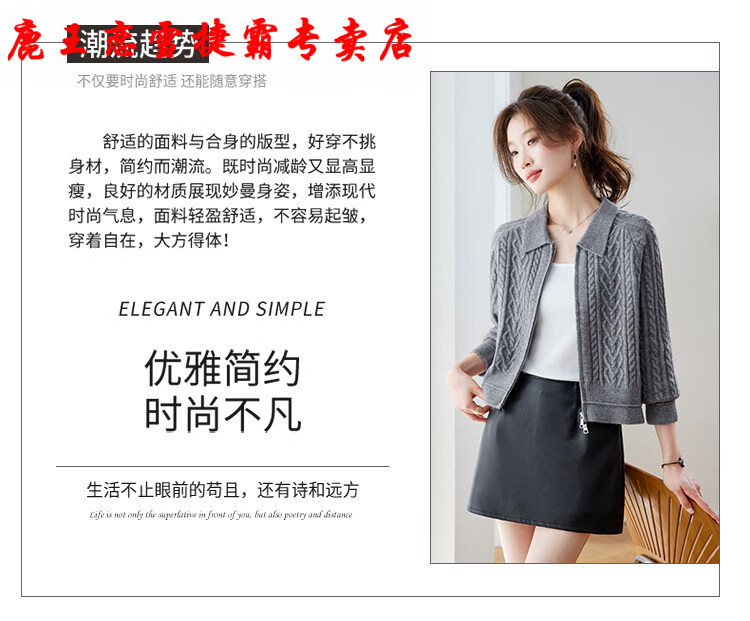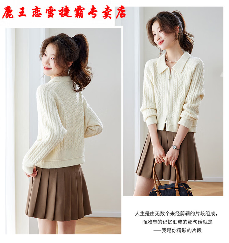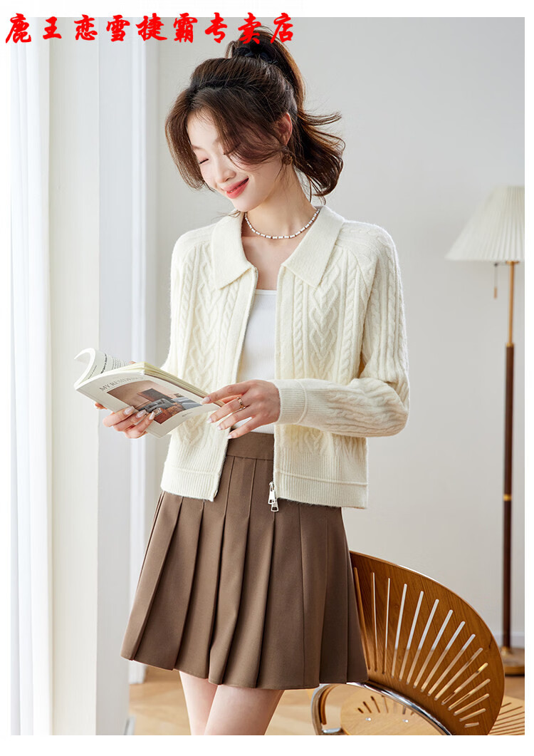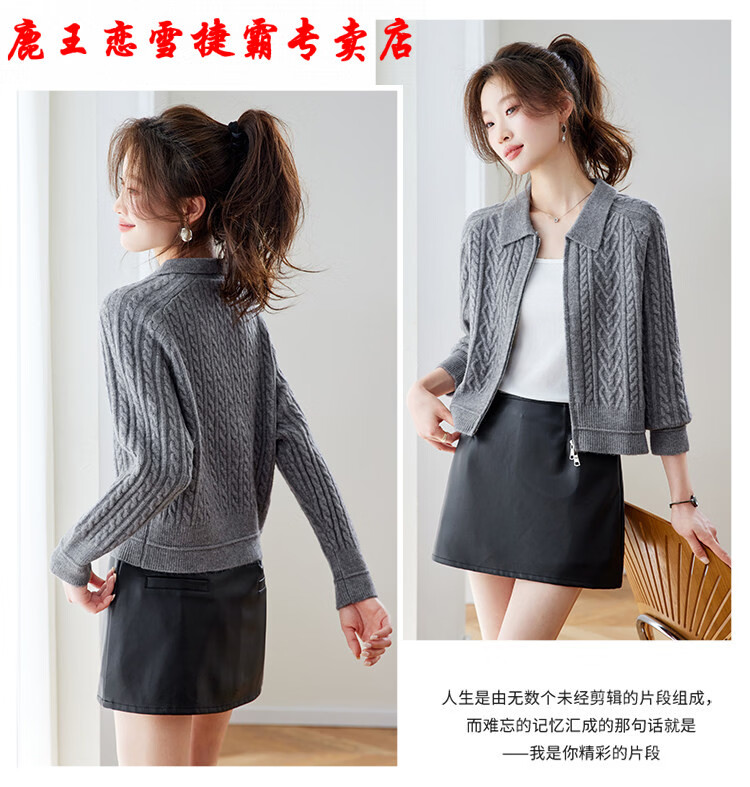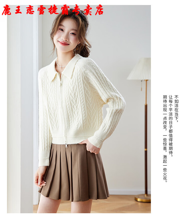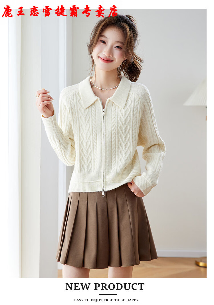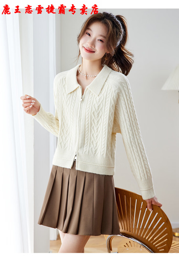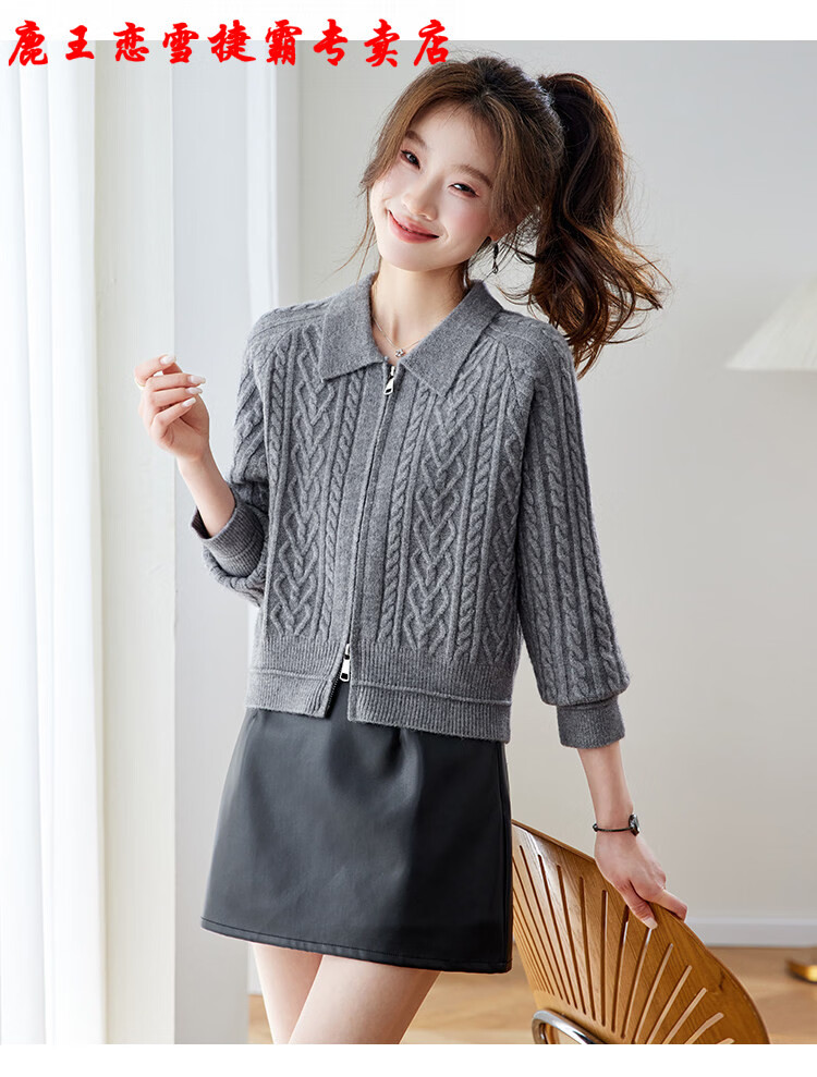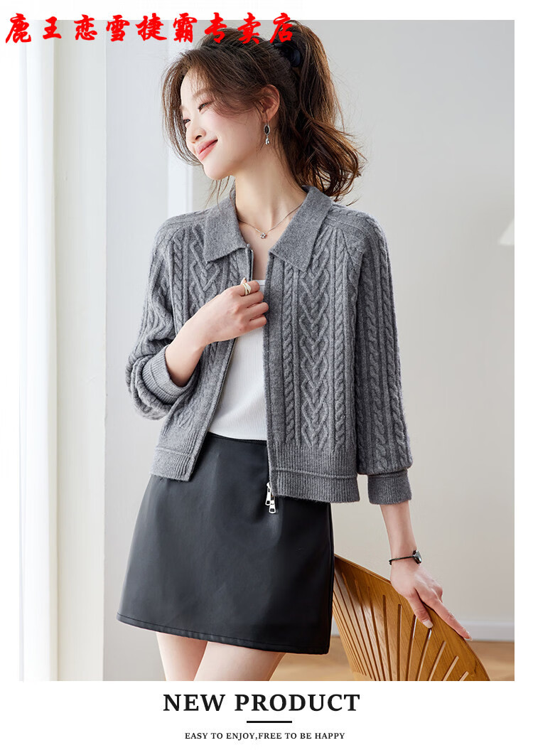 Lu Wang Lian Xue Qing Mature Simple Style Lapel Zipper Cable Knitted Cardigan Women's 2026 Spring New Short Short Sweater Jacket Red M 90-100Jin Jin is equal to 0.5 kg