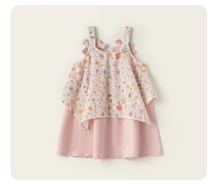 INSBOBO Girls Skirt 2026 Summer New Children's Dress Baby Suspender Skirt Girls Fashionable Summer Dress Flower Pink 80