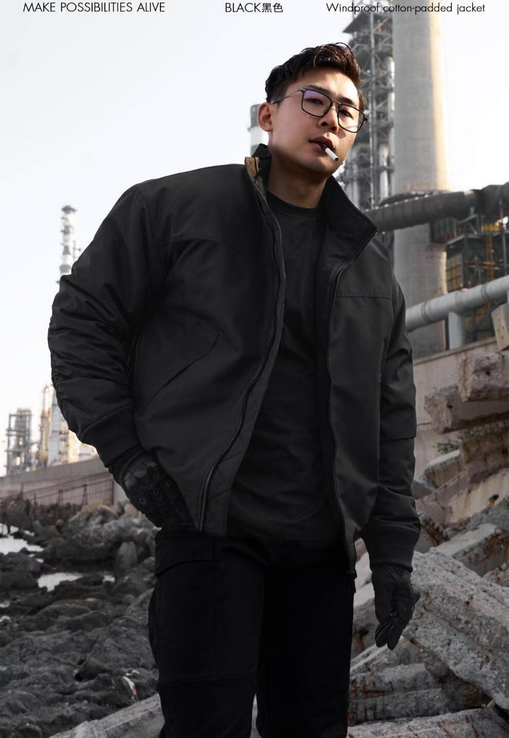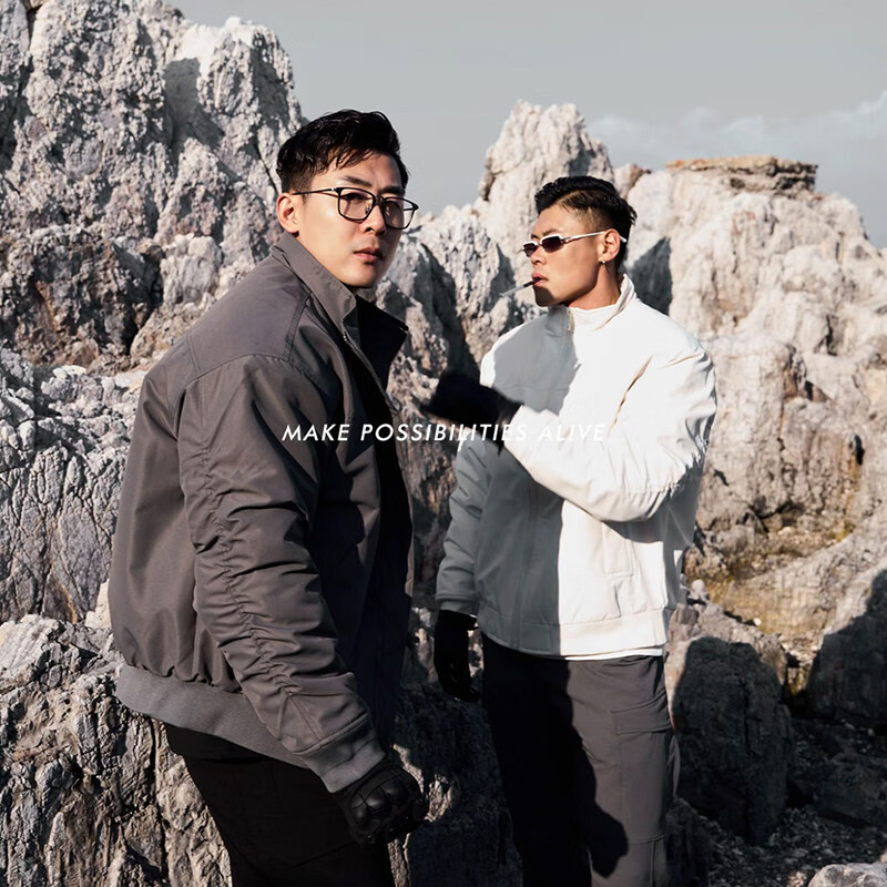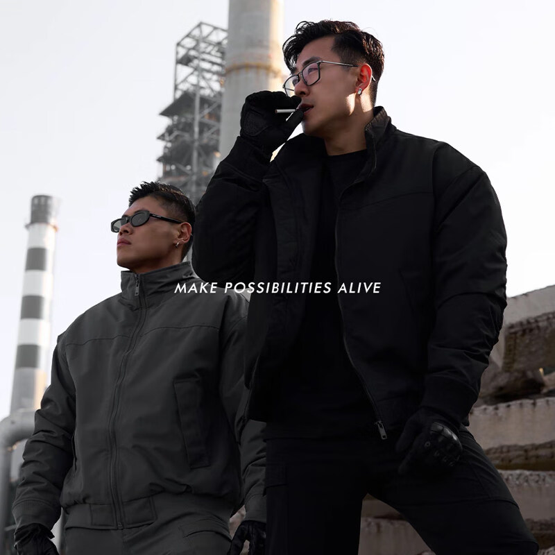 JEEP SPIRIT Black Profile Stand Collar Flight Jacket Men's Spring and Autumn American Outdoor Functional Short Padded Work Jacket Apricot Jacket M