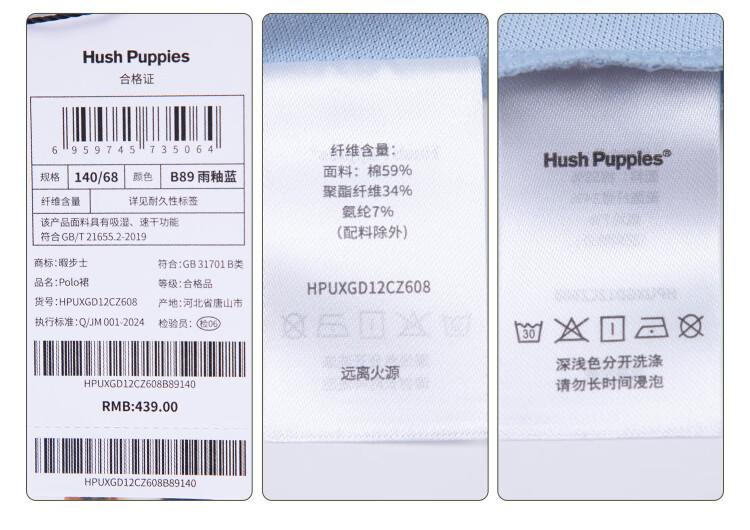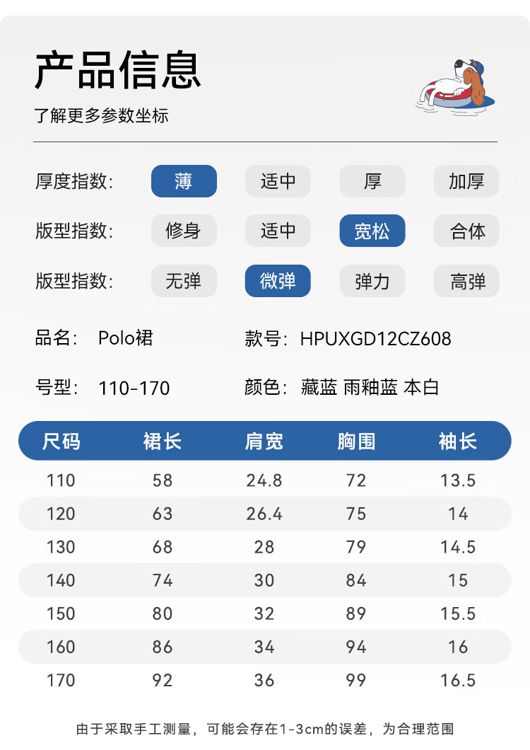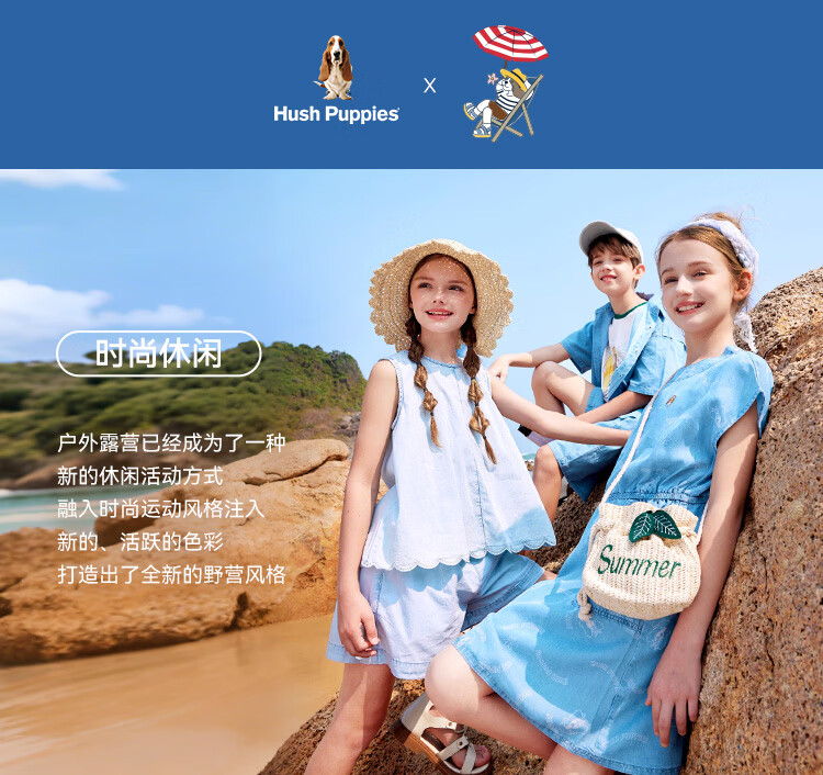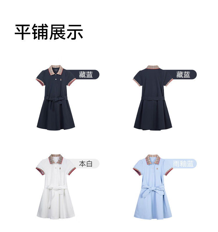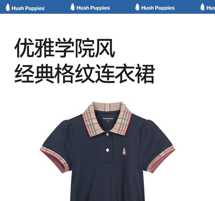 Hush Puppies children's clothing for girls and boys 2026 spring and summer new elegant college style classic style dress rain glaze blue 110 cm