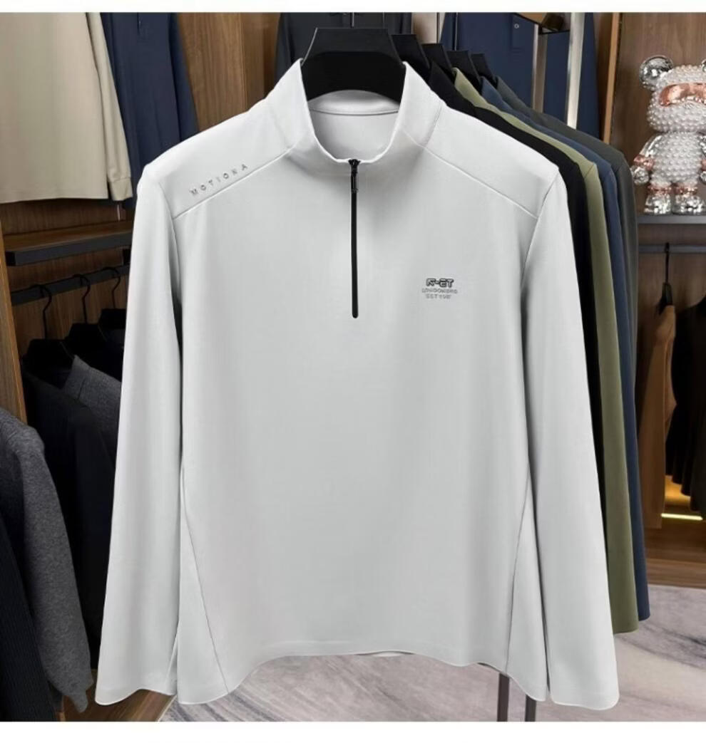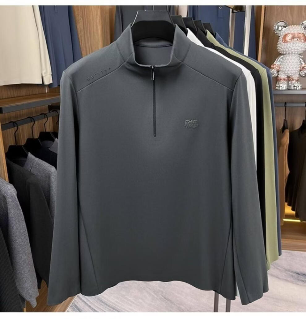 YISHion new half-zip sweatshirt men's stand-up collar jacket solid color 2025 new spring and autumn top sports outdoor cycling clothing dark gray GR-1203 M