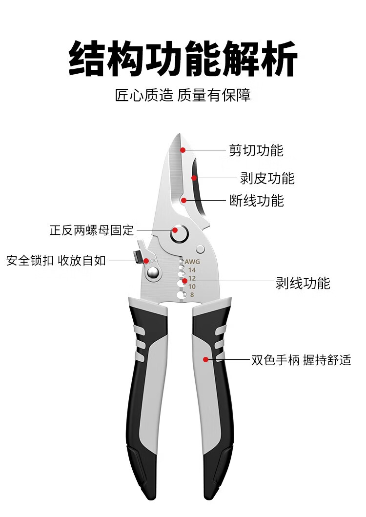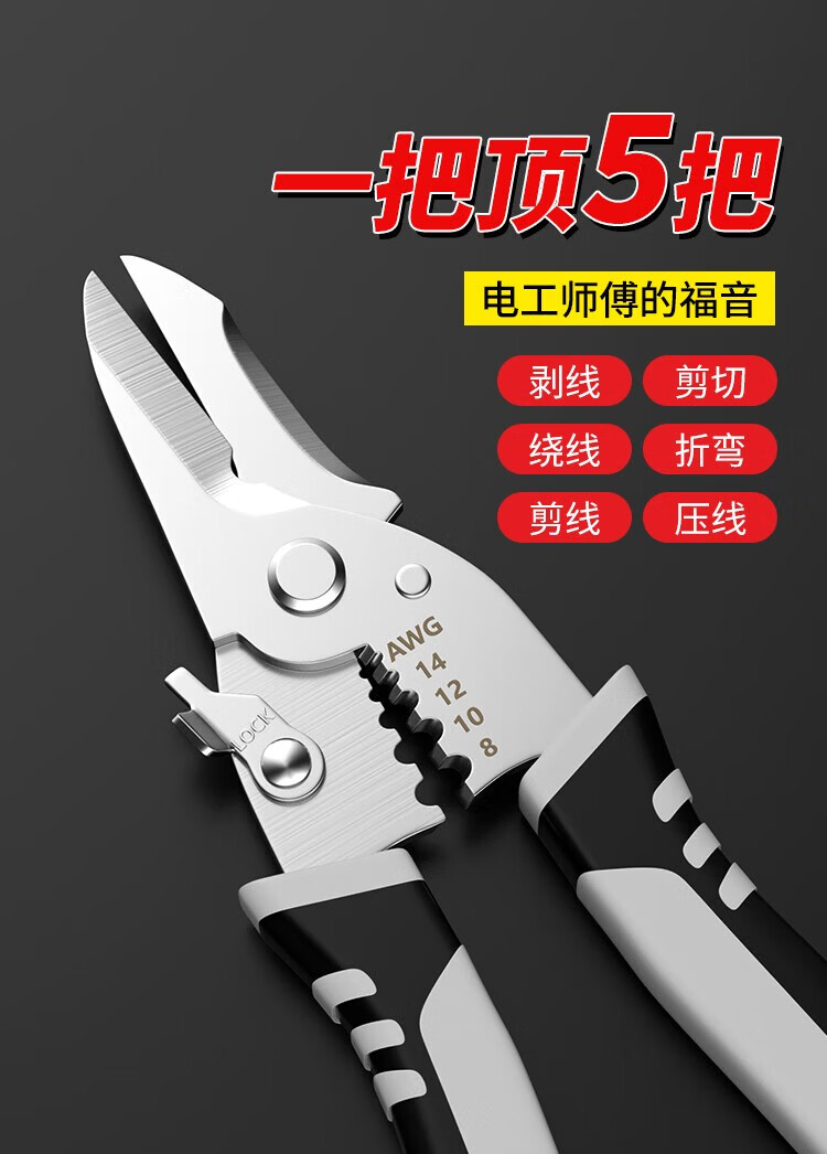 Yonghuan Electrician Wire Stripper Special Wire Cutting and Stripping Pliers Wiring Dial Pliers Wire and Cable Scissors Crimping Pliers Flagship Classic Multi-Function Electrician Scissors 2 Pack