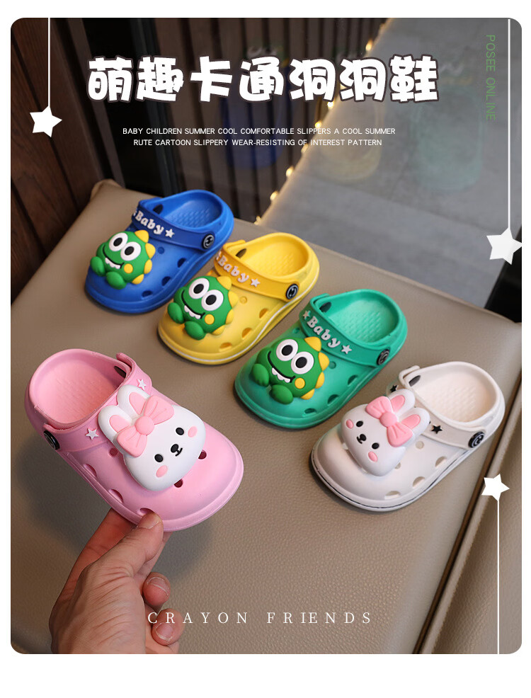 G.duck Little Yellow Duck Summer Cute Cartoon Breathable Anti-slip Children's Croc Shoes Baotou Dual-Purpose Household Men's and Women's Children's Slippers Pink 18-19 Sizes Inner Length 11.5CM